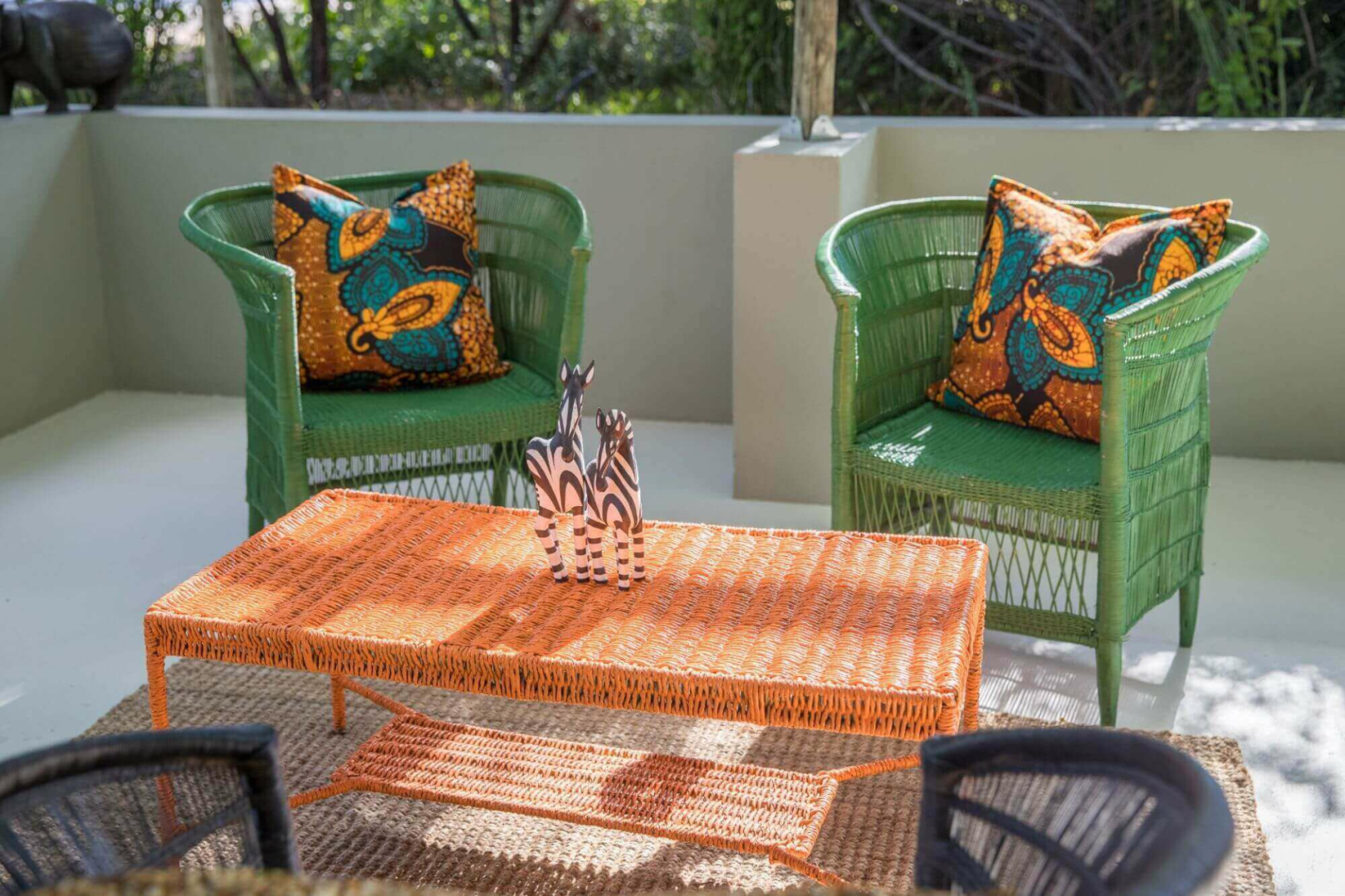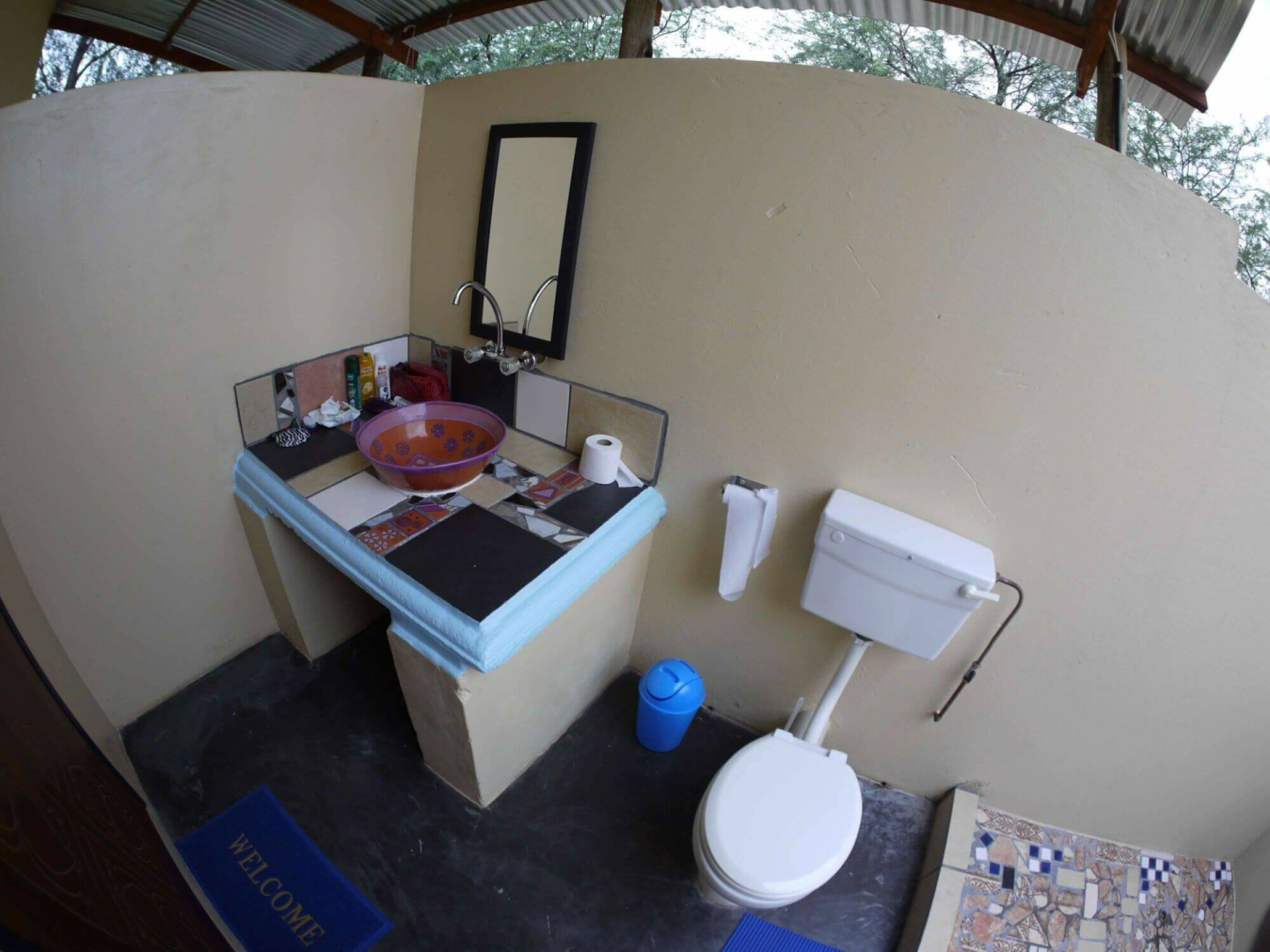 Die Lodge bietet sehr afrikanisch wirkende urige Hütten mit Privatbad.