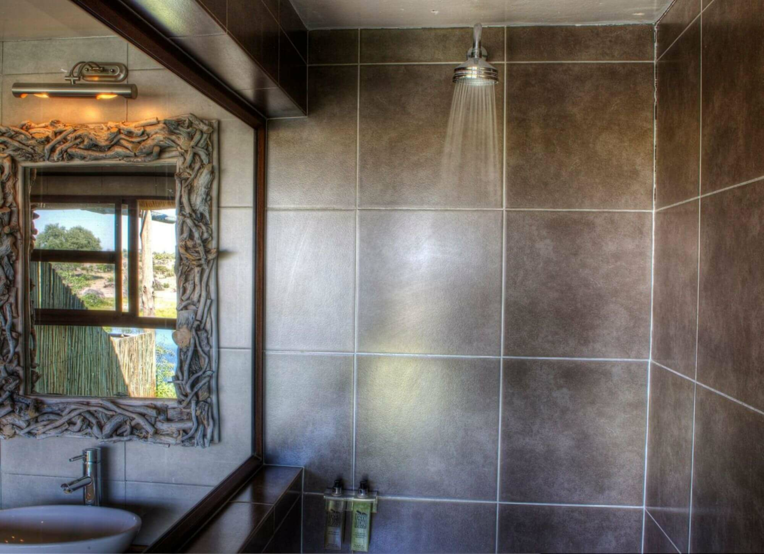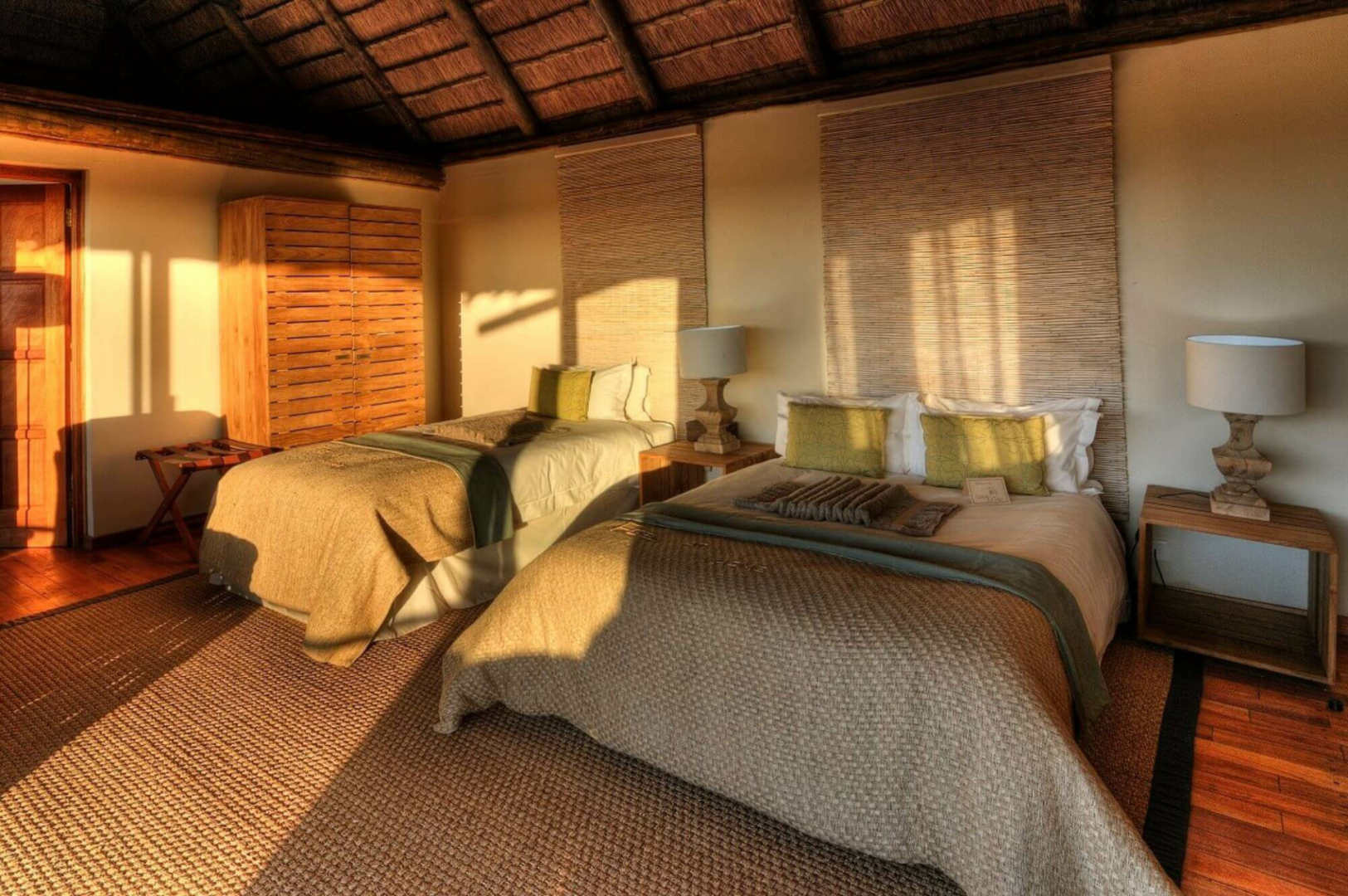 Die Lodge bietet sehr afrikanisch wirkende urige Hütten mit Privatbad.