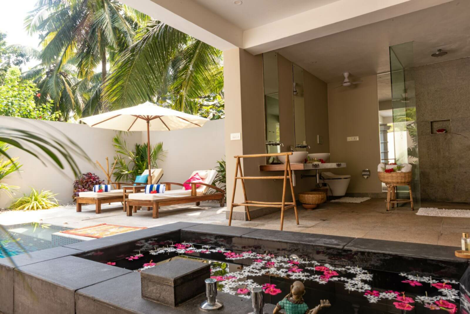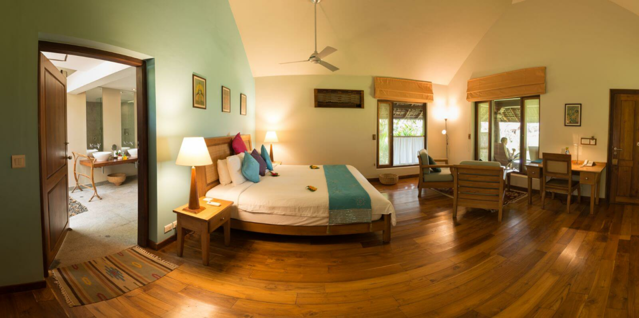 Die Kleinanlage wurde inmitten eines 12 Hektar großen Grundstücks, gesäumt von Kokosnusspalmen, Bananenbäumen und duftendem Hibiskus. Der Besucher findet einen langen menschenleeren Sandstrand, der zum Spazieren einlädt (das Badevergnügen im Meer ist eingeschränkt), einen großen Pool mit großartigem Meeresausblick, sowie stilvoll dekorierte Suiten. Die im Stil traditioneller Fischerhütten gebauten Cottages sind von Handwerker-Meister mit Holzschnitzereien prunkvoll verziert. Ein fürsorglicher Service sowie eine kostenlose tägliche Yoga-Stunde und optionale Ayurveda-Massagen runden das Angebot ab. Zusammenfassend eine Adresse für alle, die Stille suchen und dennoch nicht auf Komfort verzichten möchten.