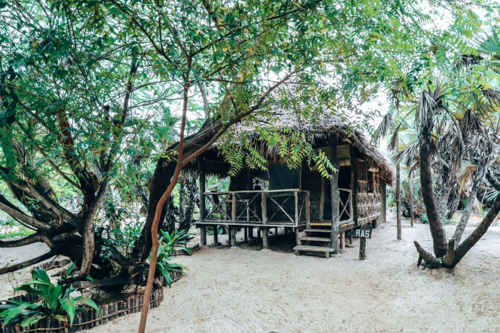 Die Gäste werden in sieben rustikalen, aber sehr charmanten Cottages mit wunderbarem Blick aufs Meer untergebracht. Vornehmlich die großen zur Seite offenen Badezimmer mit der originellen Dusche sind wunderschön.