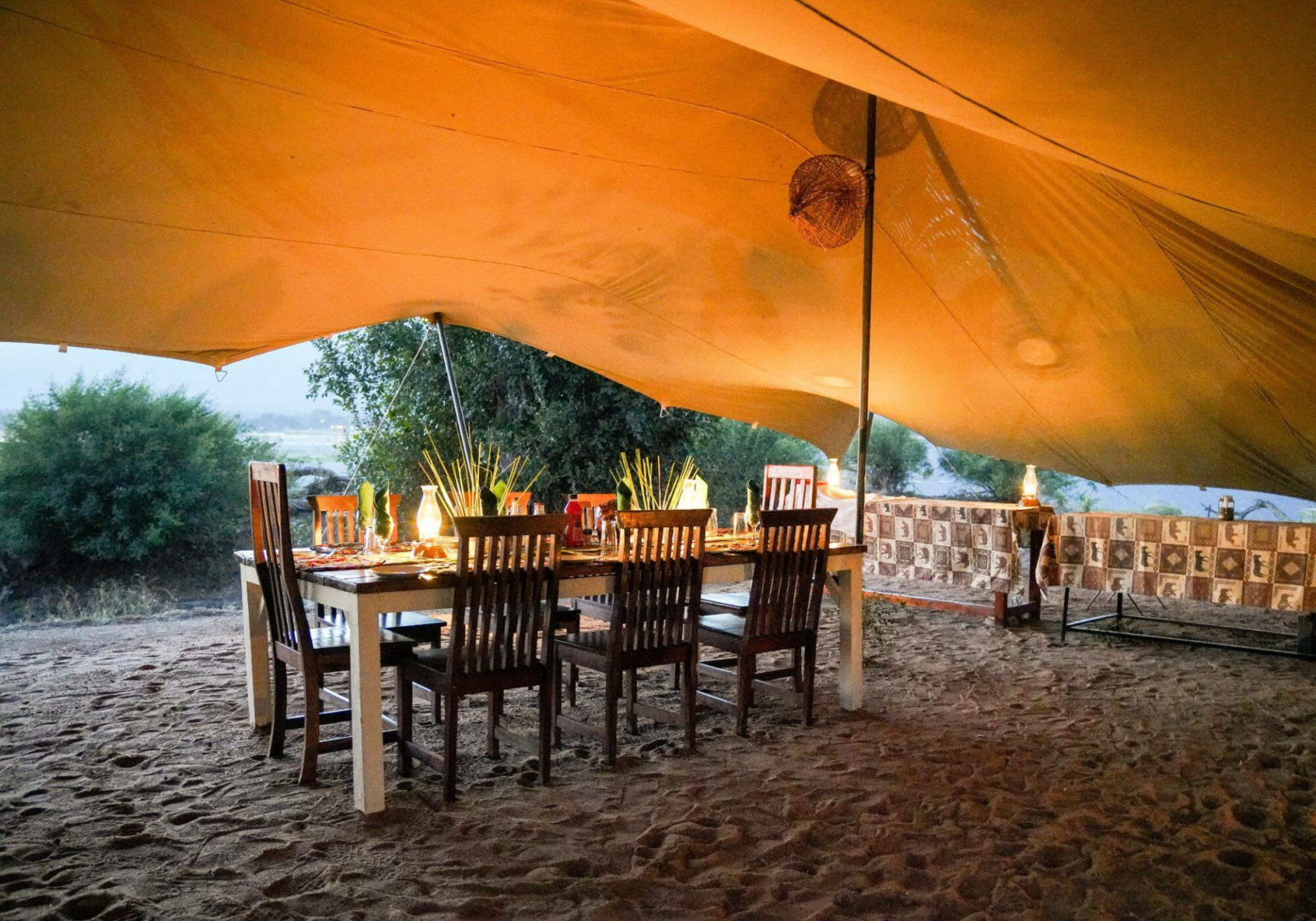 Herzstück des Camps ist eine einfache Zeltplane, die den Lounge- und Essbereich unterbringt, auch wenn beim schönen Wetter die Mahlzeiten unter dem unvergesslichen afrikanischen Nachthimmel eingenommen werden.