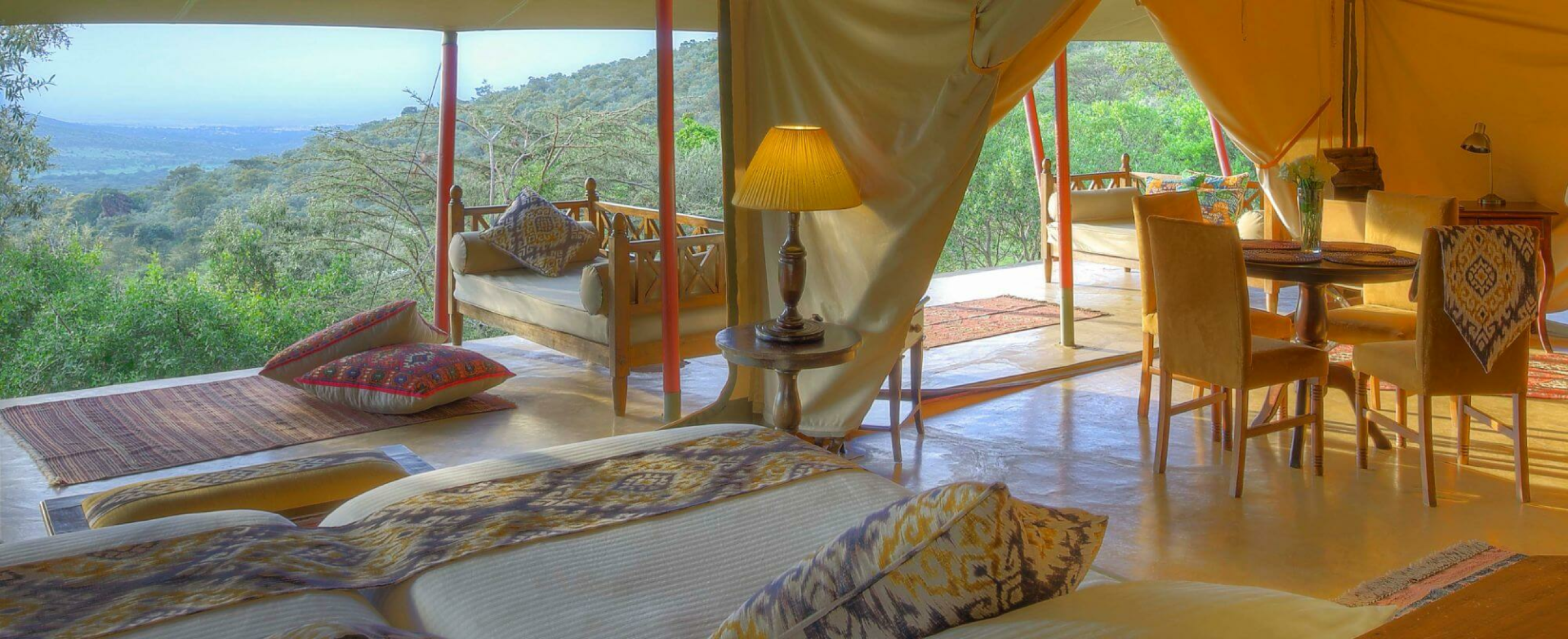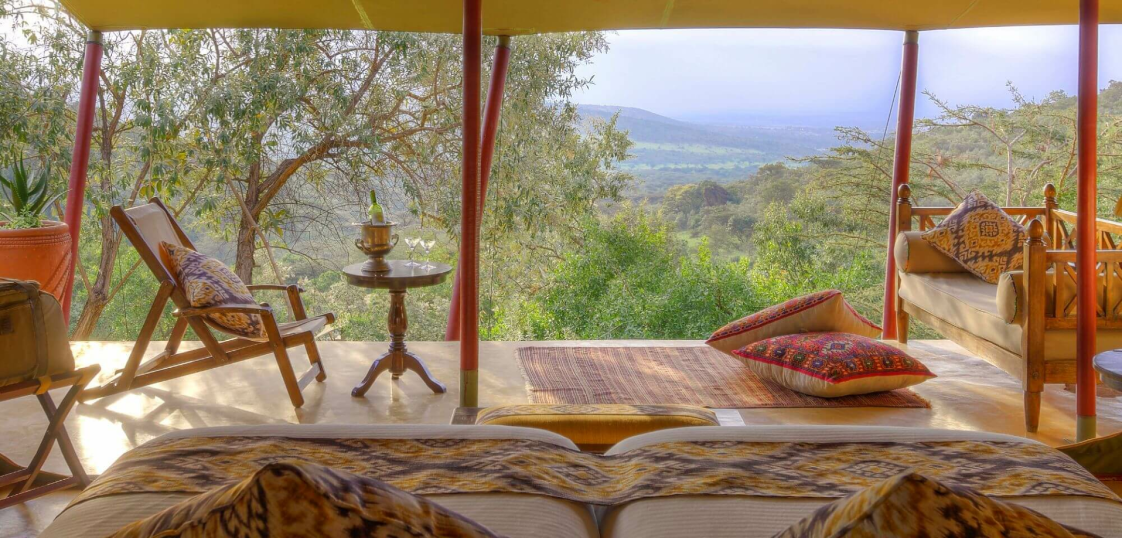 Das Camp bietet atemberaubende Ausblicke über die Mara-Ebenen.