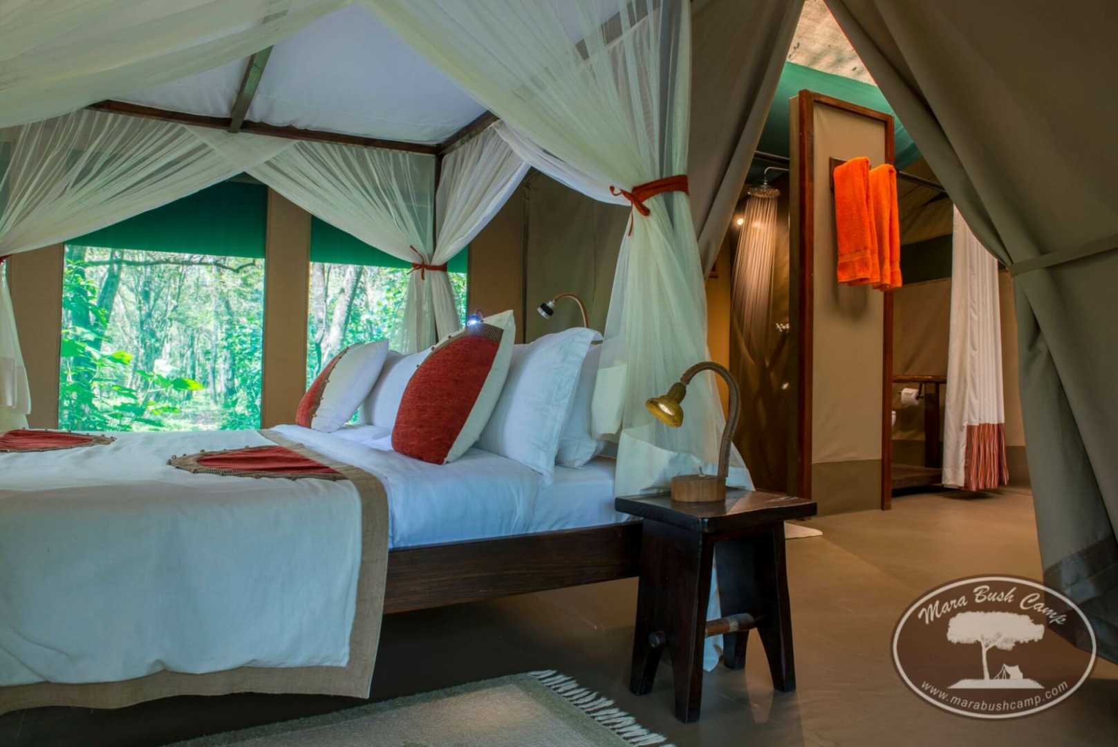 Das kleine aus acht Zelten bestehende Mara Bush Camp am Olare Orok-Fluss im Osten des wichtigsten Mara Confluence Sektors in der Massai Mara ist ein relativ einfaches Camp inmitten eines Galeriewaldes im unverfälschten Safaristil und ein Ort, den wir sehr mögen.