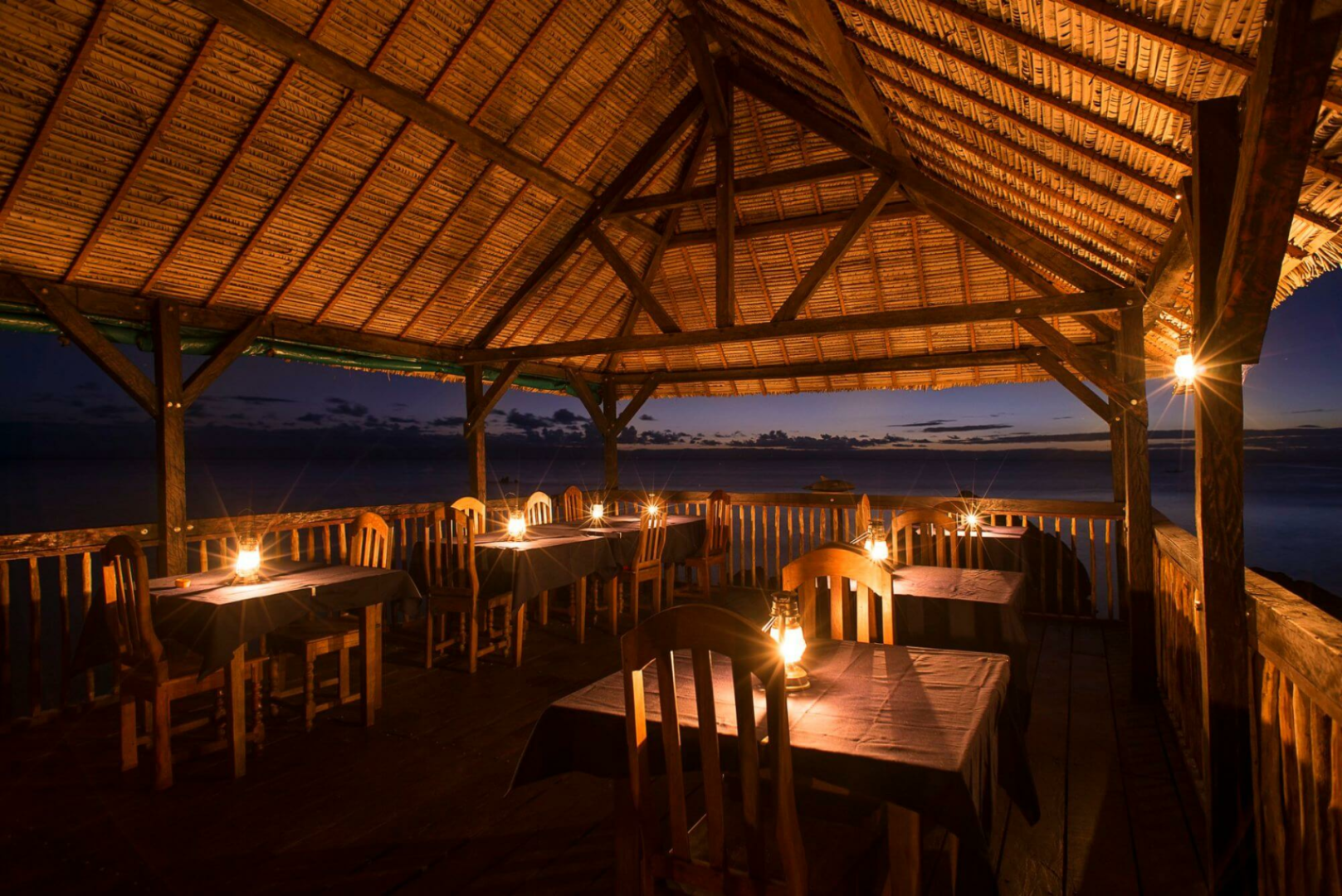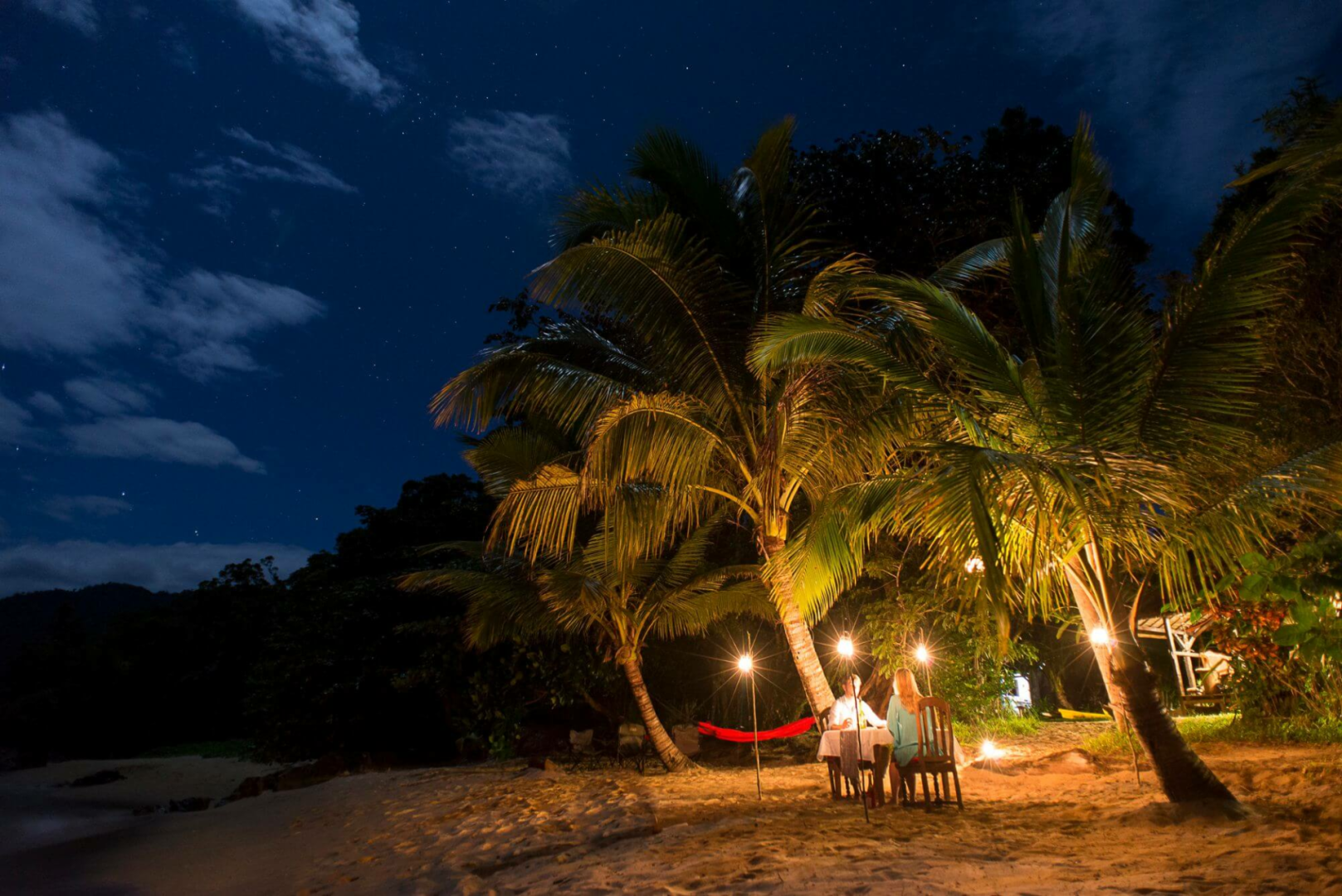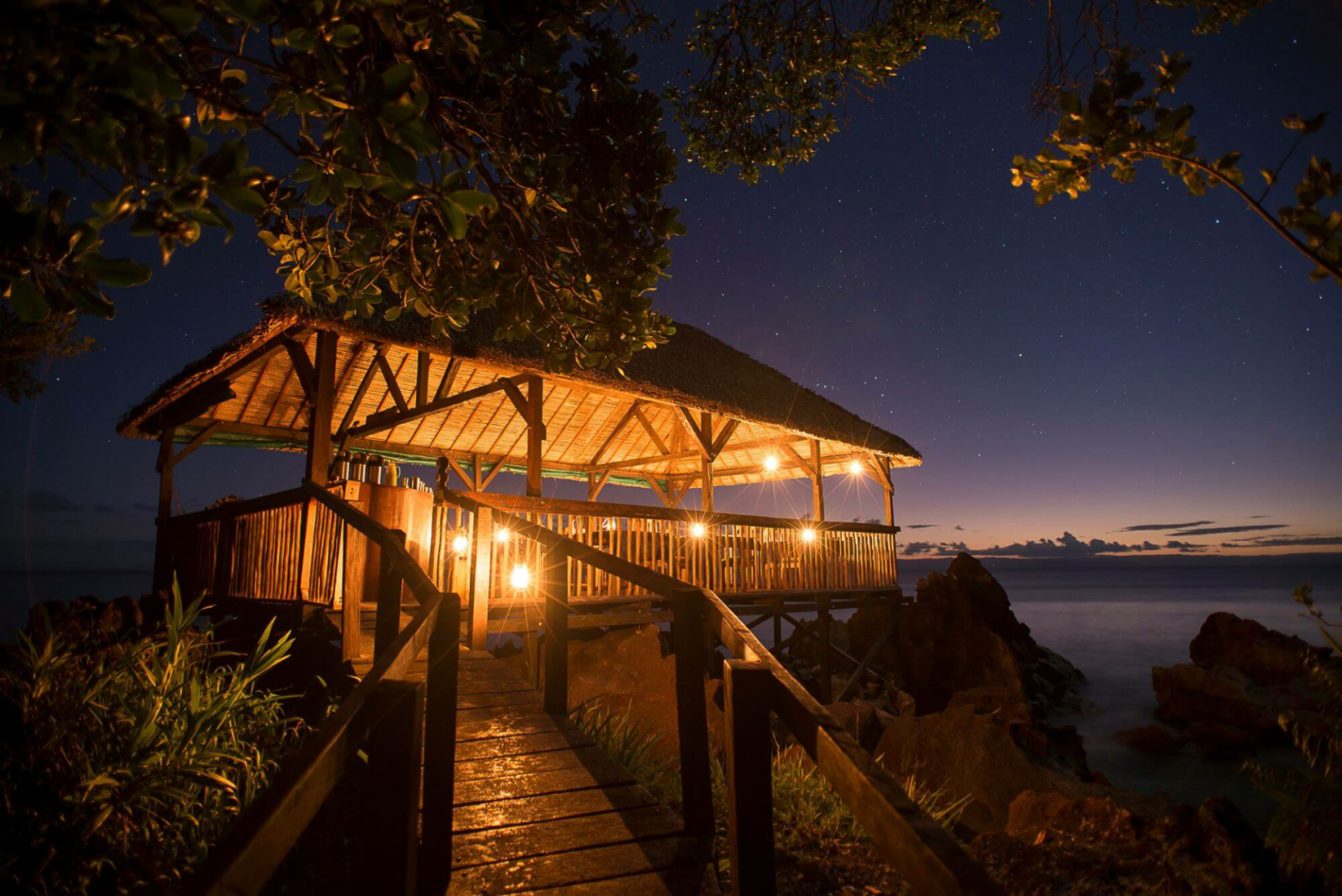 Von Beach House führt ein Weg zum fabelhaften Seedeck, direkt auf den Felsen über dem Meer mit einem genialen Rundumblick auf das Meer und die bewaldete Küstenlinie. Hier wird das Frühstück serviert, sowie Tee und Kaffee am frühen Nachmittag. Man kann auch zu anderen Zeiten hier verweilen, in einer Hängematte mit einem Buch entspannen und den unvergleichlichen Blick auf den Regenwald und das Meer genießen. Nachts wird das Seedeck sehr schön beleuchtet.