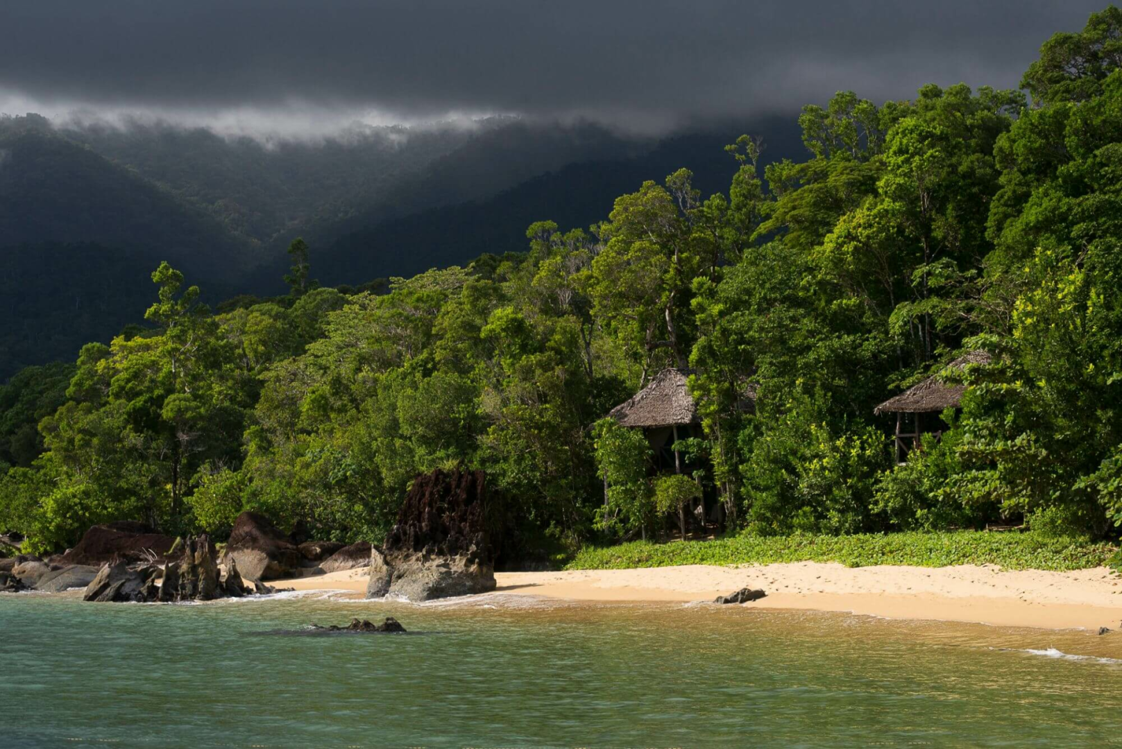 Die ökologisch geführte Masoala Forest Lodge nimmt eine wundervolle Lage in einer geschützten Traumbucht inmitten des Nationalparks, eingequetscht zwischen dem Urwald und dem Korallenreichen Wasser des Tampolo Marine Reserves.