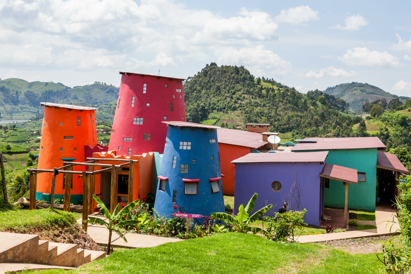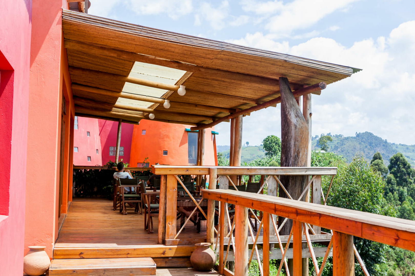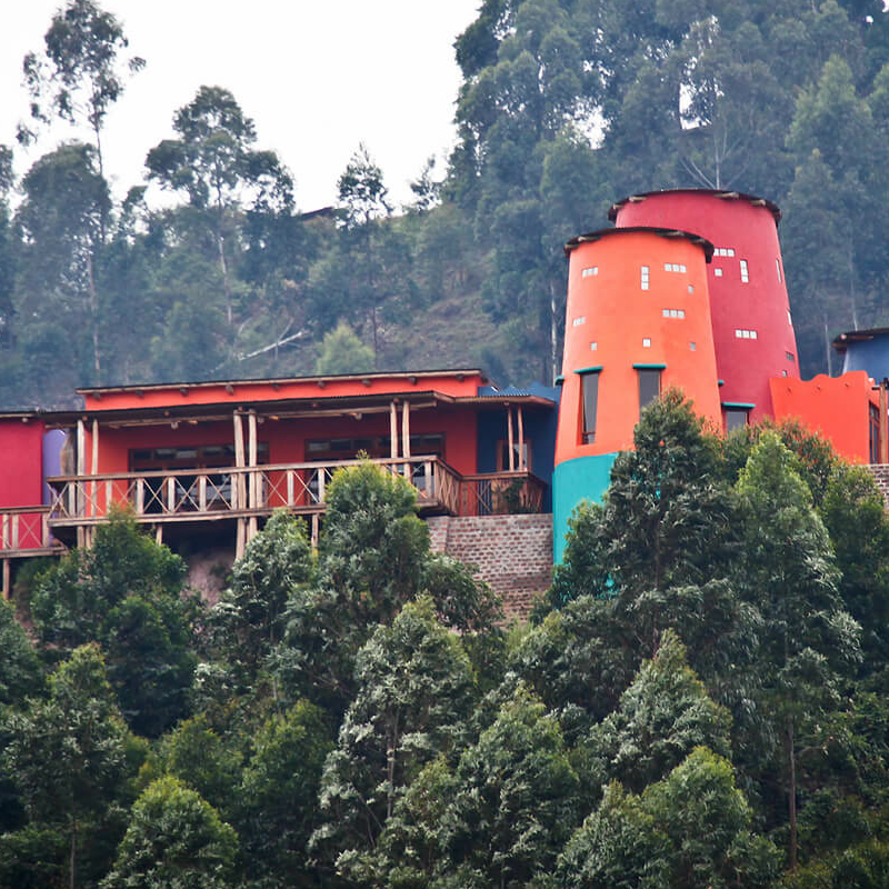 Die Chameleon Hill Lodge ist aus unserer Sicht ohne Zweifel die bizarrste Lodge Ugandas. Privilegiert am nördlichen Ufer des malerischen Lake Mutandas gelegen, sticht sie schon aufgrund ihrer exzentrischen Gaudi-Architektur inmitten der imposanten Landschaft der Virunga-Vulkane sofort hervor.