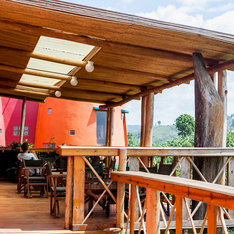 Die Chamaeleon Hill Lodge ist eine originelle, sehr spezielle Lodge, die besonders Reisenden gefallen wird, die sich für Architektur und Design interessieren. Gäste, die gerne eine Beobachtungstour zu den Gorillas machen möchten, sollten allerdings wissen, dass die Straßenverhältnisse von hier aus bis zum Startpunkt des Trekkings sehr schlecht sind. Vielleicht sollten sie besser sicherheitshalber eine Unterkunft wählen, die in größerer Nähe zum Startpunkt liegt.