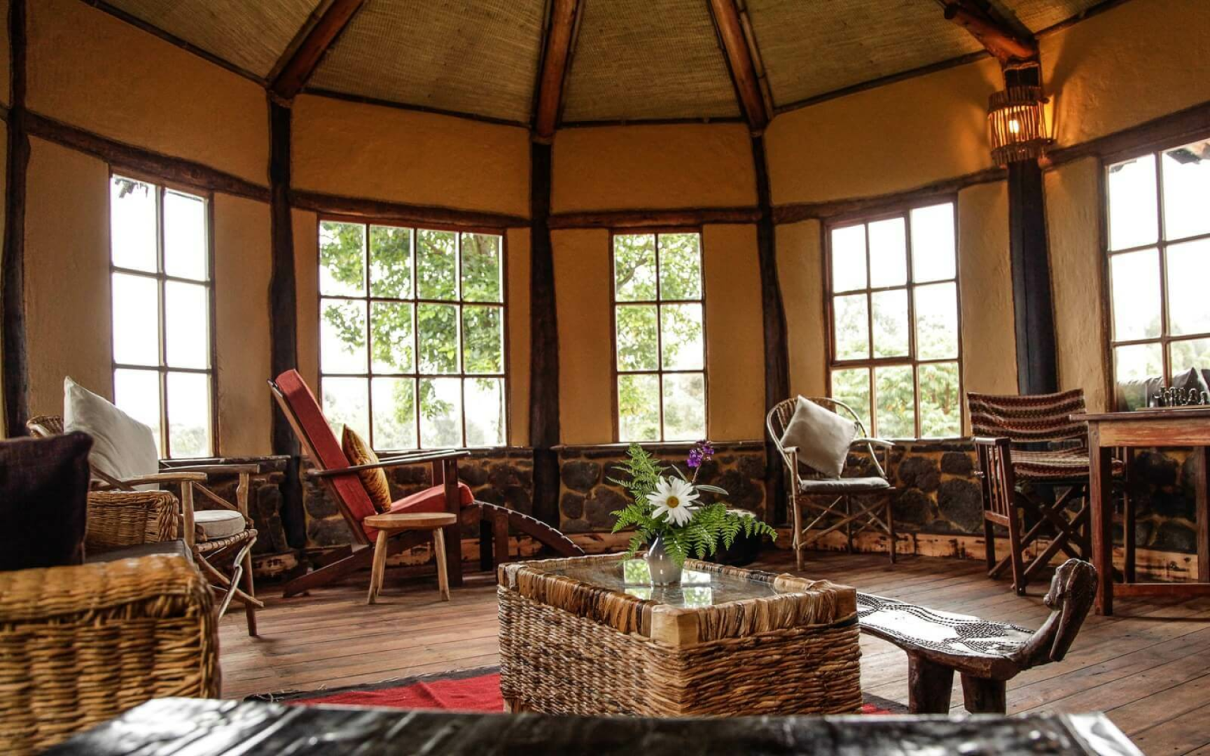 Die Mount Gahinga Lodge von Volcano Safaris liegt nur zehn Kilometer von der Stadt Kisoro am Rande des Mgahinga-Nationalparks entfernt. Die Lodge besitzt einen unverkennbaren rustikalen Charme – man fühlt sich wie auf einer Farm zwischen den farbenfrohen, solide eingerichteten Rundhütten, die in eine wunderschöne tropische Gartenlandschaft eingebettet sind. Im Haupthaus finden sich ein Restaurant und ein Kamin.