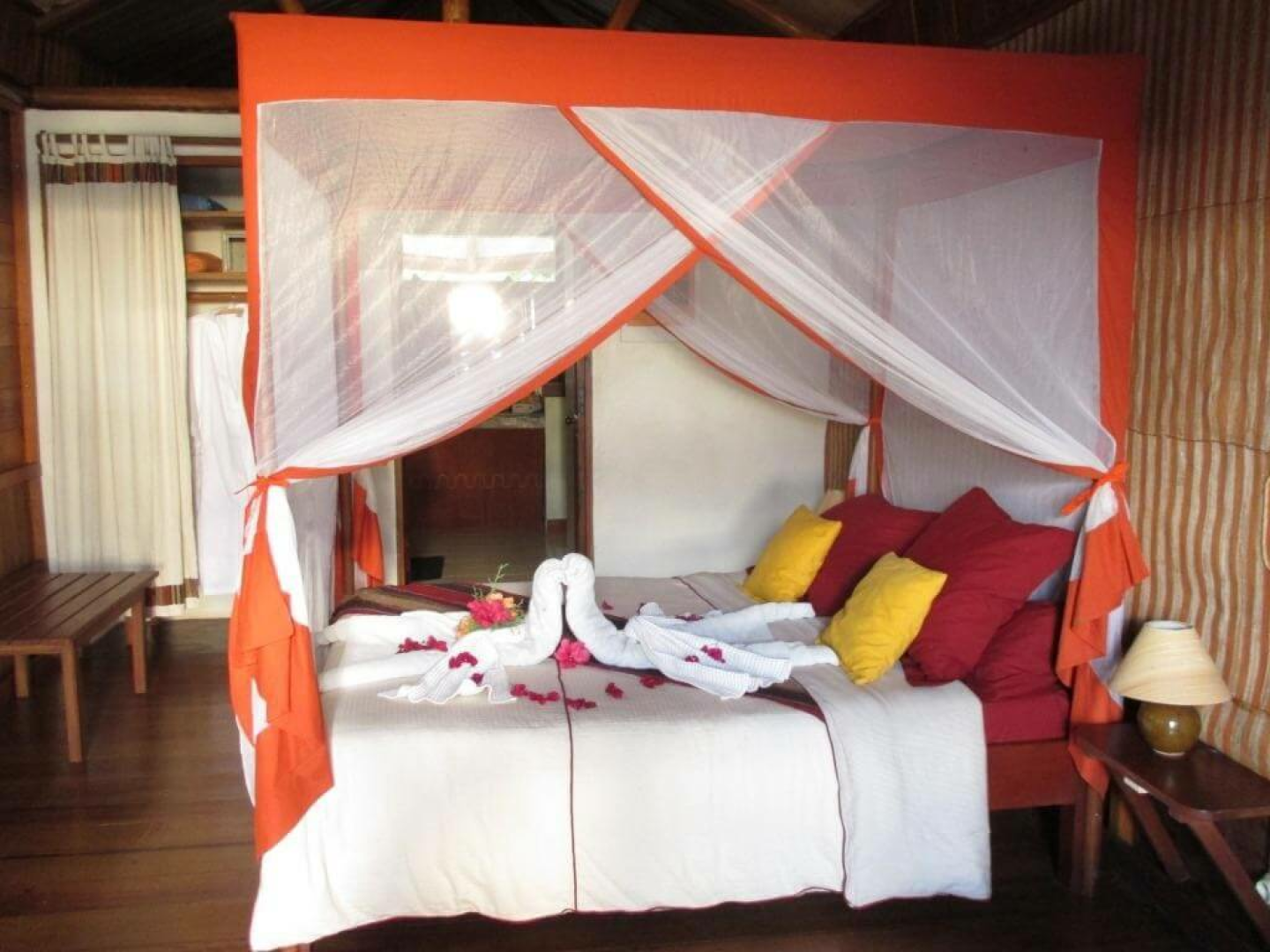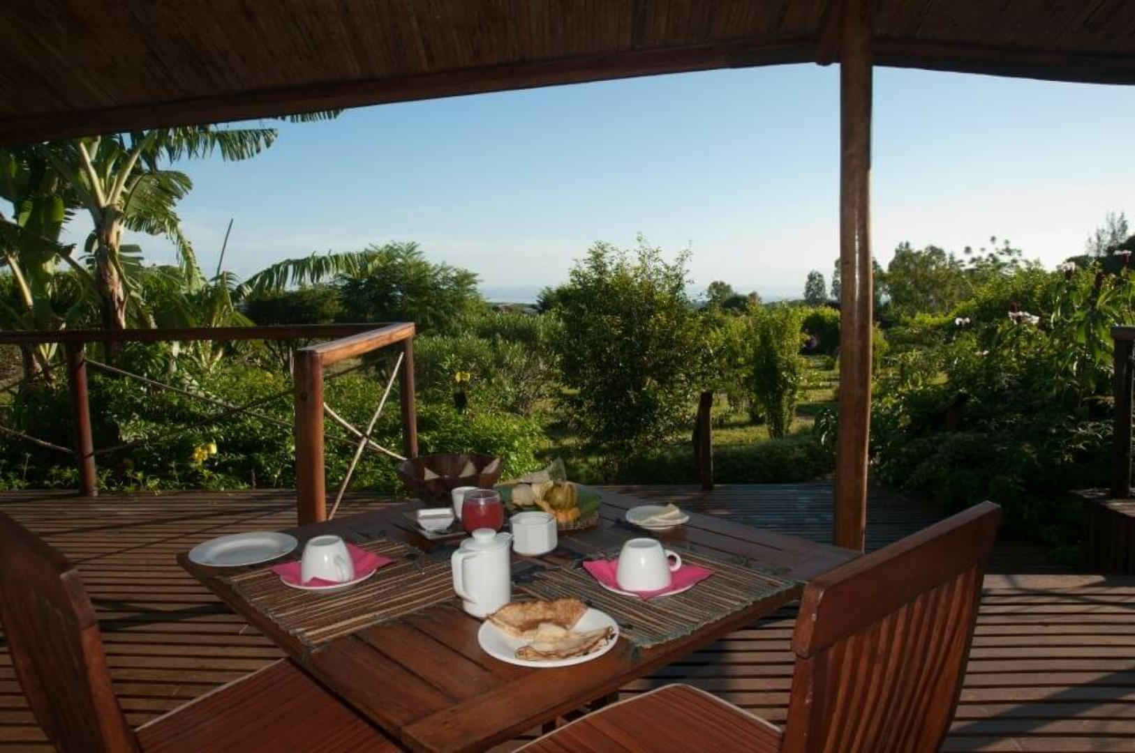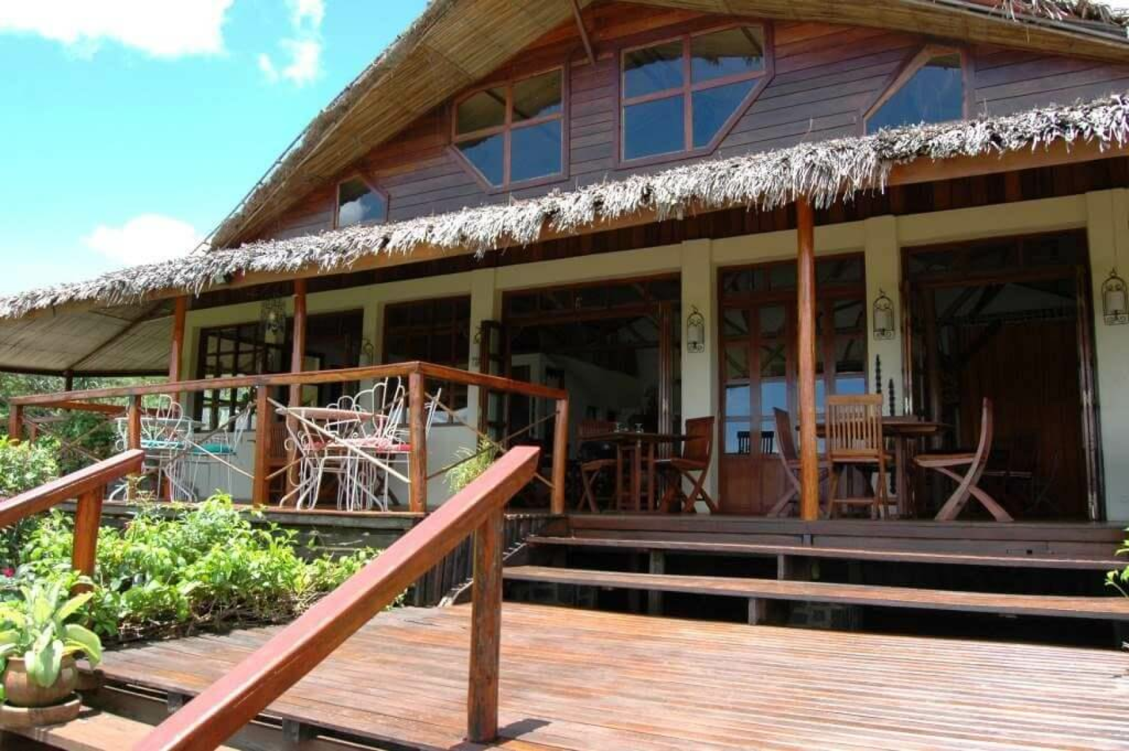 Die Nature Lodge ist wahrscheinlich die am besten bewertete Unterkunft in der Nähe des Amber-Nationalparks. Sie liegt in der Nähe des verschlafenen französischen Kolonialdorfes Joffreville im hohen Norden Madagaskars. Die Hauptlodge ist ein attraktives und charmantes Holzgebäude mit weitreichenden Aussichten auf den Mosambik-Kanal in der einen und den Indischen Ozean in der anderen Richtung. Sie bietet zwölf saubere und schöne strohgedeckte Bungalows mit herrlichem Blick von der Terrasse. Die Bungalows liegen inmitten üppiger tropischer Gärten, mit weitem Blick über die sanften Hügel und dichten Wälder bis hin zum Indischen Ozean. Es gibt auch einen schönen Swimmingpool. Nature Lodge macht ihren Namen eine Ehre: Die Bungalows werden mit Solarenergie betrieben, das warme Wasser reicht für eine tägliche Dusche aus. Dies trägt jedoch nur zur magischen Atmosphäre der Nature Lodge bei. Es ist ein ganz besonderer Ort und wir können ihn Naturliebhabern, die den nahe gelegenen Amber-Nationalpark erkunden möchten, nur empfehlen.