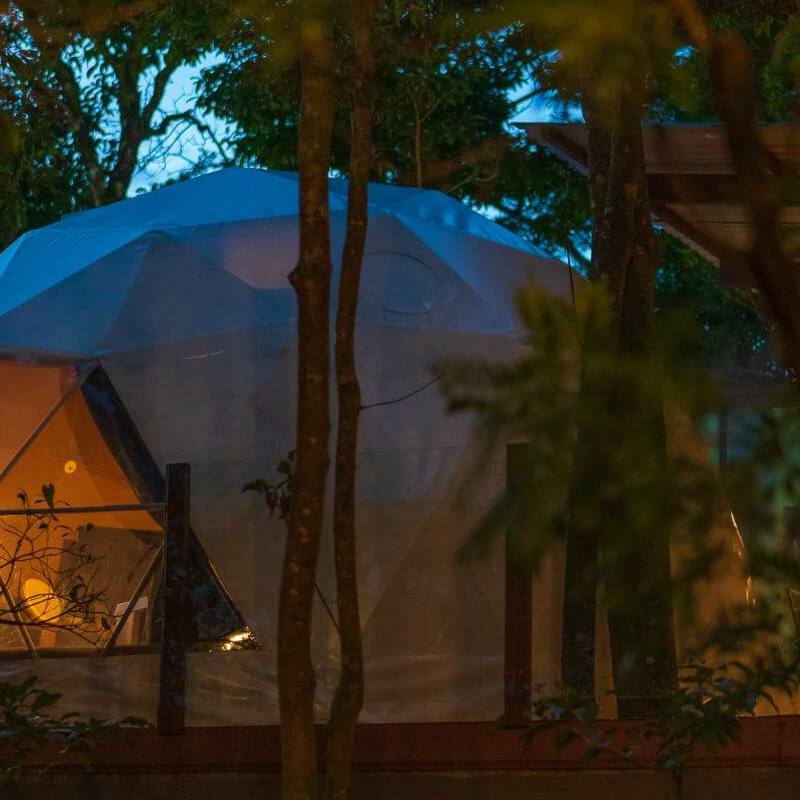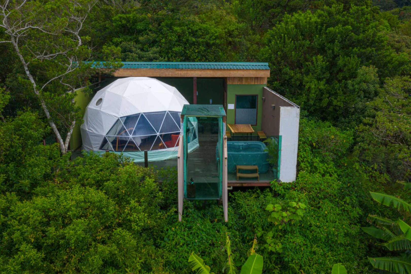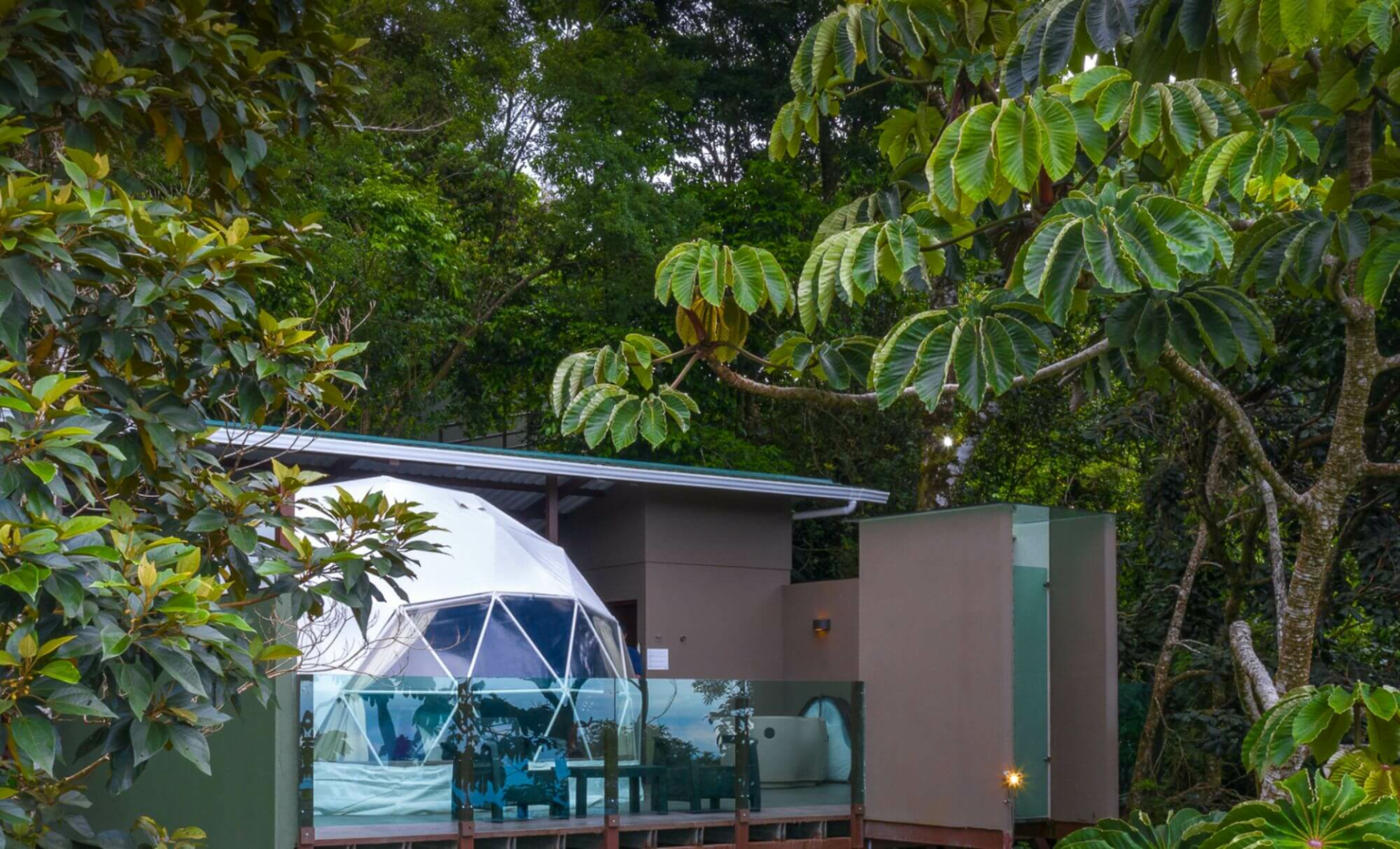 Chira Glamping ist ein kleines Boutique-Hotel im Besitz einer einheimischen Familie aus Monteverde. Es ist an sich ein schönes Konzept, nur für die Höhenlage im Nebelwald von Monteverde ist die Unterbringung in beheizten Zelten. Die Lodge besteht aus fünf schön gemachten Kuppelzelte, die begehbar sind und ein privates Badezimmer mit Außendusche haben. Das Bett ist sehr bequem und man blickt von dort aus in den Urwald. In den Zelten findet man einen kleinen Vorrat an Getränken und kleinen Lebensmitteln für die Selbstversorgung in der gemeinsamen Küche. Jedes Zelt hat auch einen Balkon: ein herrlicher Ort, um die vogelreiche Welt des Urwalds zu bestaunen.
