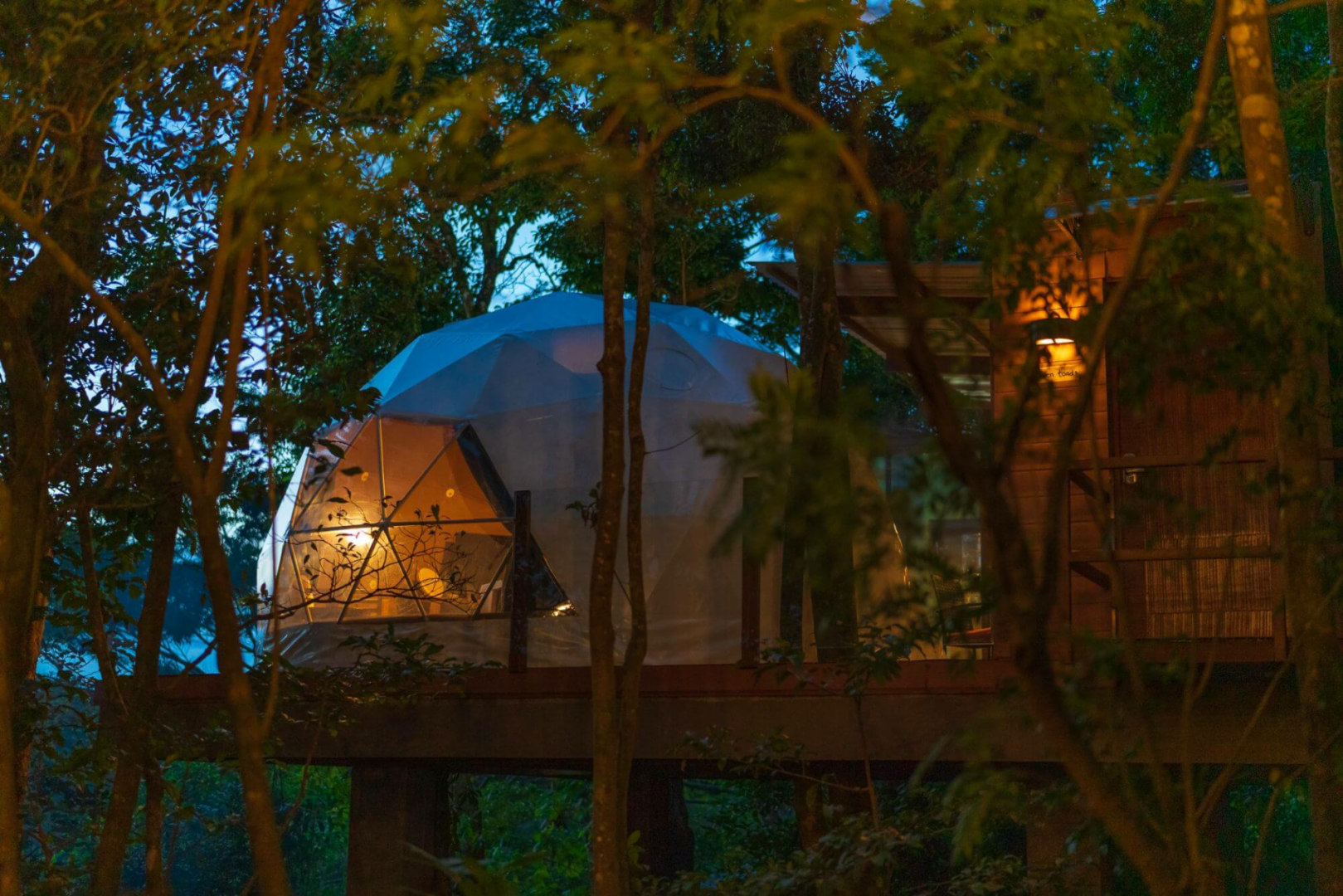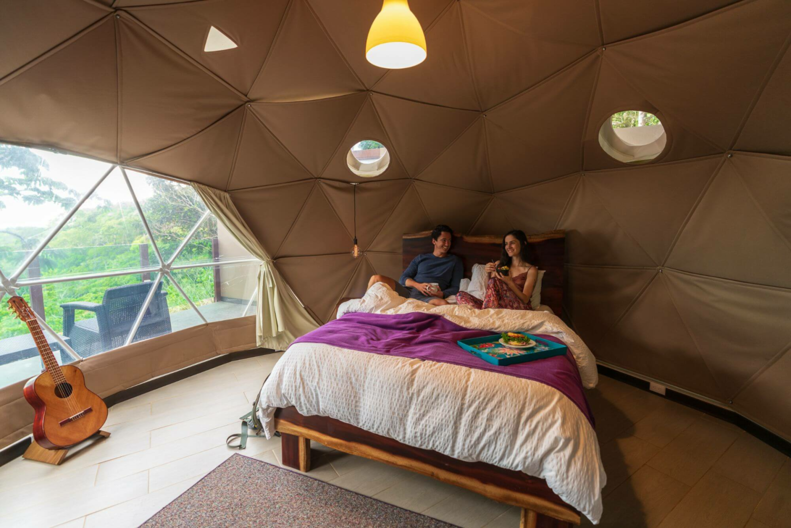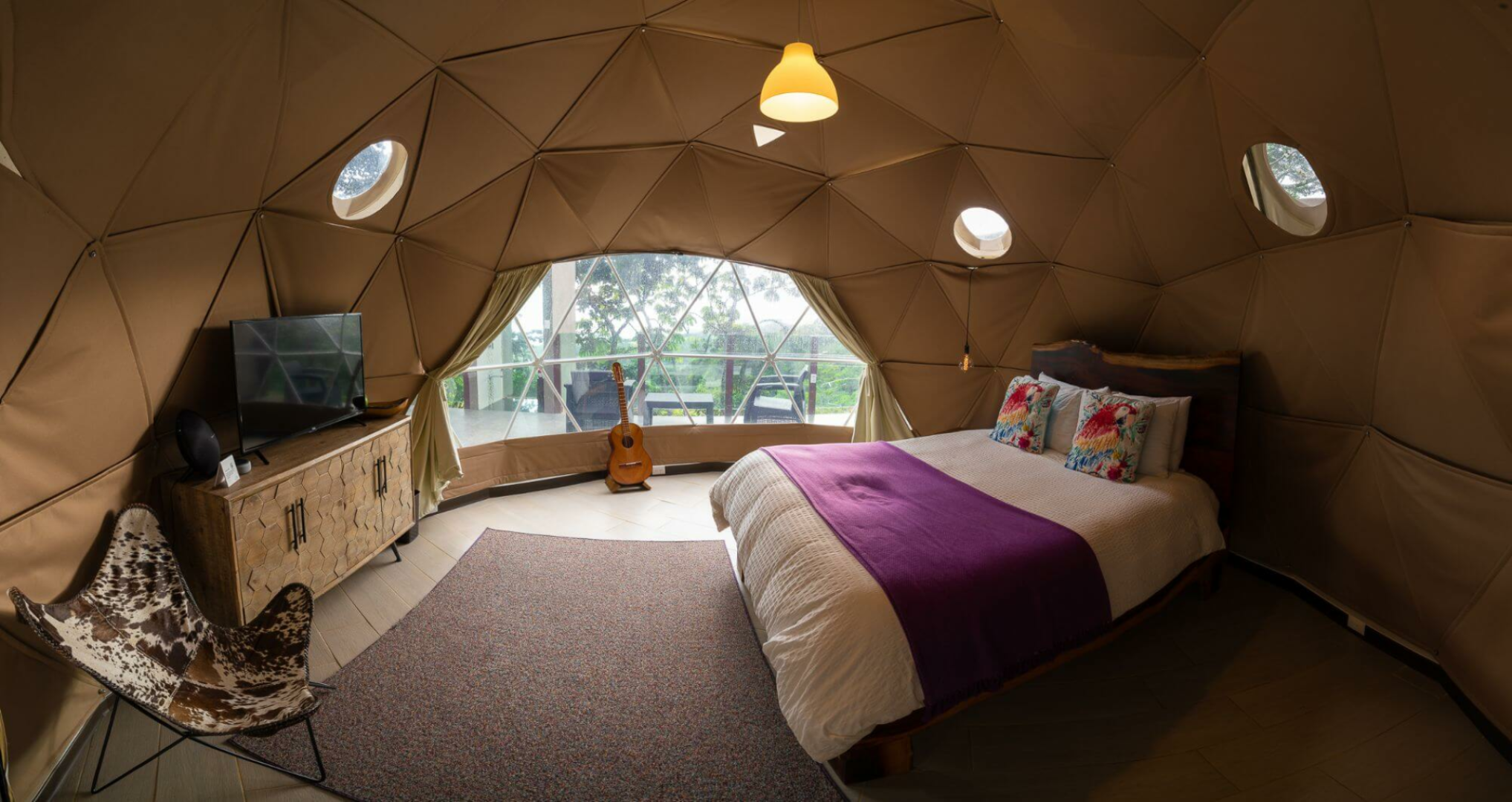 Chira Glamping ist ein kleines Boutique-Hotel im Besitz einer einheimischen Familie aus Monteverde. Es ist an sich ein schönes Konzept, nur für die Höhenlage im Nebelwald von Monteverde ist die Unterbringung in beheizten Zelten. Die Lodge besteht aus fünf schön gemachten Kuppelzelte, die begehbar sind und ein privates Badezimmer mit Außendusche haben. Das Bett ist sehr bequem und man blickt von dort aus in den Urwald. In den Zelten findet man einen kleinen Vorrat an Getränken und kleinen Lebensmitteln für die Selbstversorgung in der gemeinsamen Küche. Jedes Zelt hat auch einen Balkon: ein herrlicher Ort, um die vogelreiche Welt des Urwalds zu bestaunen.