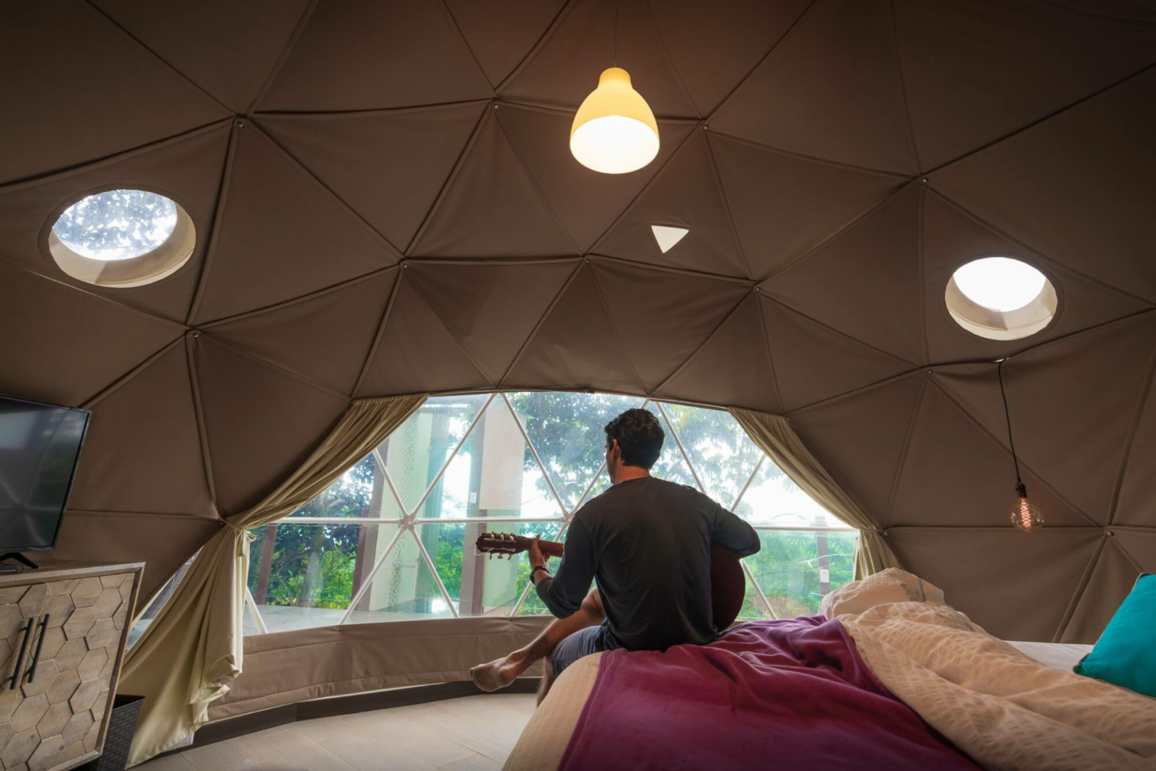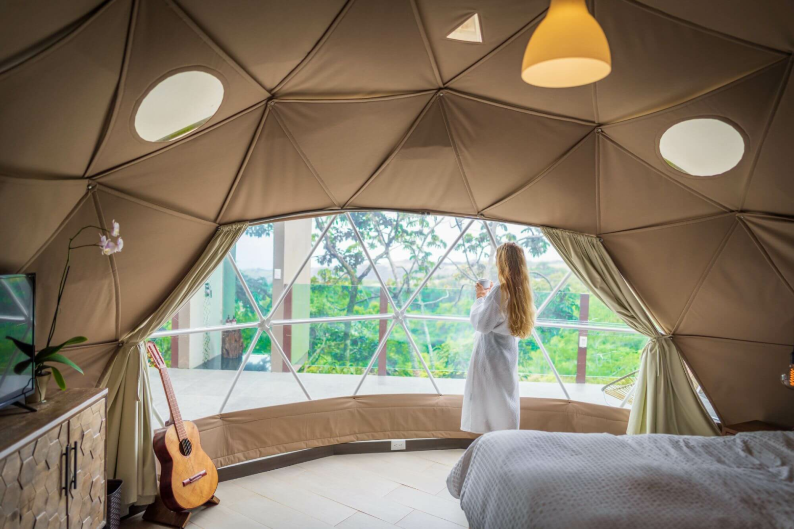 Chira Glamping liegt auf einer steilen Anhöhe, ein kurzer Spaziergang in die Stadt mit Supermärkten und Cafés und eignet sich deswegen besser für Selbstversorger mit eigenem Auto.