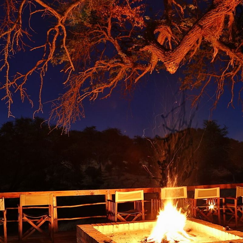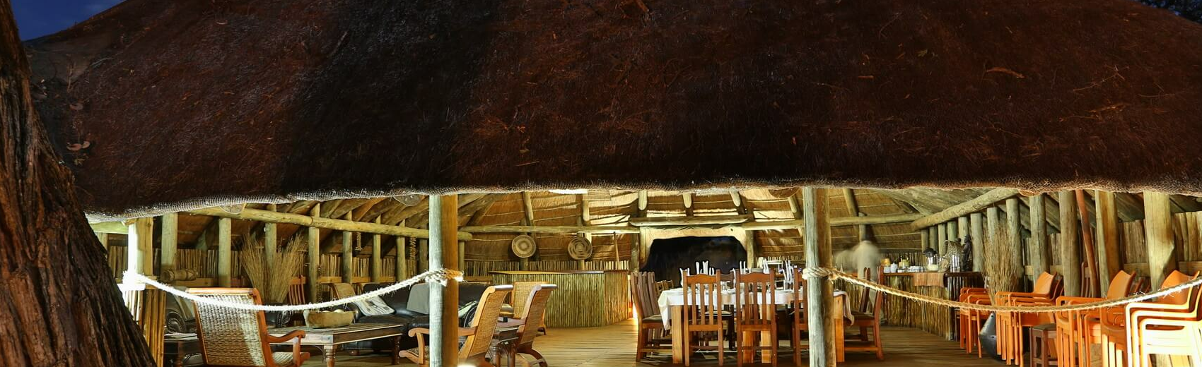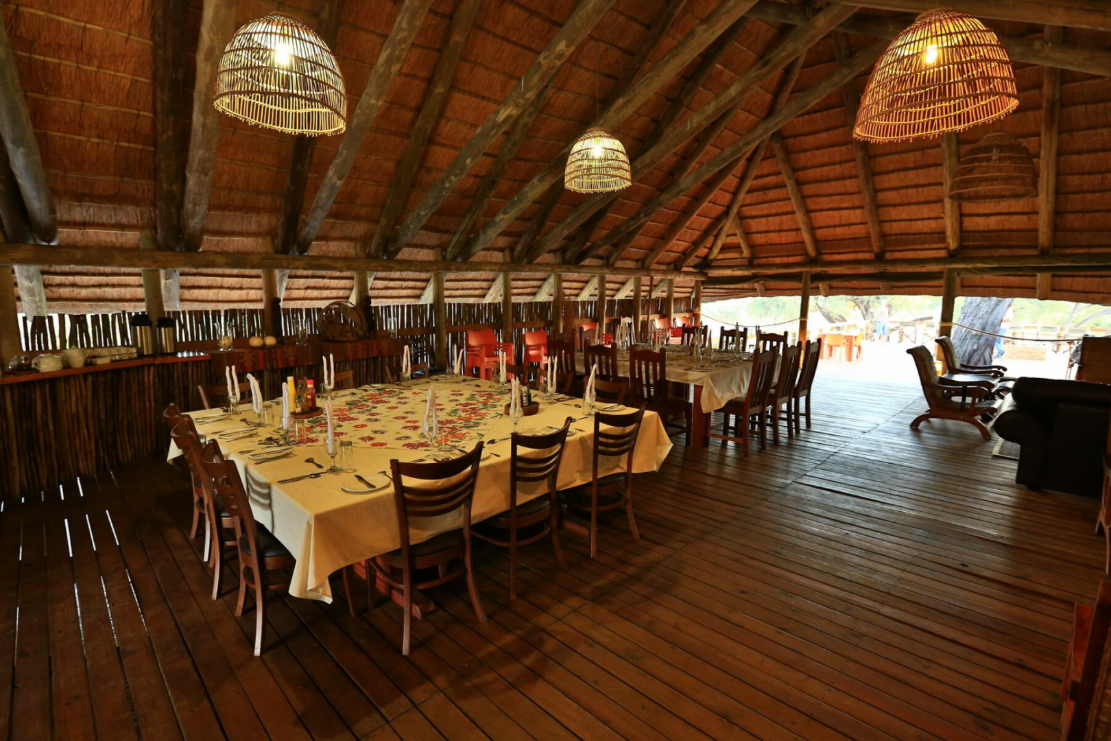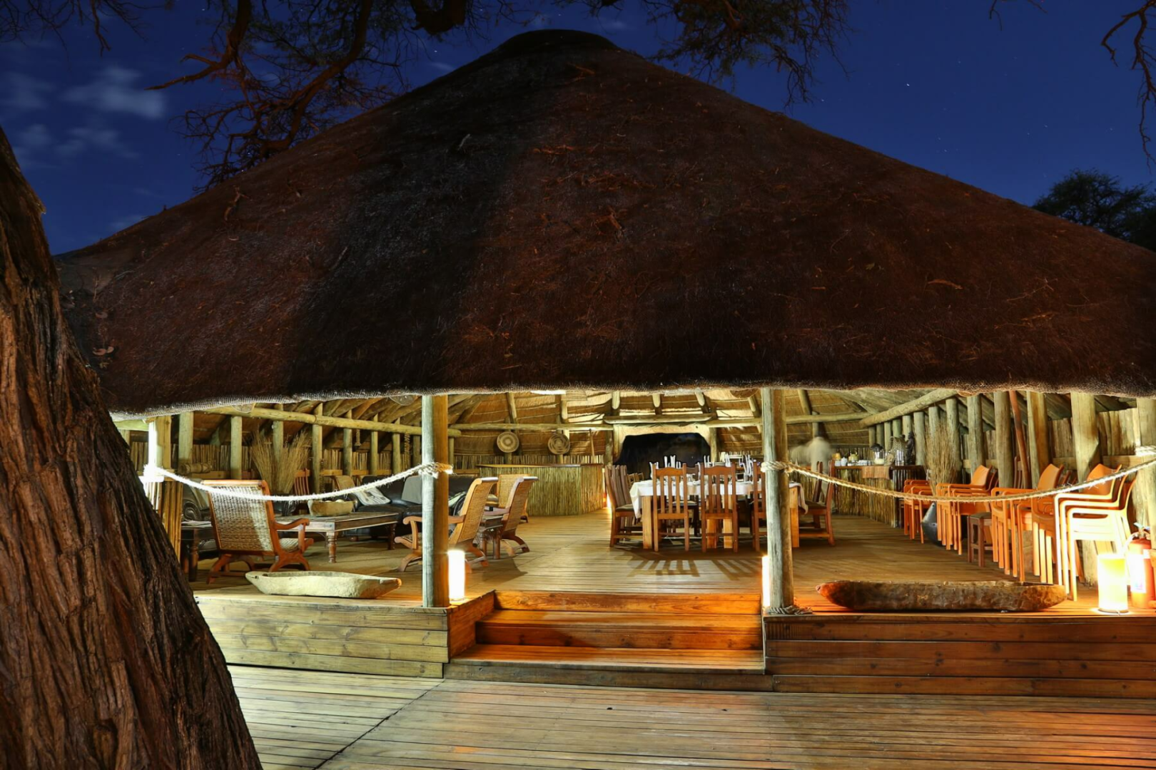 Sonst ist Mogotlho Safari Lodge eher einfach, mit großen öffentlichen Aufenthaltsbereichen hoch über dem Fluss auf einer Plattform erbaut, einer Feuerstelle auf dem Deck und einem komfortablen nach vorn geöffneten Essraum.