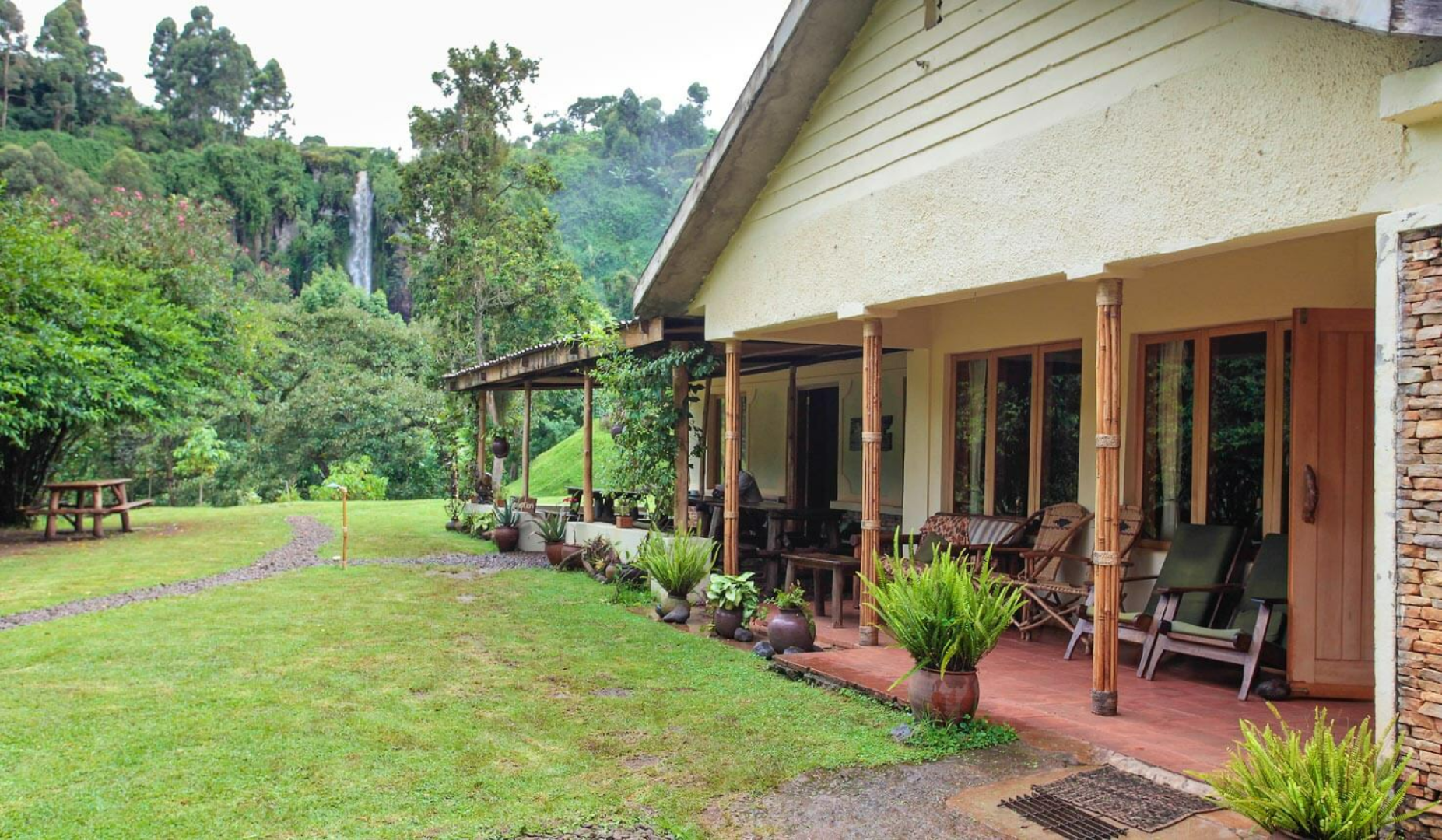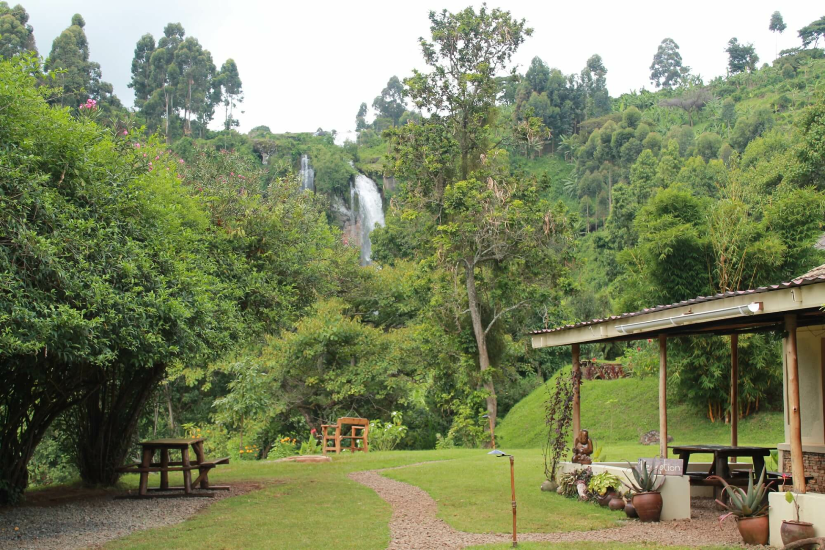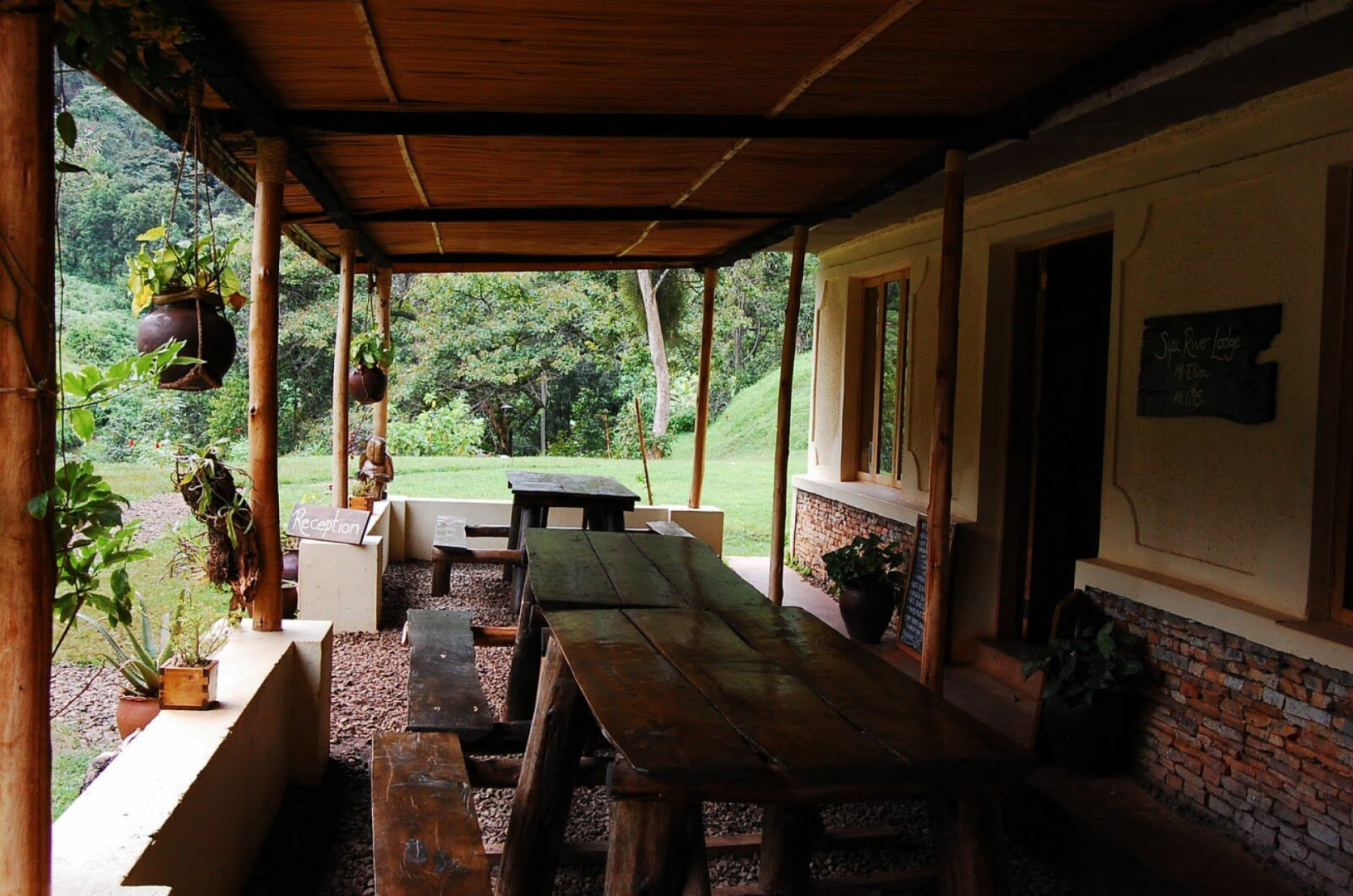 Die Sipi River Lodge liegt in einer grün bepflanzten gartenähnlichen Anlage in Fußnähe zu den schönen Sipi Falls. Die Lodge ist ziemlich rustikal und bescheiden mit einem zentralen, einfach eingerichteten Haupthaus mit Lounge und Restaurant und Gästeunterbringung in 14 ebenfalls etwas spartanisch eingerichteten Bandas unterschiedlicher Kategorien.