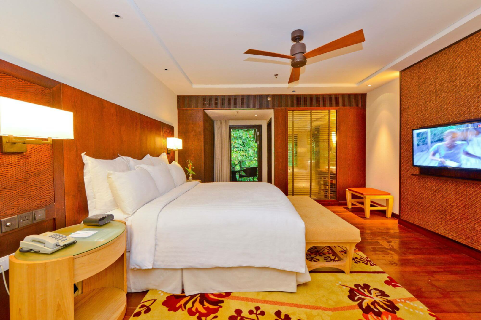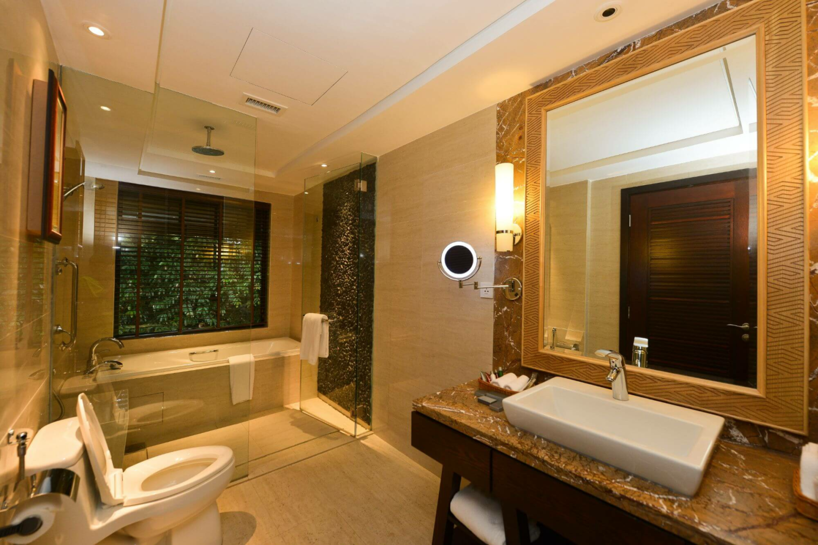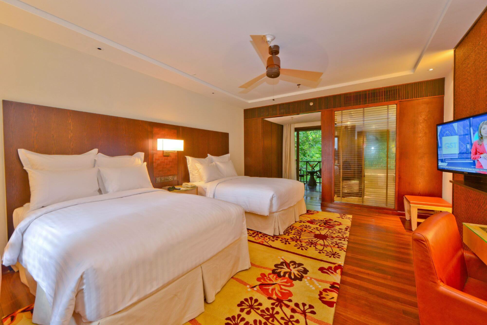 Das alte Royal Mulu Resort wurde von Marriott Hotels erworben und gründlich renoviert. Das große 5-Sterne-Anwesen besteht aus auf Stelzen stehenden Cottages und bietet eine schöne Aussicht auf den Dschungel. Die Wohneinheiten sind komfortabel eingerichtet und über Plankenwege miteinander verbunden. Trotz des eher rustikalen Ambientes entspricht der Einrichtungsstil mehr einem Stadthotel als dem einer Lodge mitten im Urwald. Wir hätten uns gewünscht, dass der neue Betreiber Marriott Hotels etwas mehr auf ethnische Einrichtungselemente geachtet hätte, um die Zimmer atmosphärischer zu gestalten.
