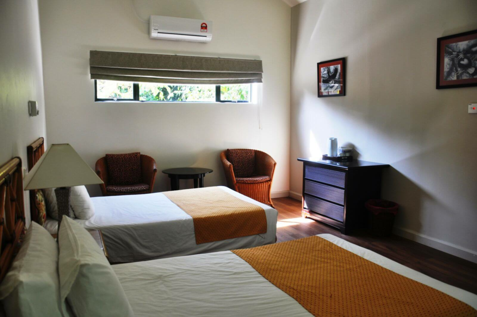 Im Hauptsitz der Parkverwaltung kann man zwischen Zimmern verschiedener Preise und Kategorien wählen. Der Zustand der in der weitläufigen, gartenähnlichen Anlage verstreuten Mittelklasse-Bungalows mit Dusche und Toilette und eigener Terrasse ist überraschend gut. Im halb offenen Restaurant mit schönem Flussblick, angrenzenden Souvenirshop und Zugang zum Interpretationszentrum kann man es gut aushalten.