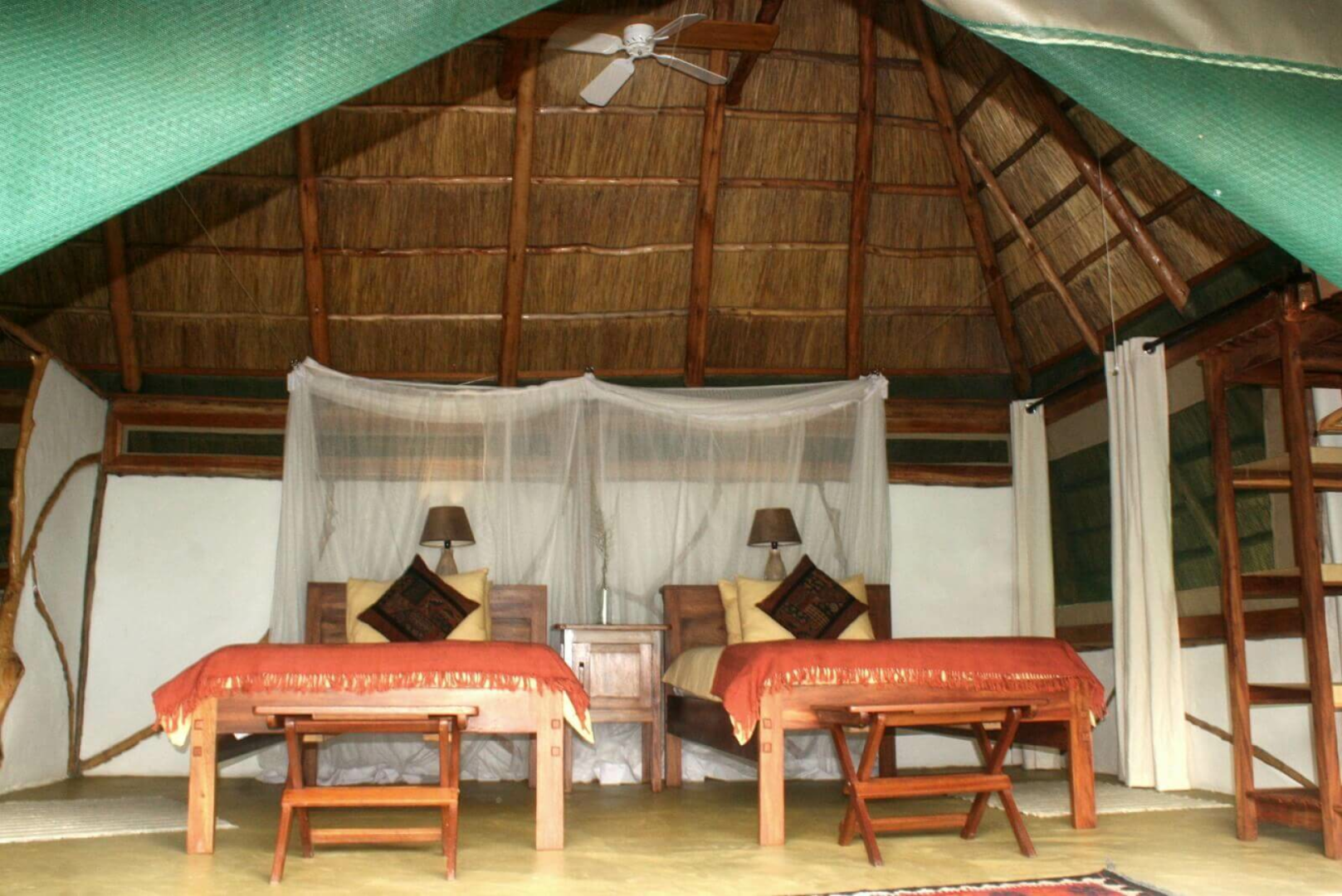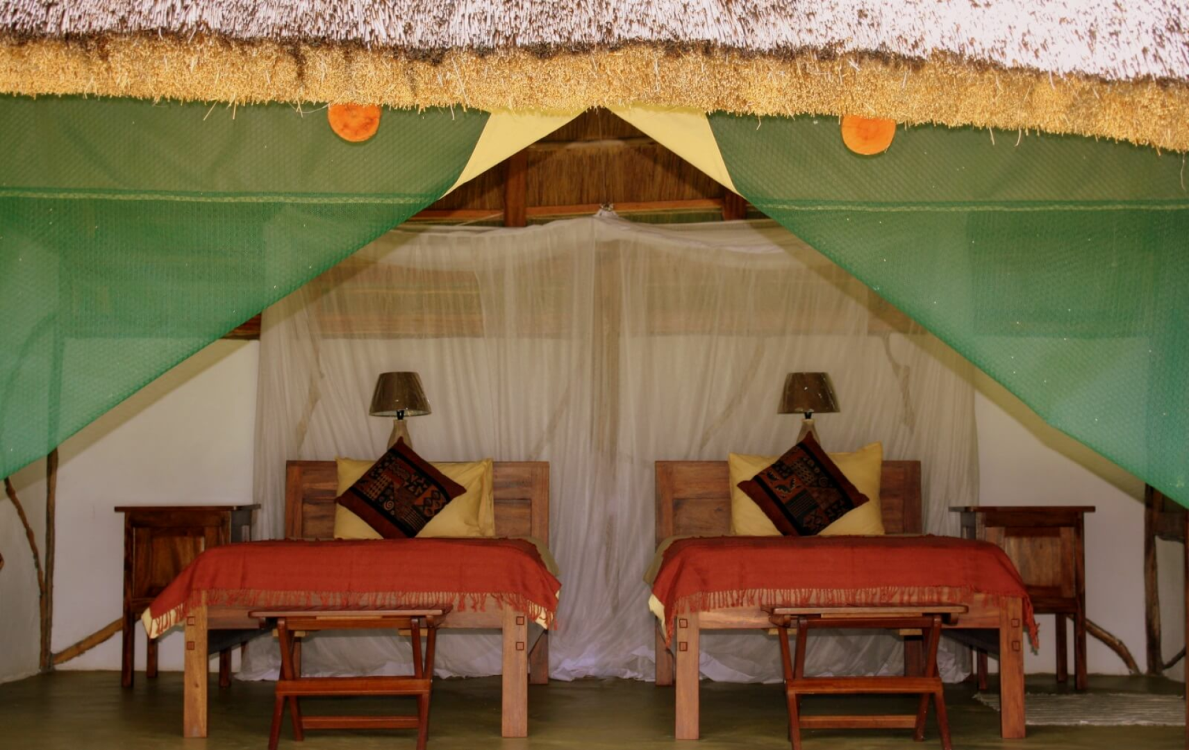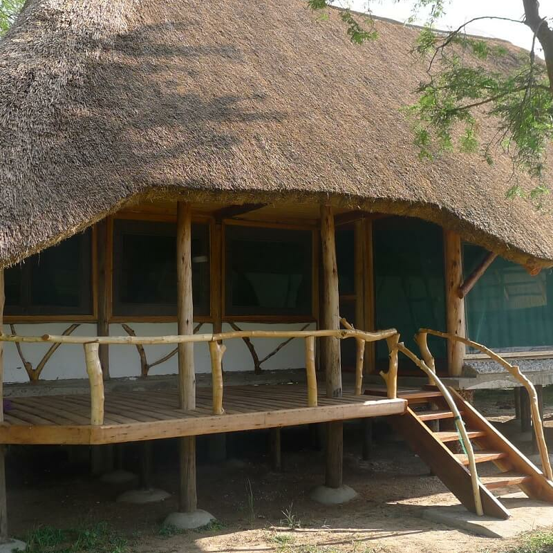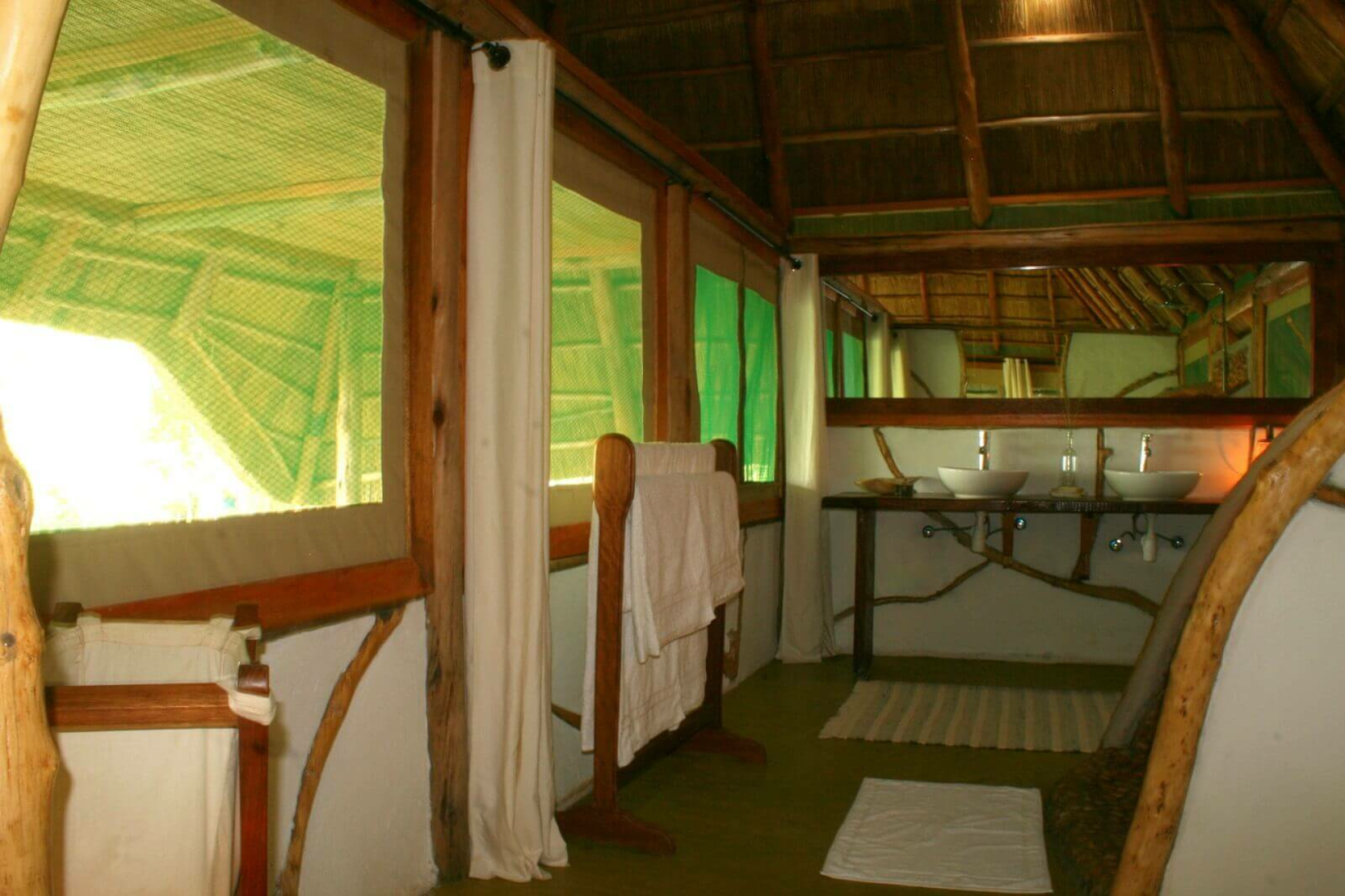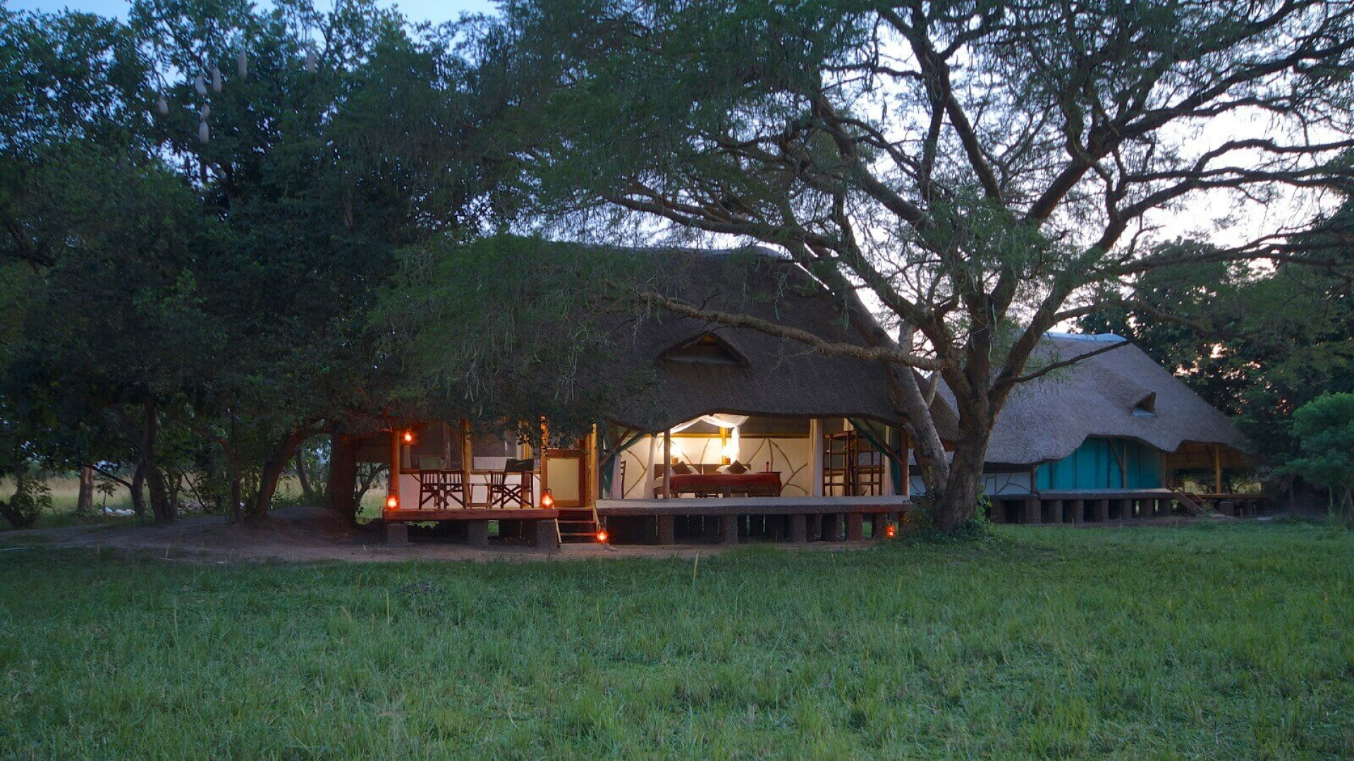 Die Bungalows haben nur drei Wände, sind also vorne offen und nur mit einem Netz versehen. Frische Luft durchdringt das Zimmer. Häufig kann man direkt vom Camp aus Nilpferde, Krokodile und manchmal sogar Elefanten beobachten.