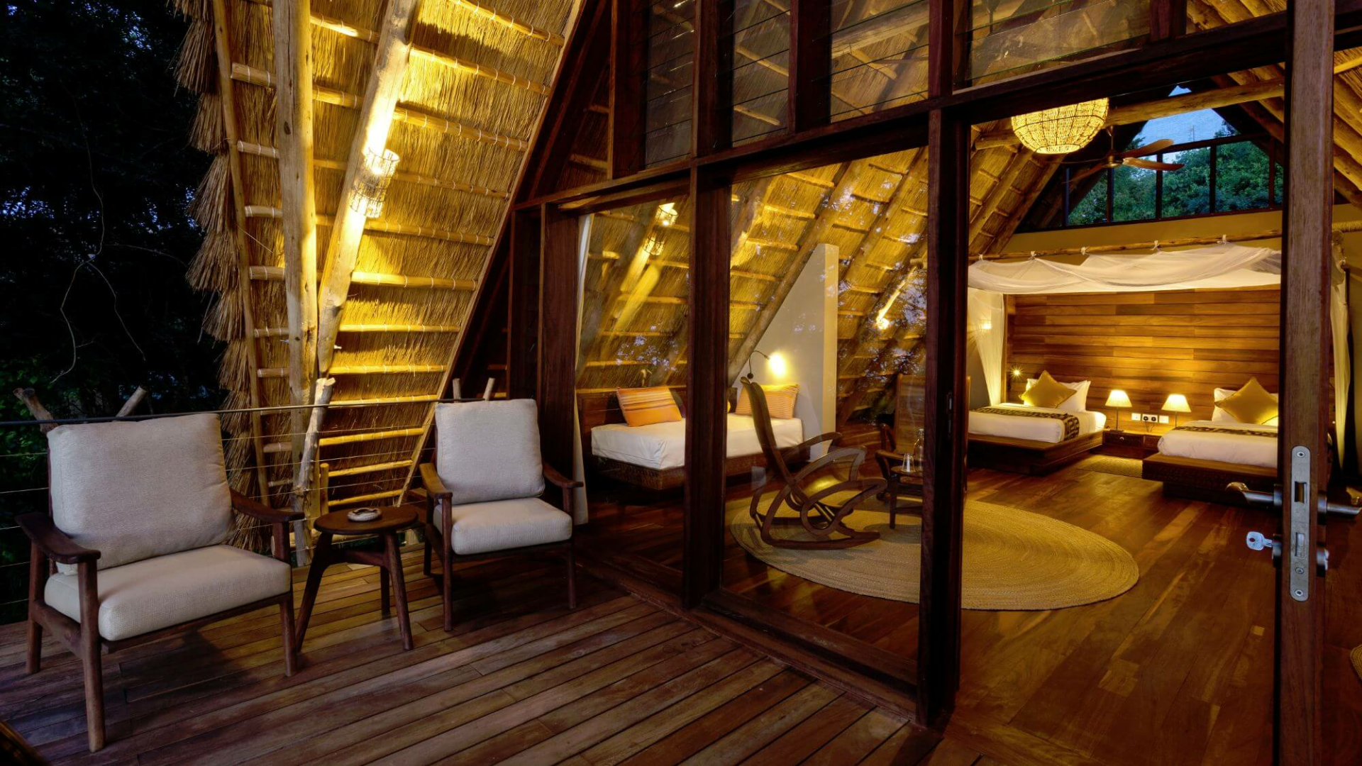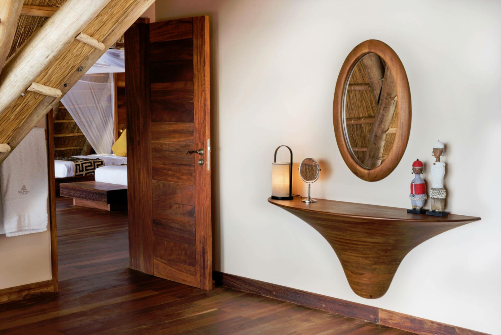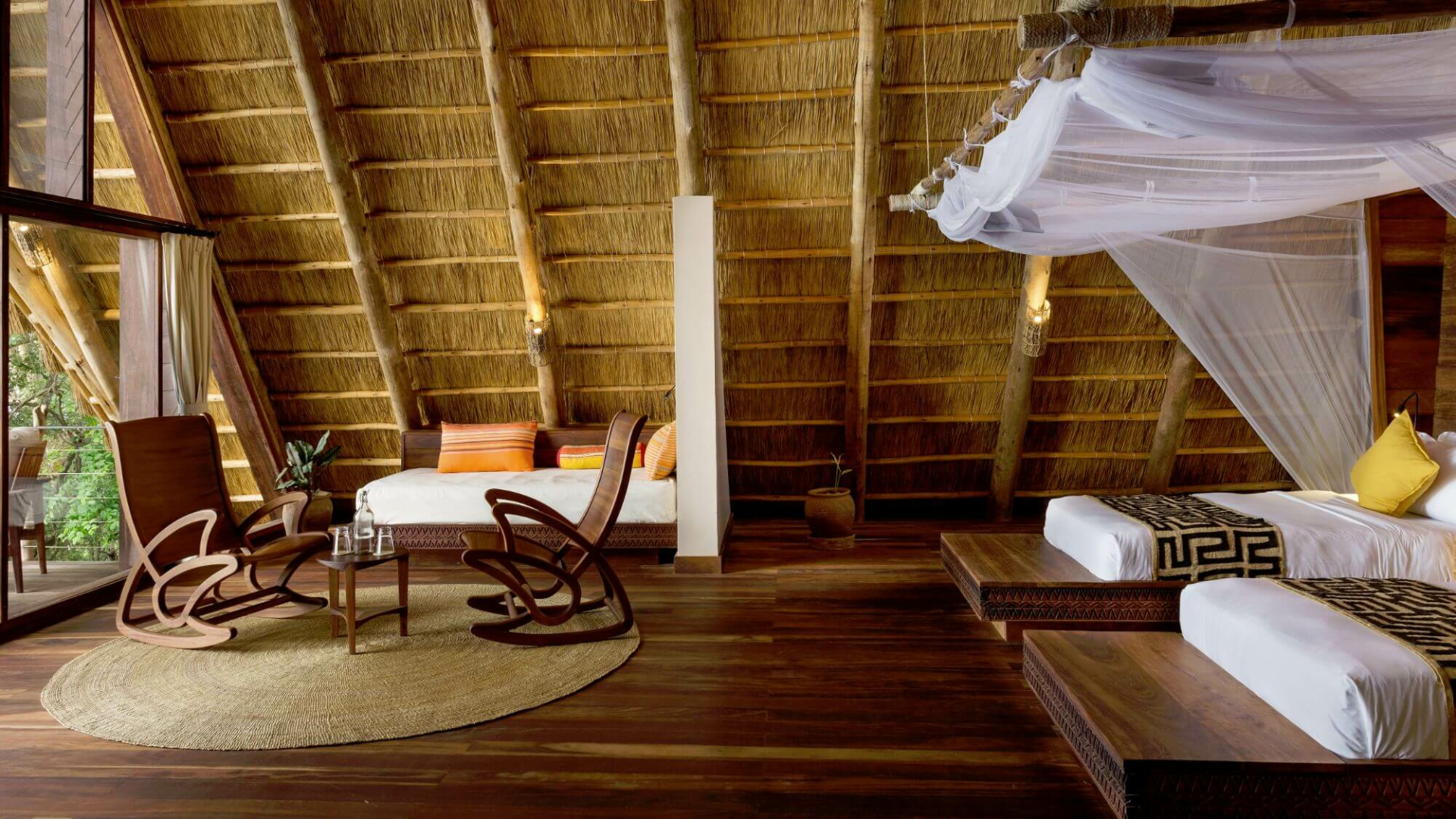 Dachwerk, das bis zum Boden reicht, verleihen dem Raum eine wohltuende