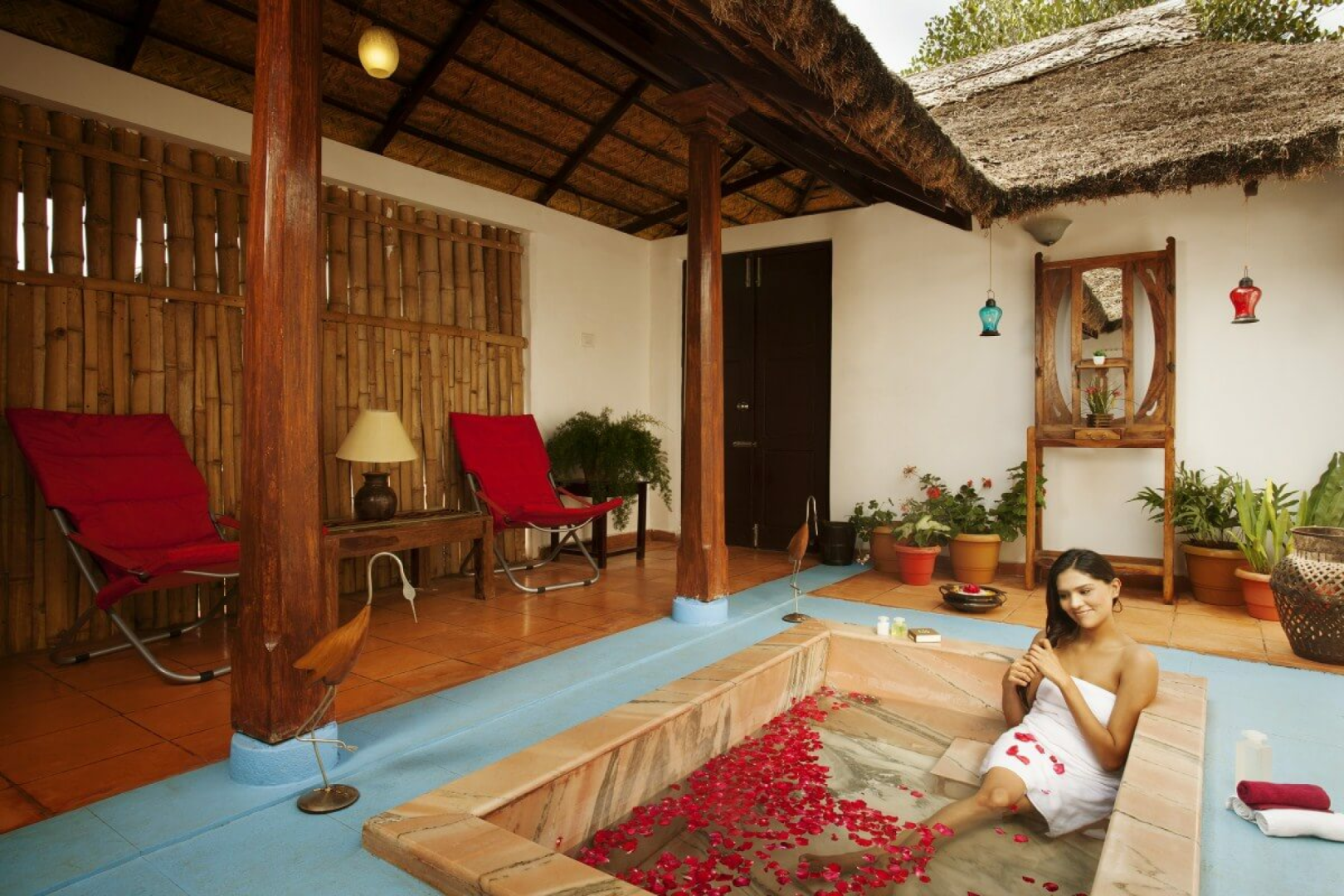 Die sehr großzügigen Bungalows ist vom wuchernden Grün umgeben und wunderschön gestaltet. Sie haben alle eine eigene Terrasse und abgegrenztem Innenhof mit Whirlpool.