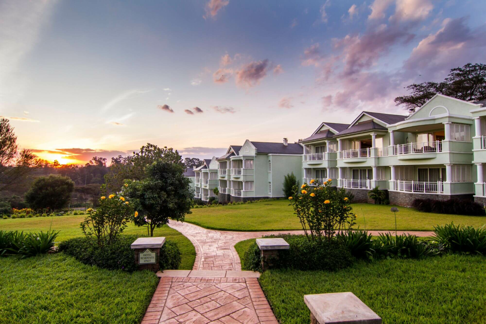 Im grünen Vorort Karen gelegen garantiert dieser stilvolle, vom dichten Dschungel umgebene Wohnkomplex am Rande eines Golfplatzes die notwendige Ruhe nach oder vor einem Flug.