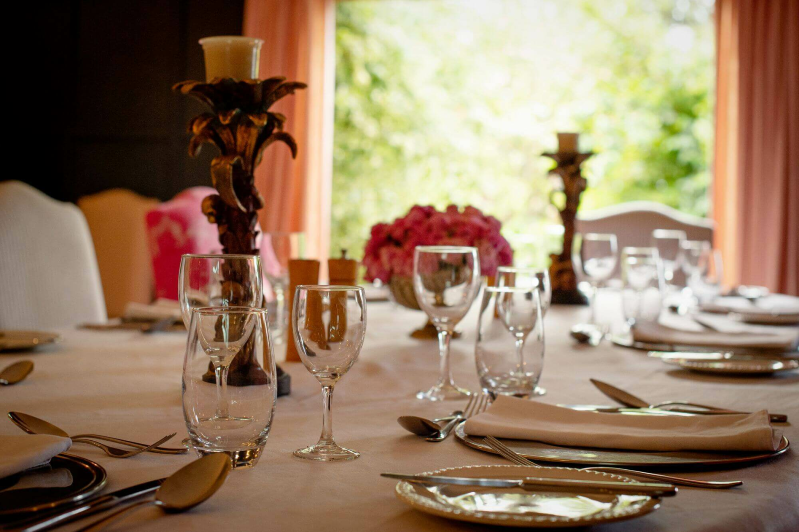 Auf der großen Veranda mit weißen Polstersesseln und Sofas öffnet sich die Glastür zur Terrasse in einen luftigen eleganten Raum mit vielen Teppichen, Kissen, Portraits der einstigen Hausherren, einem Klavier und einer kleinen Bar mit blau bezogenen Sitzhockern. Mahlzeiten werden am großen, edlen Tisch im eleganten Speiseraum serviert. Näher zum See wurde im Garten ein sehr schöner Pool im Landhausstil mit Korbmöbeln, Sonnenschirmen und einem eigenen Poolhaus mit Blick auf den unterhalb flimmernden See und auf das bewaldete Seeufer gebaut.