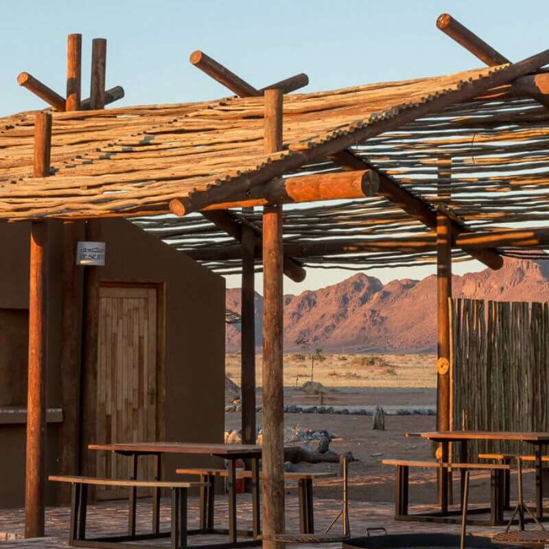 Das Desert Camp, nur fünf Kilometer vom Sesriem-Tor zum Namib-Naukluft-Park entfernt, ist eine angenehme, moderne Lodge, die preisgünstige Unterkünfte für Selbstversorger anbietet.