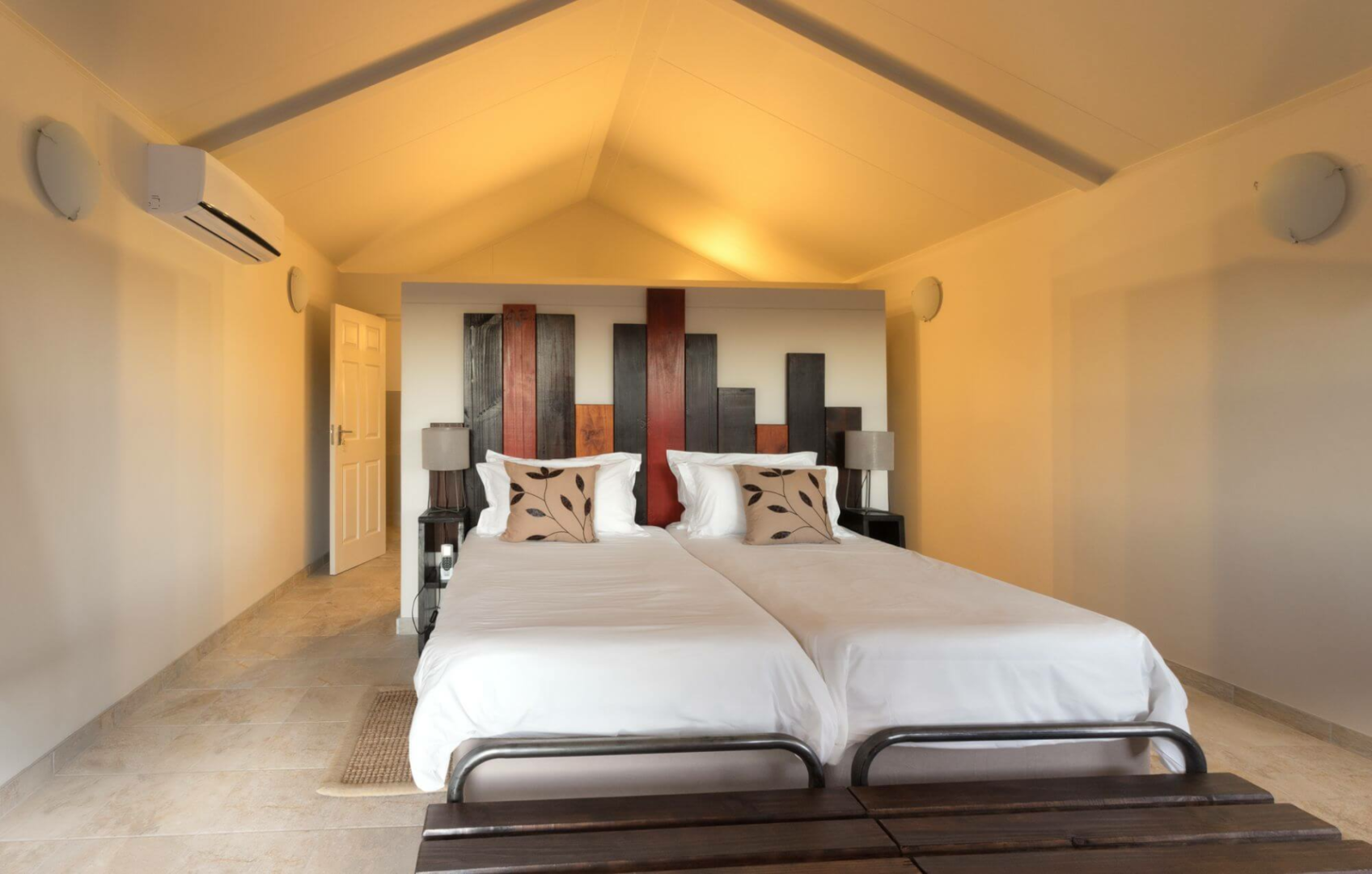 Gäste werden in 24 kleinen rustikalen Hüttchen untergebracht, die simpel, aber dennoch geräumig und komfortabel eingerichtet sind. Jedes ist mit mit zwei Einzelbetten und einem Doppelschlafsofa ausgestattet; es gibt auch genügend Abstellplatz, ein eigenes Bad und eine separate Toilette, sowie eine kleine Terrasse.