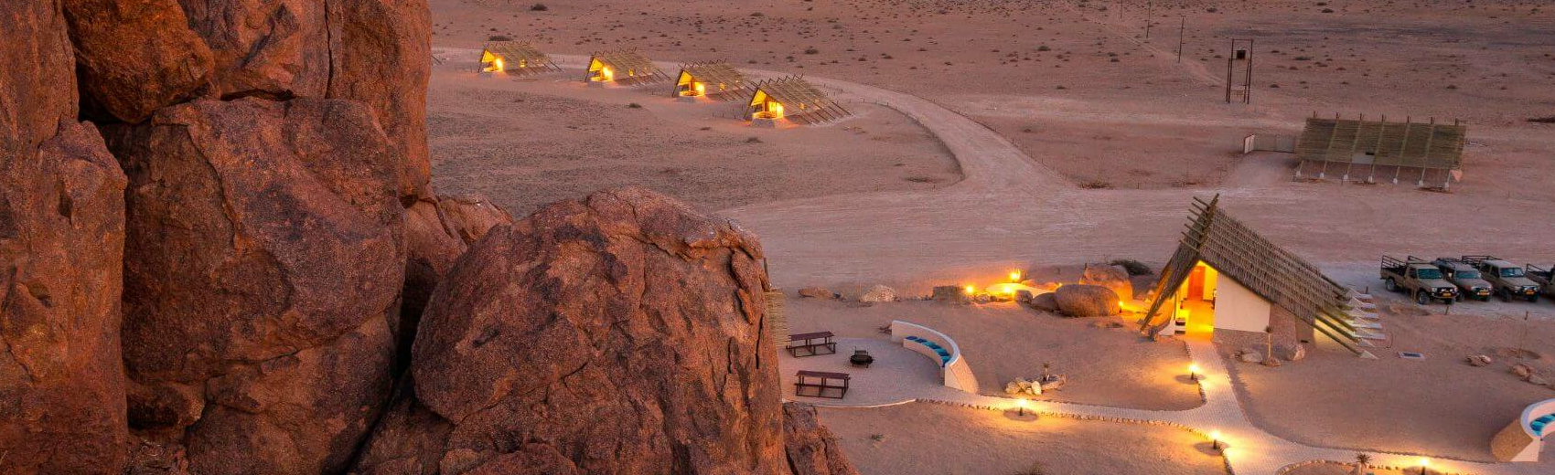 Das Desert Quiver Camp liegt direkt vor dem Haupttor des Namib Naukluft Parks im Sossusvlei-Gebiet im Südwesten Namibias und ist eine angenehm moderne und preiswerte Unterkunft, die sich vorwiegend für Selbstfahrer richtet, die sich gerne selbst verpflegen.