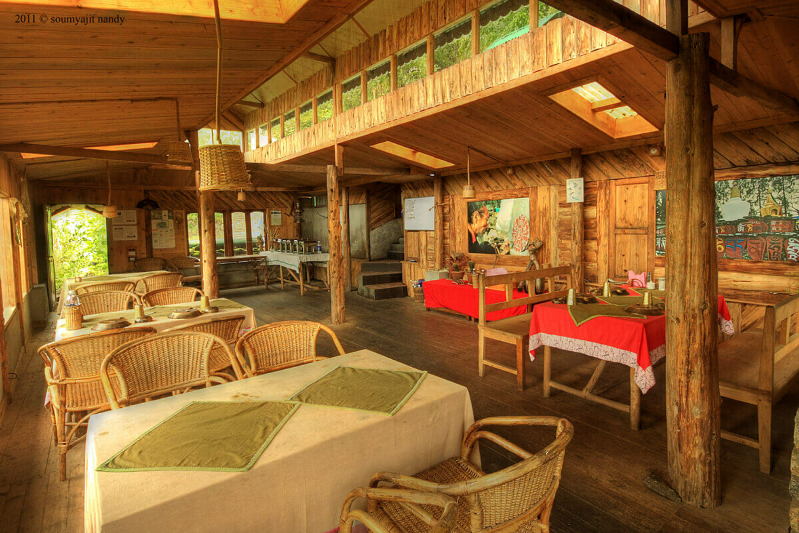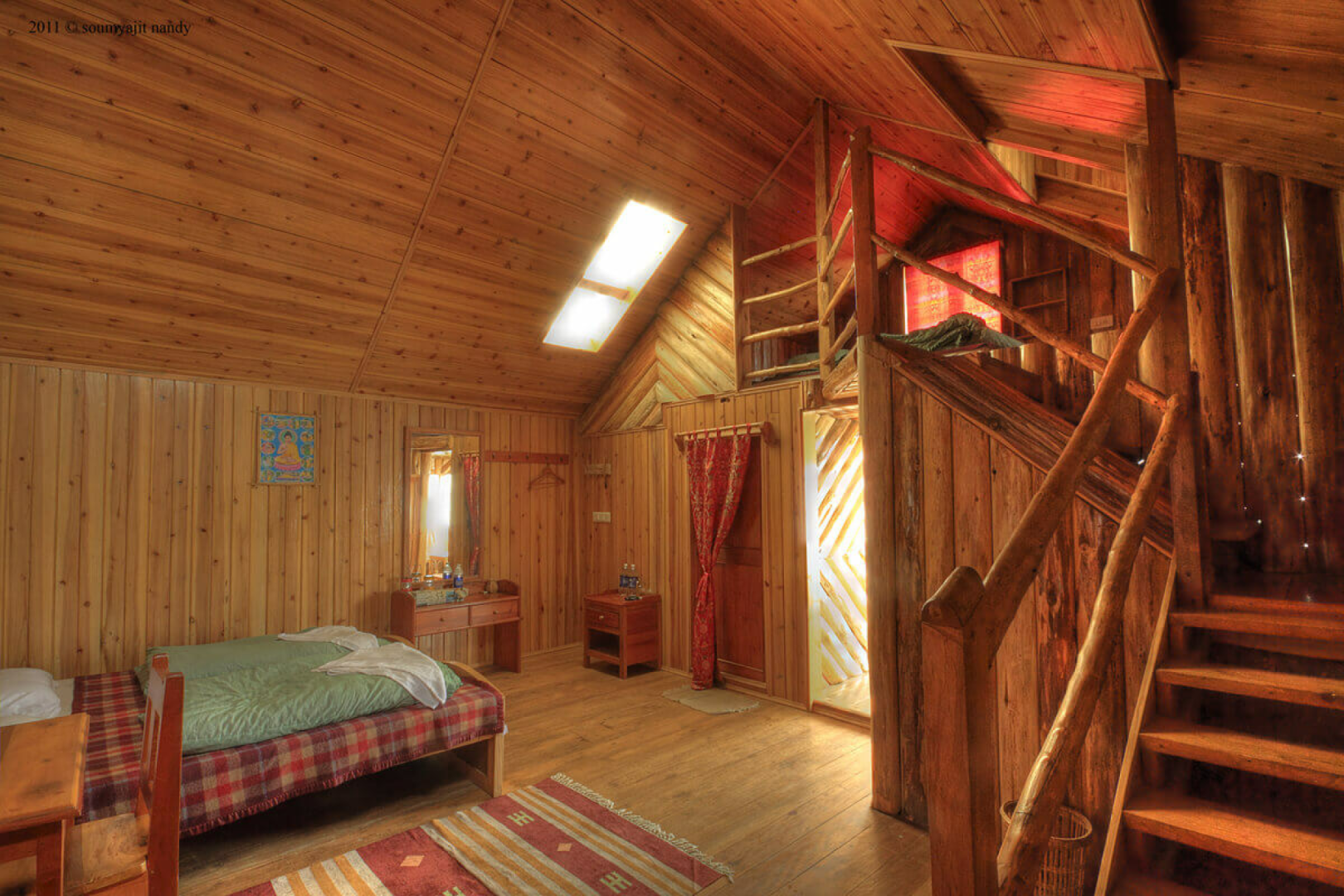 Die nur fünf schlicht eingerichteten, doppelstöckigen Bungalows aus Holz mit Privatbad und Aufenthaltsraum bieten ausreichend Platz für zwölf Gäste. Das beste Merkmal der Bungalows ist aber der Privatbalkon mit fantastischem, uneingeschränktem Blick auf die Himalayas und den verschneiten Gipfel des Kangchendzonga.