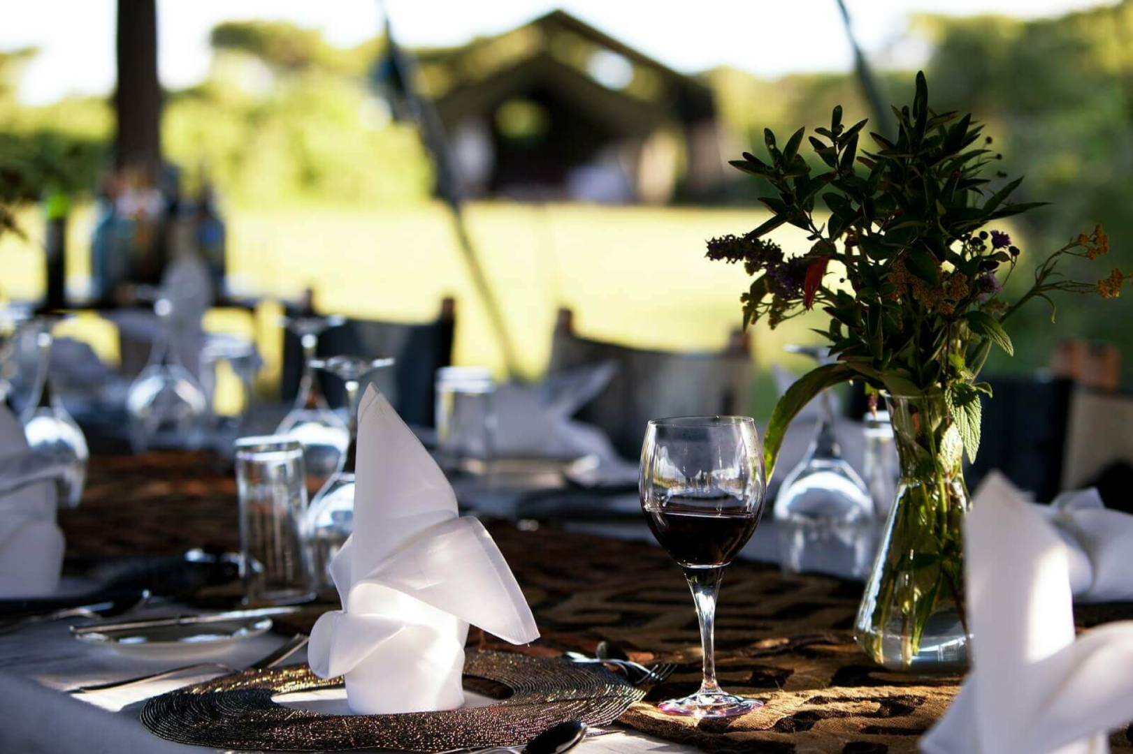 Ein Speisezelt sowie eine typische Lagerfeuerstelle gehören zum Camp dazu.