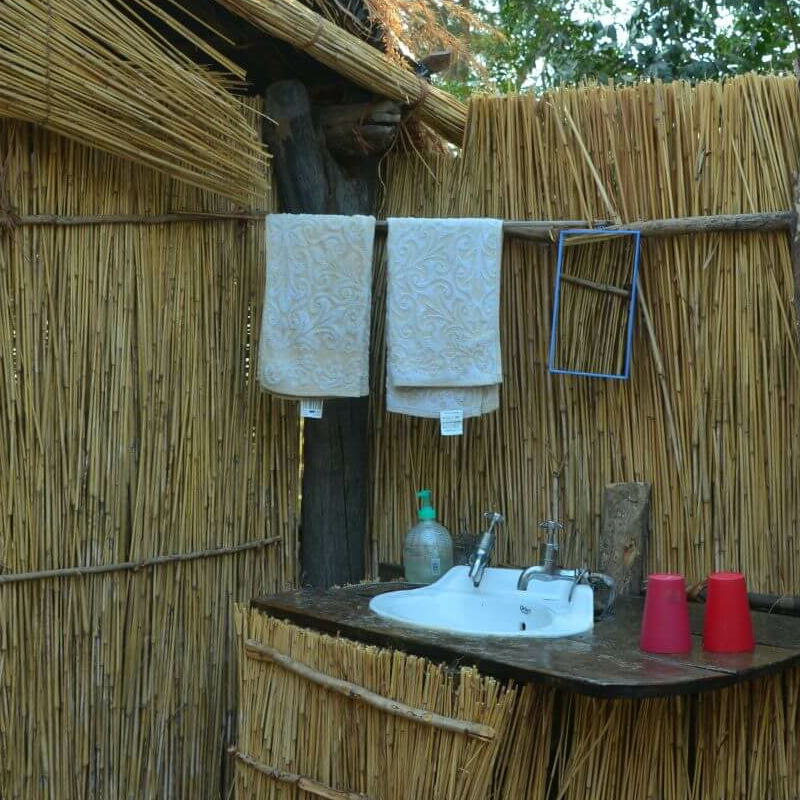 Das Camp wird jedes Jahr nach der Regenzeit komplett neu errichtet und besteht aus simplen öffentlichen Bereichen direkt auf dem sandigen Boden errichtet, sowie sieben einfachen Chalets aus Schilf mit Outdoor-Dusche und Blick auf den Fluss, welche aus reinen Naturmaterialien gebaut wurden und an der Seite zum Fluss komplett offen sind. Die Mahlzeiten finden meist draußen statt. Abends wird Lagerfeuer angemacht.