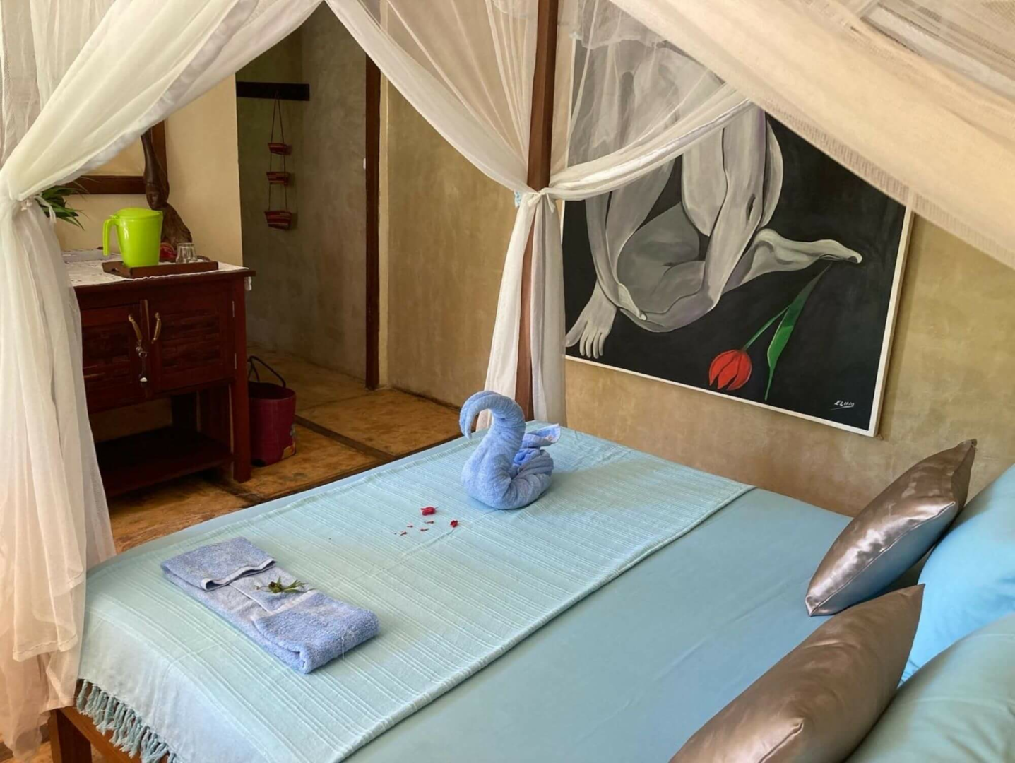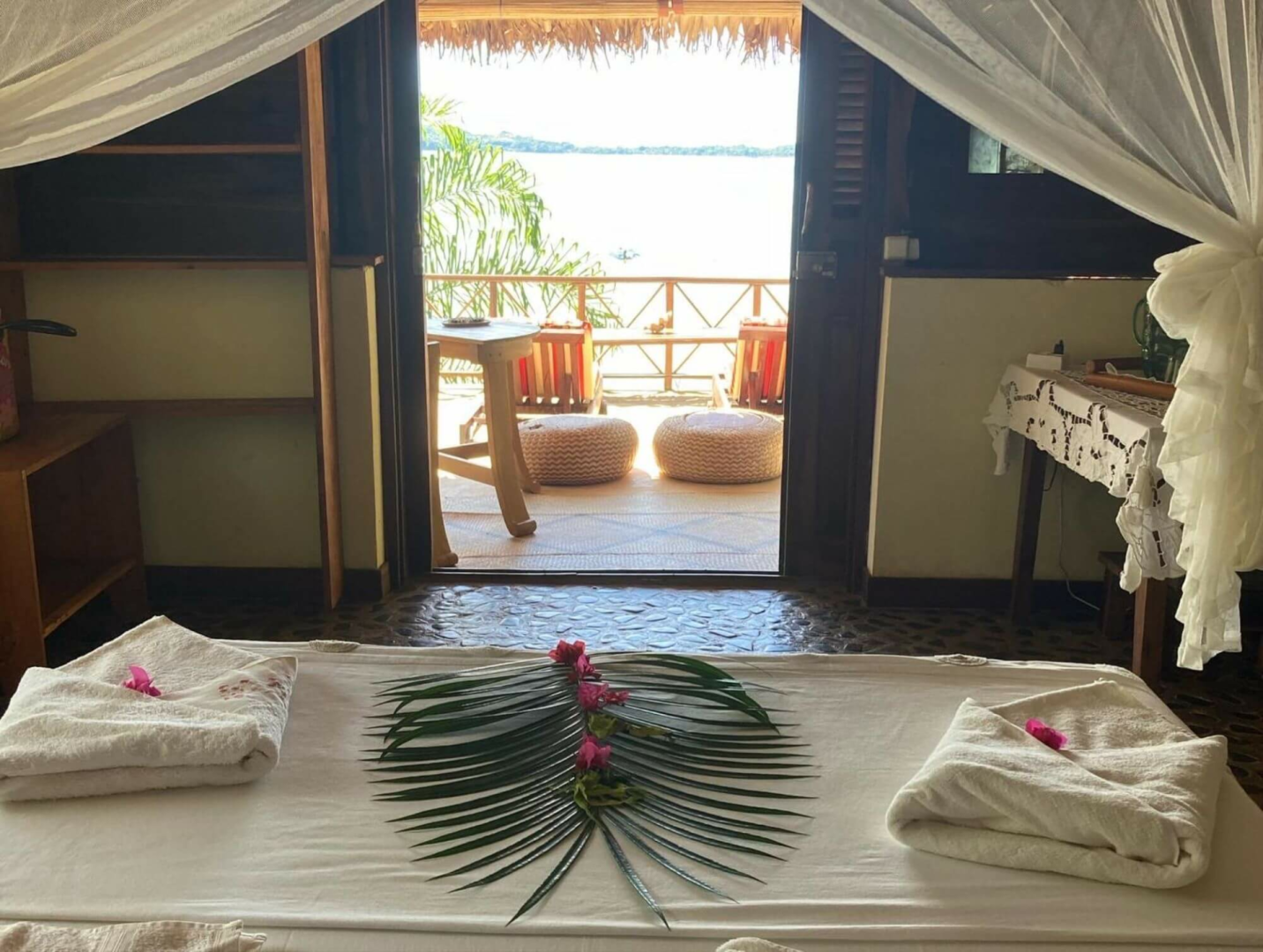 Im Restaurantbereich werden sehr leckere Drei-Gänge-Menüs aus lokal angebauten Zutaten serviert. Es gibt auch einen schönen Infinity-Pool mit Blick auf die kleine Bucht, in der sich ein beeindruckendes Riff befindet, in dem Schildkröten, Fische und andere kleine Meerestiere leben.