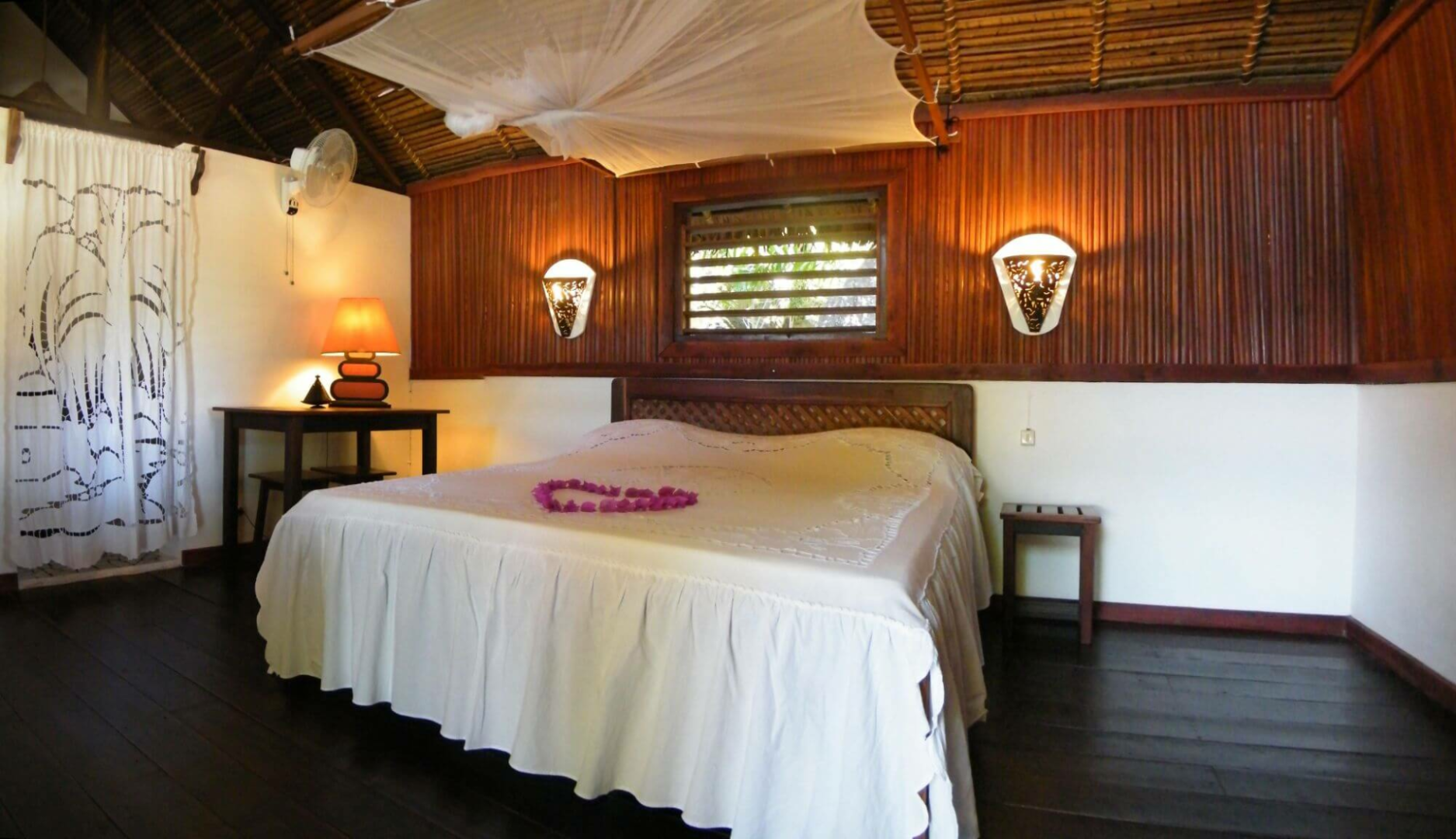 Die zwölf Bungalows sind sauber und geräumig, aber ein wenig hellhörig. Da die Bungalows nicht klimatisiert sind, können die, die etwas zurückgezogen im Garten liegen, etwas stickig sein.