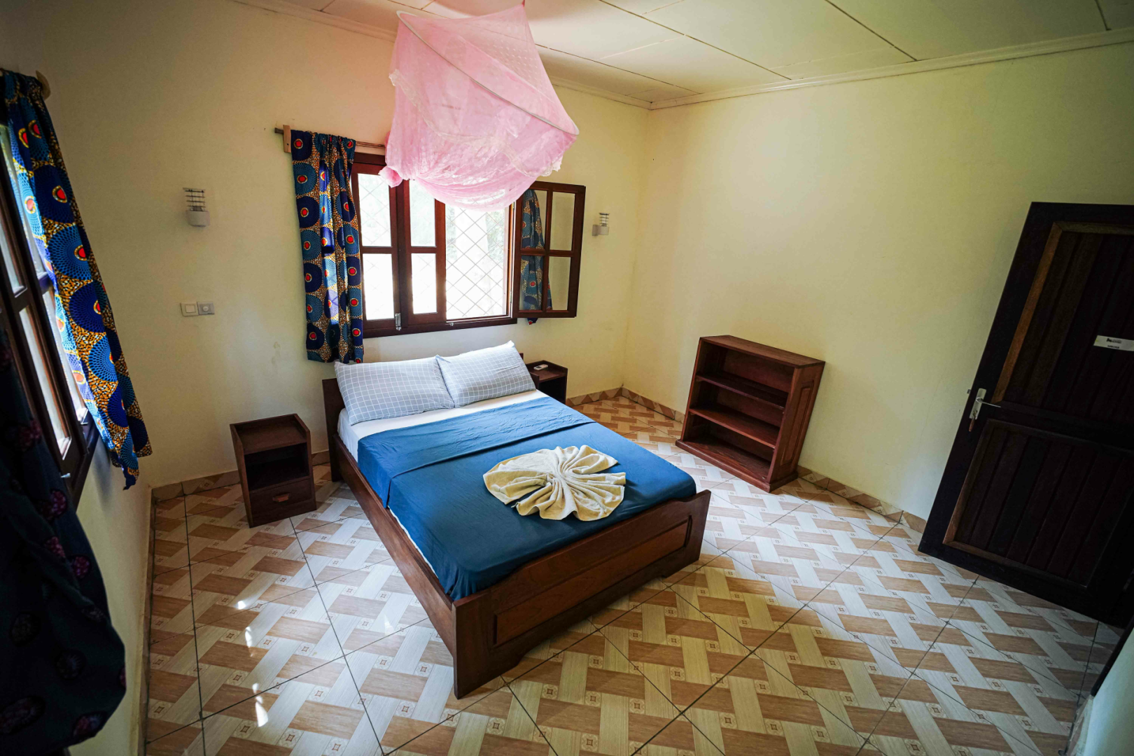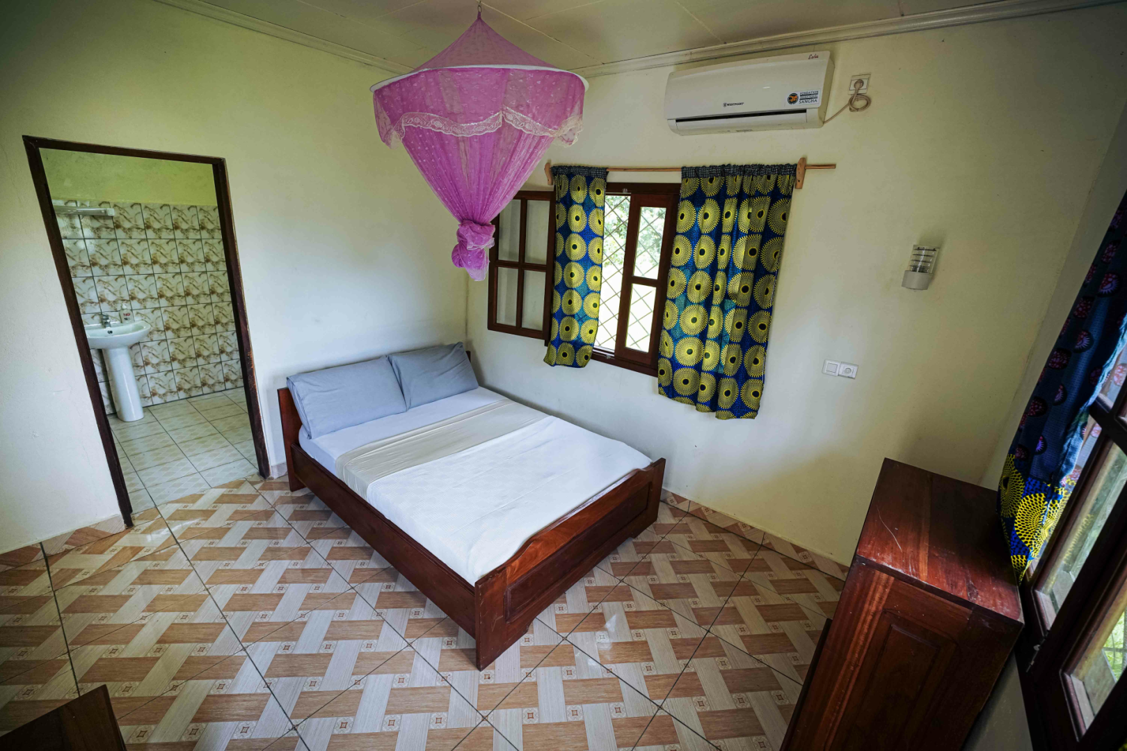 Das Camp besteht aus mehreren einfachen Holzbungalows, die auf einer Plattform über dem Boden errichtet wurden. Jeder Bungalow ist mit einem eigenen Bad, einer Buschdusche und einem kleinen Balkon ausgestattet.