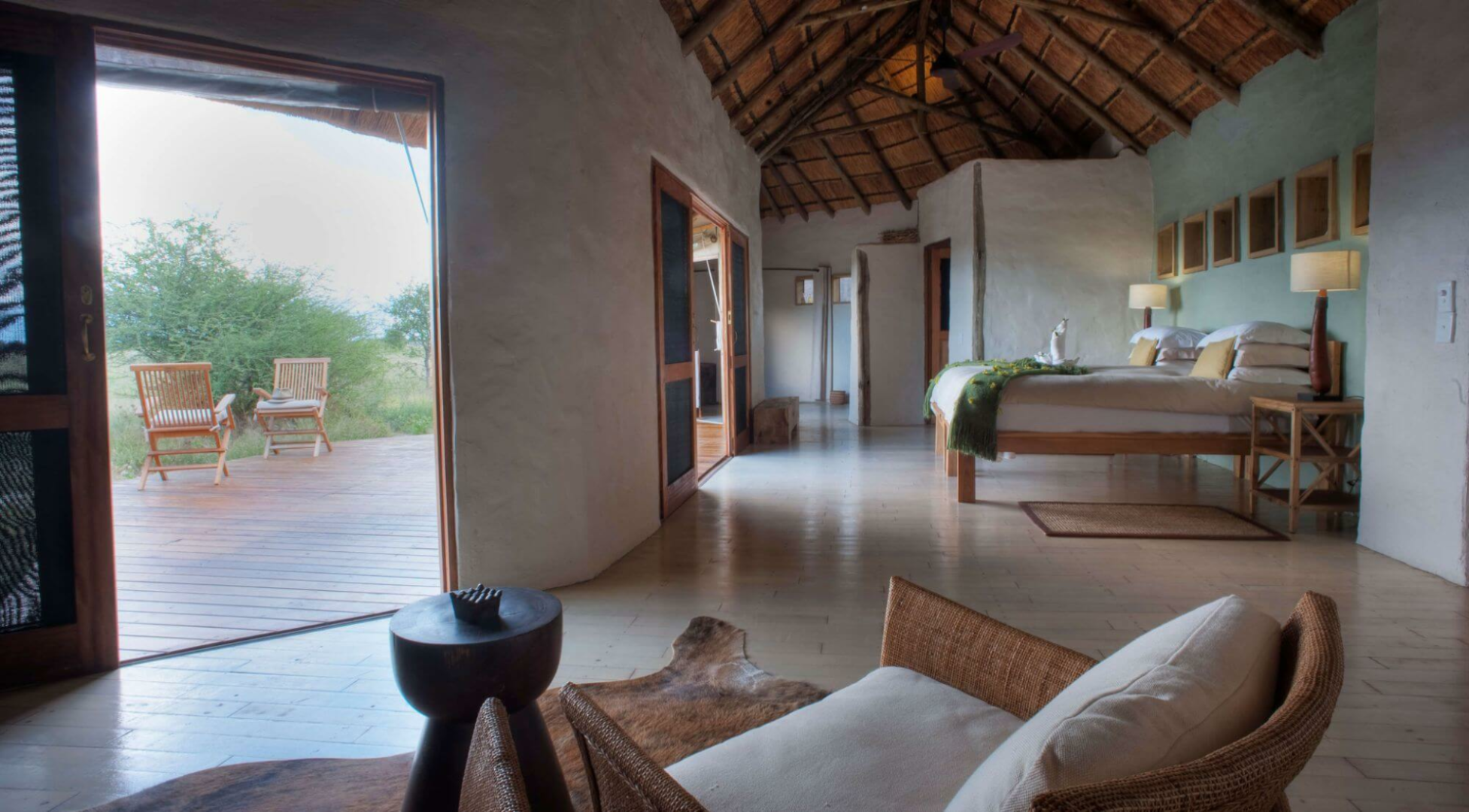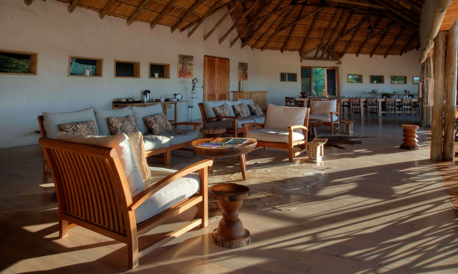 Das Nxai Pan Camp besteht aus acht speziell an die klimatischen Bedingungen angepassten Chalets mit Reetdächern. Alle Chalets verfügen über Deckenventilatoren und private Aussichtsdecks und werden mit 100 % Solarenergie versorgt. Im Hauptgebäude befindet sich ein Speiseraum, eine Lounge mit Bibliothek und Bar und ein Aussichtsdeck mit Blick auf das permanente Wasserloch. Auch ein Pool sorgt für eine angenehme Erfrischung nach den Gamedrives.