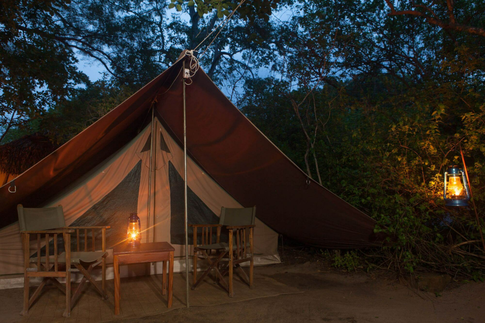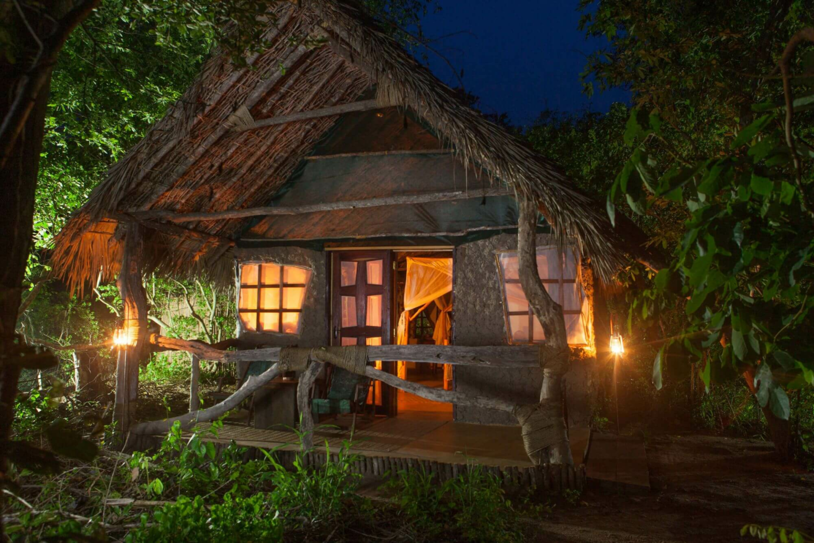 Im Jahr 2010 erweitert und upgegraded bietet die Lodge ca. zehn großzügige Zelte unter Reetdach, die auf einem festen Holzuntergrund...