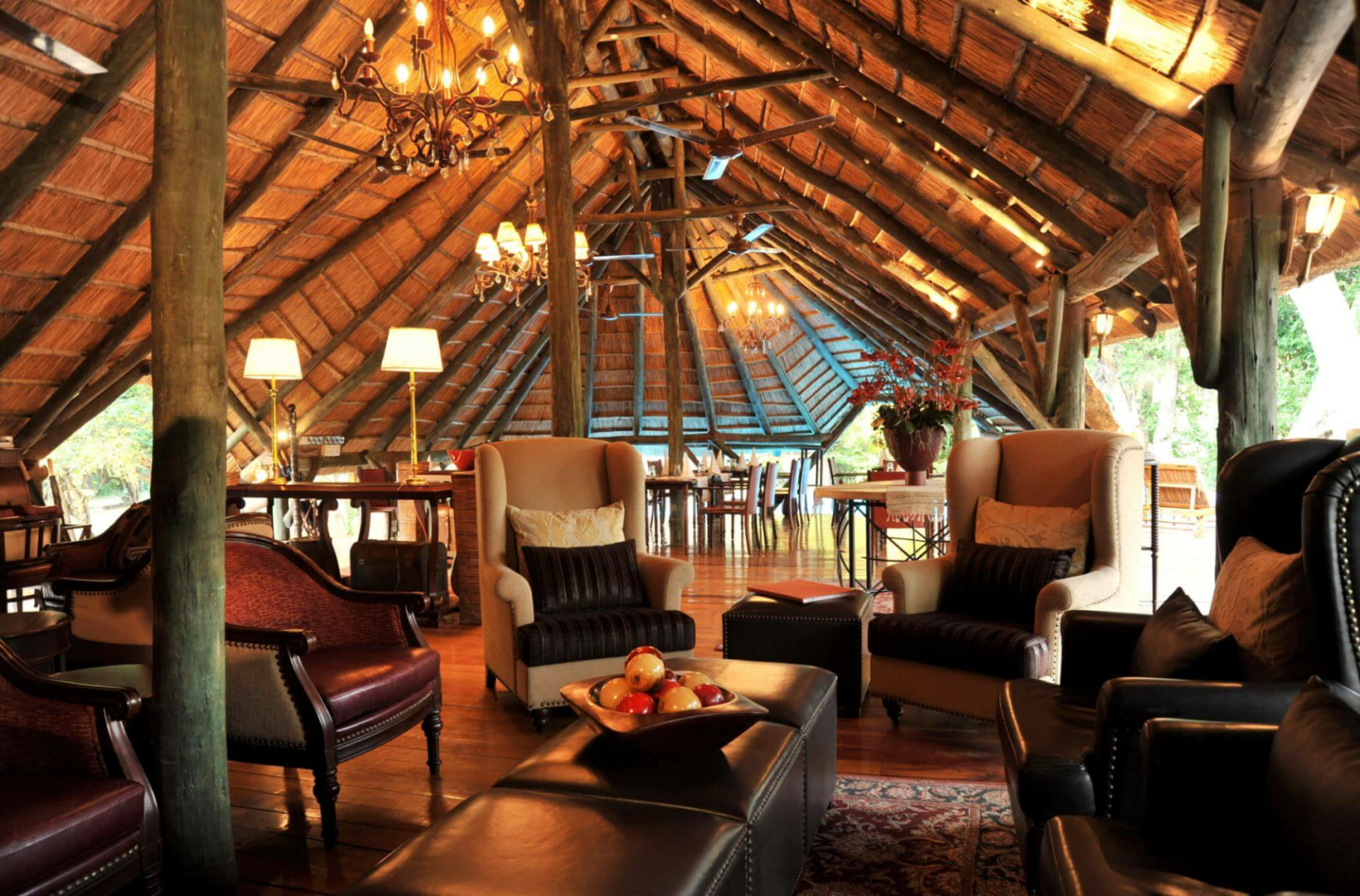 Im Jahr 2010 erweitert und upgegraded bietet die Lodge ca. zehn großzügige Zelte unter Reetdach, die auf einem festen Holzuntergrund...