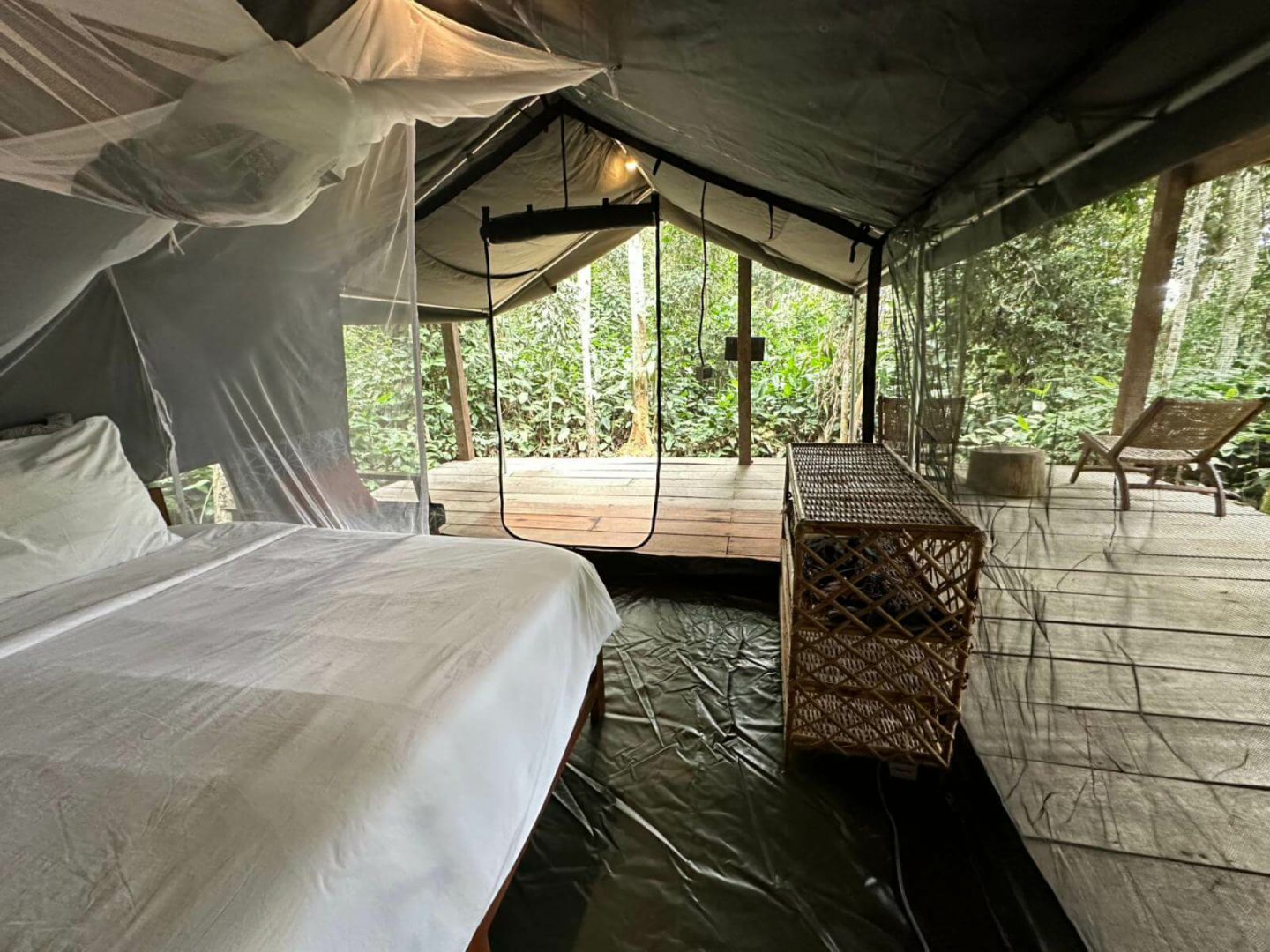 Das Ngaga Camp, bestehend aus sechs kuppelförmigen Wohneinheiten, wurde mitten im tiefen Regenwald erbaut. Trotz der extrem abgeschiedenen Lage wird das Camp mit seinen sehr guten Wohn- und Komfortstandards jeglichen Ansprüchen an einen recht hohen Reisekomfort gerecht.