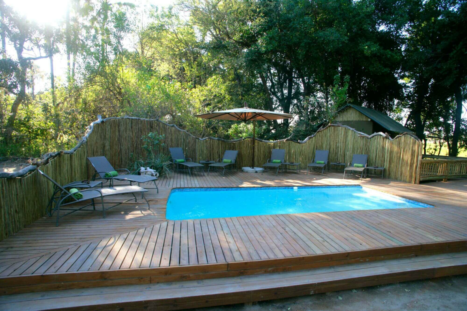 Das Delta Camp liegt in der Gunn’s Konzession im Osten des Okavango-Deltas, Nord-Botswana, einer relativ tierarmen Gegend, die in der Flutzeit von Juli bis Oktober komplett unter Wasser steht.