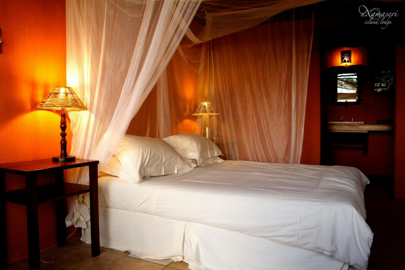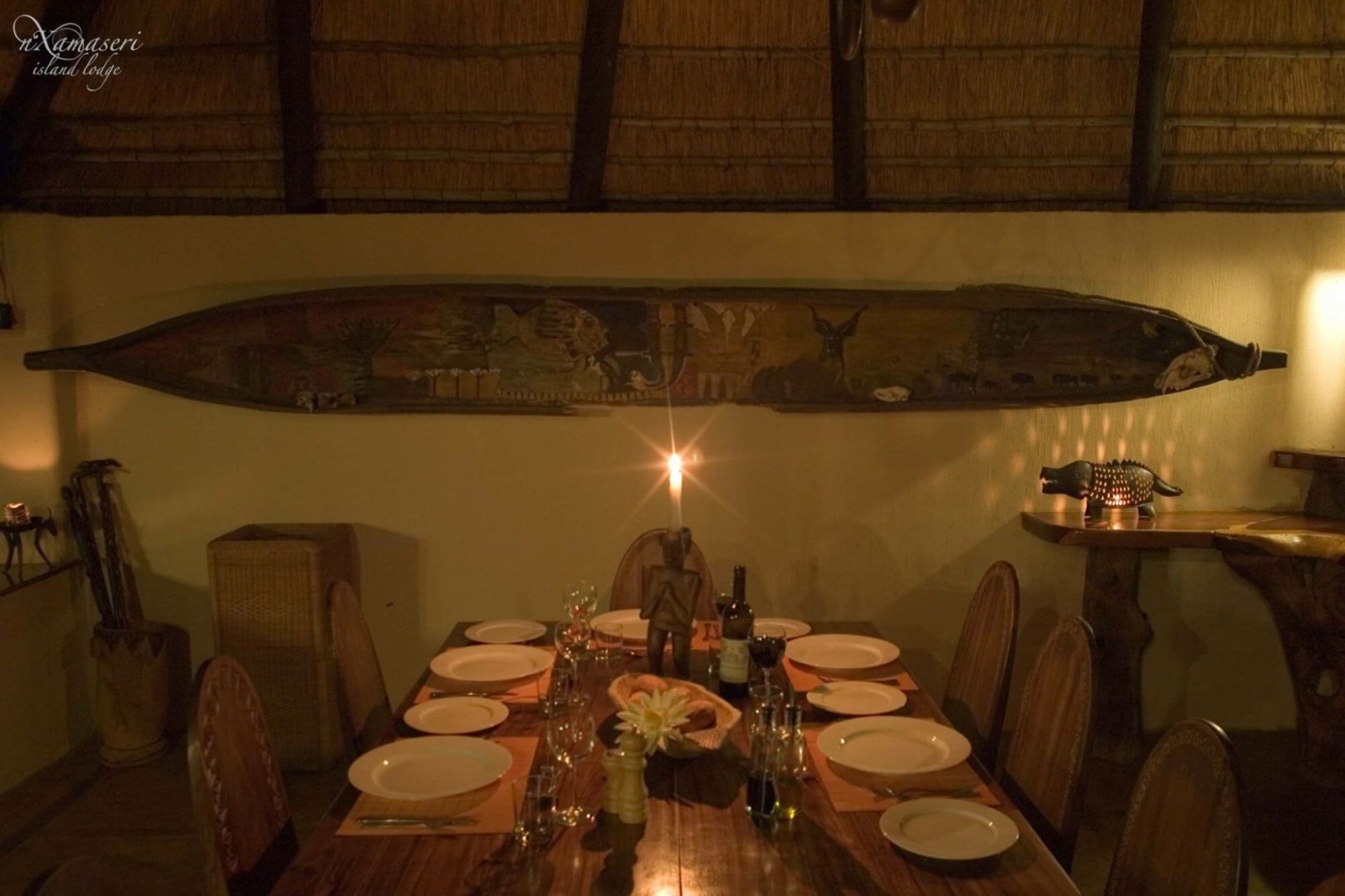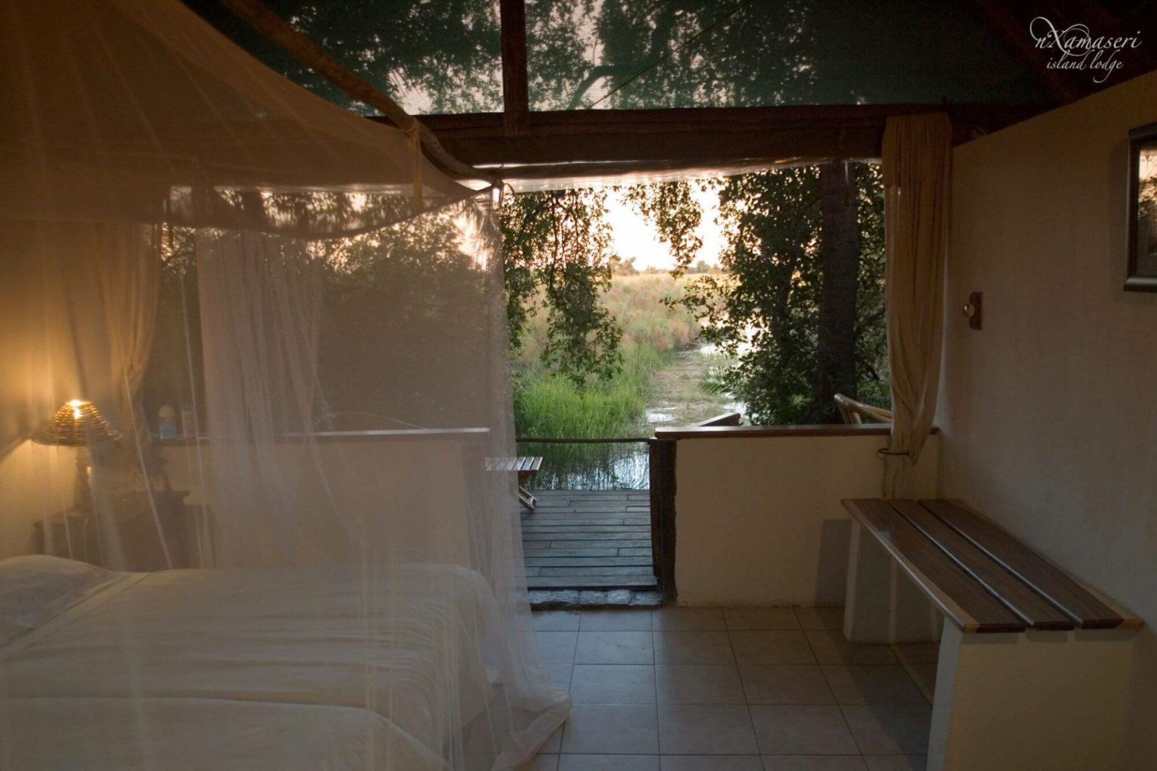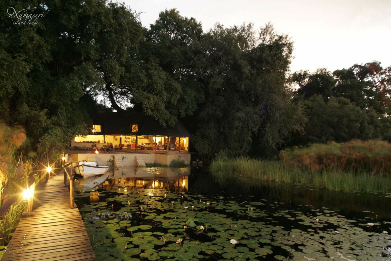 Nxamaseri besteht aus sieben angenehmen Chalets und ist eine der ältesten Lodges im Delta. Die Chalets mit Blick auf das Wasser sind mit dem schön angelegten öffentlichen Bereich über Holzstege verbunden. Durch die Lage auf einer Insel nah Shakawe zieht Nxamaseri hauptsächlich Angler an, aber auch Motorboots- und Mokorofahrten werden angeboten. Die Lage im oberen Delta ist für ihren außerordentlichen Vogelreichtum bekannt. Während der Bootsfahrten werden auch Krokodile und Nilpferde beobachtet.