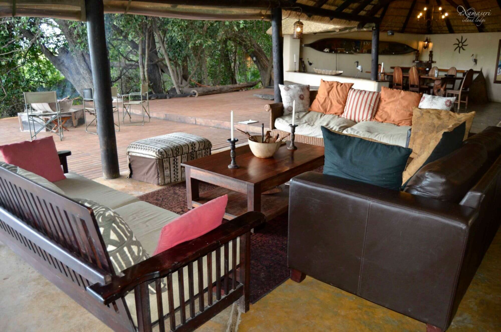 Nxamaseri Lodge liegt auf einer kleien Insel im Okavango Pfannestiel, im Westen des Okavango Deltas, Nord-Botswana.