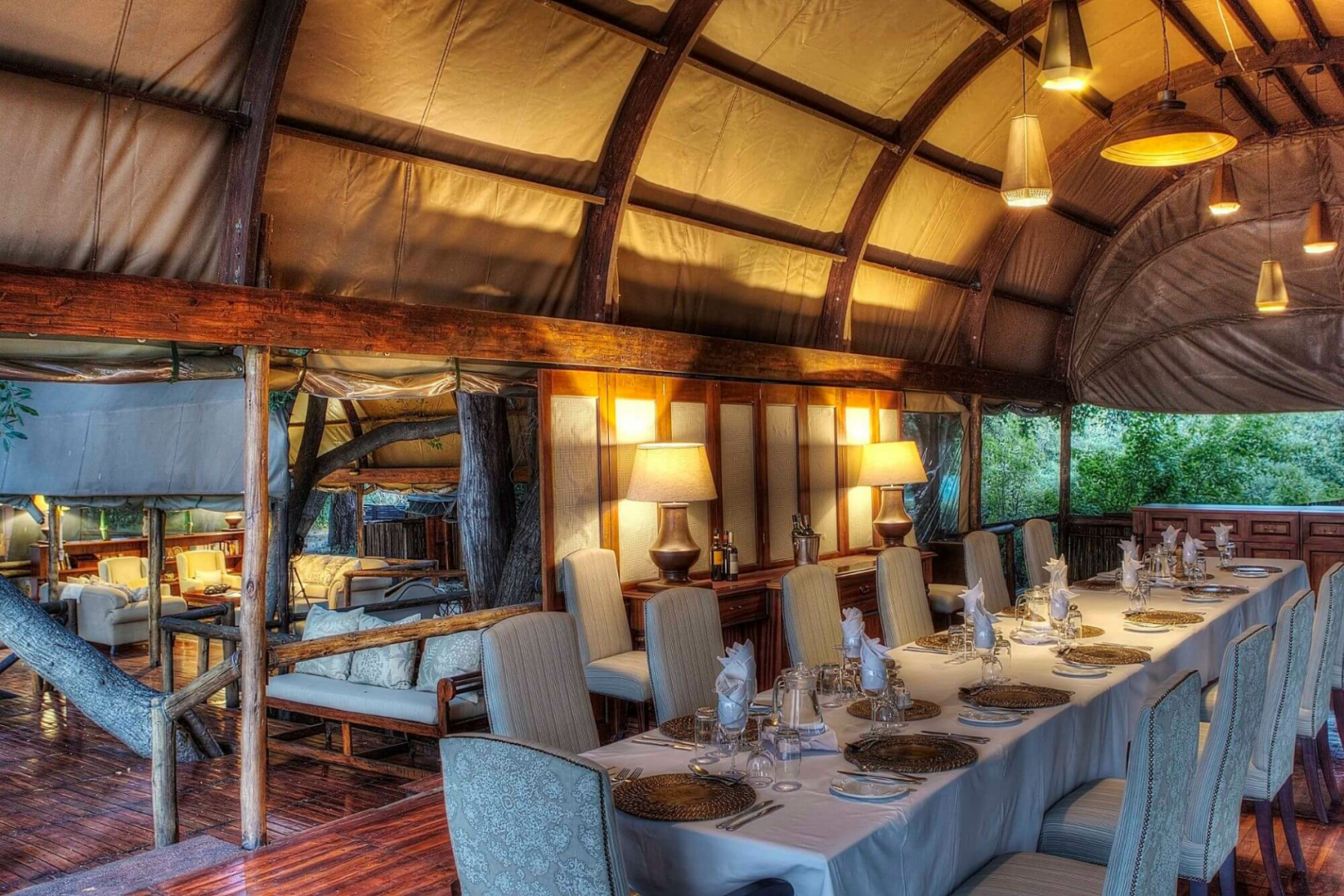 Das Camp besteht aus einem extravaganten, in mehreren Schichten gebauten Lounge- und Essbereich, der wunderschön unter der Baumkrone integriert ist.