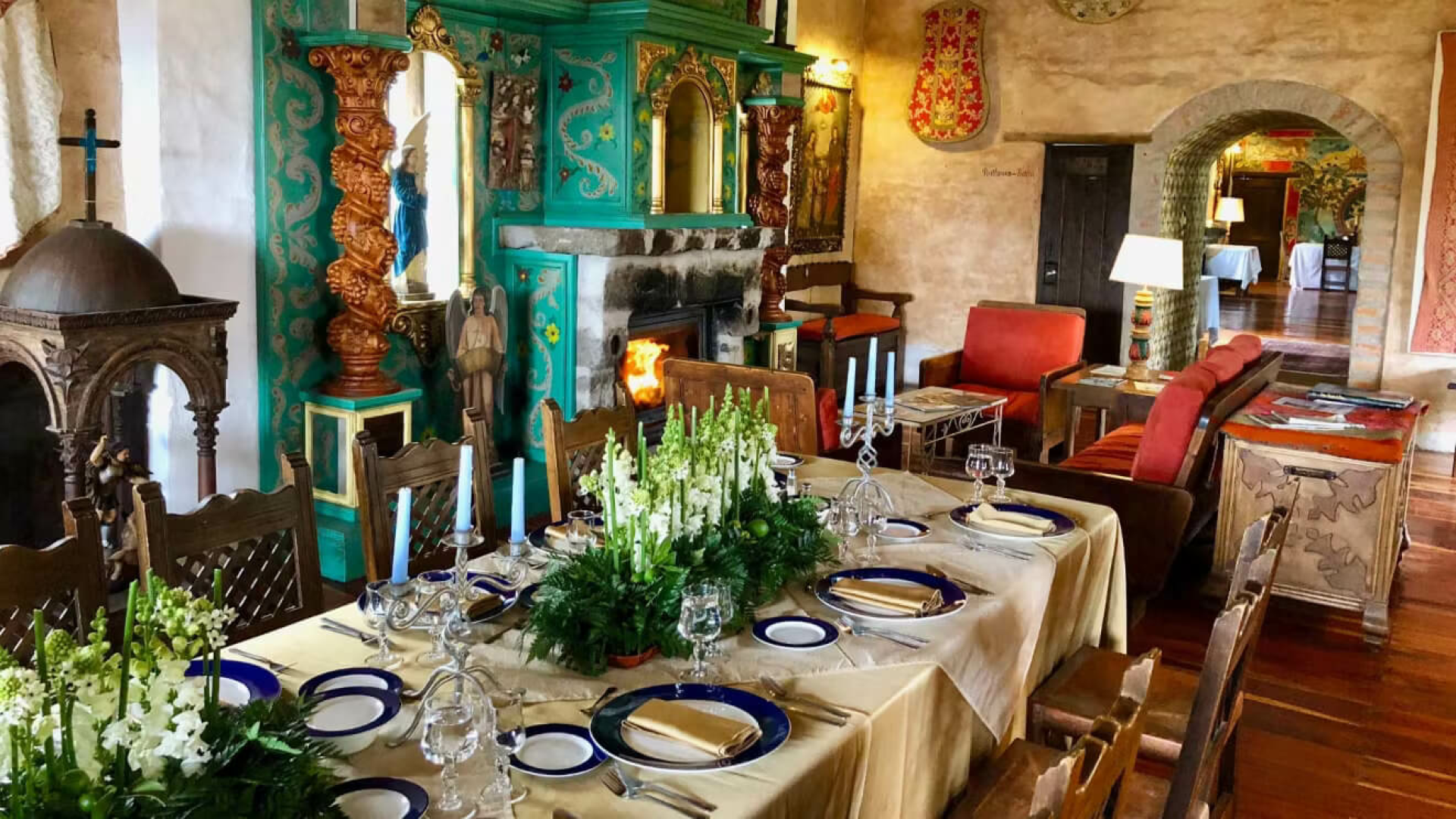 Die Hacienda trieft vor Atmosphäre und Geschichte; an jeder Ecke findet man ein historisches Artefakt, das überrascht. Die Zimmer sind ebenso gemütlich, mit einem Holzkamin und Wärmflaschen.