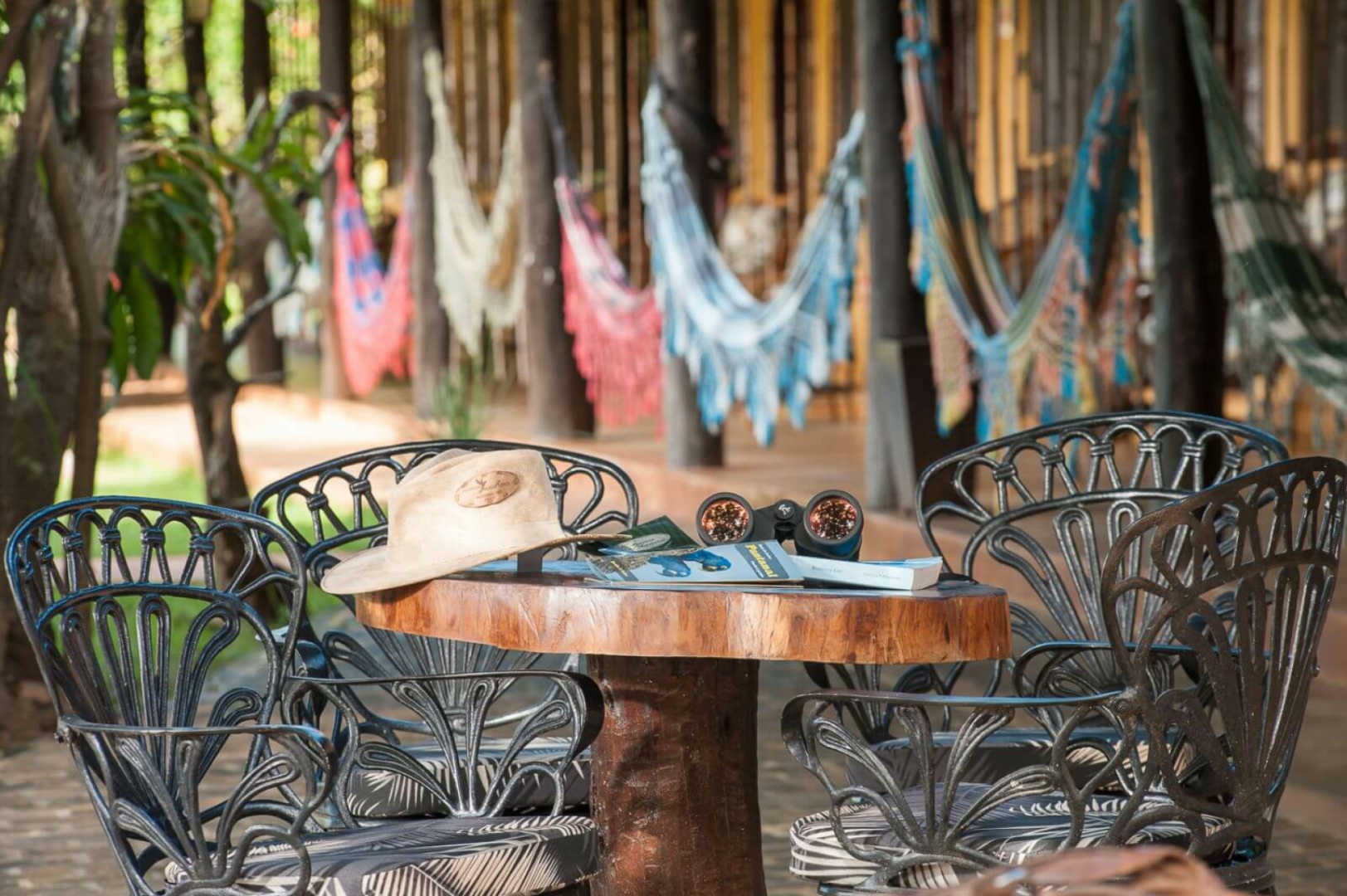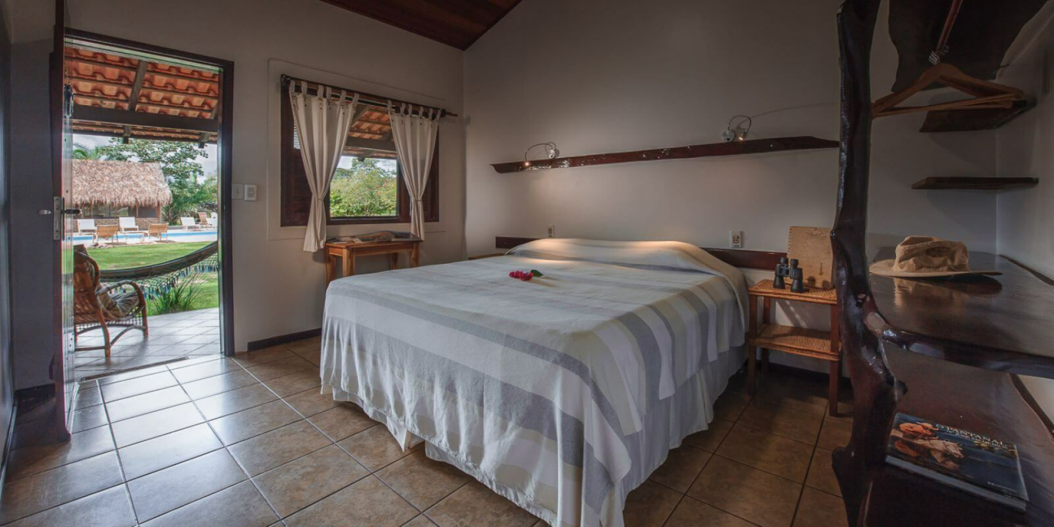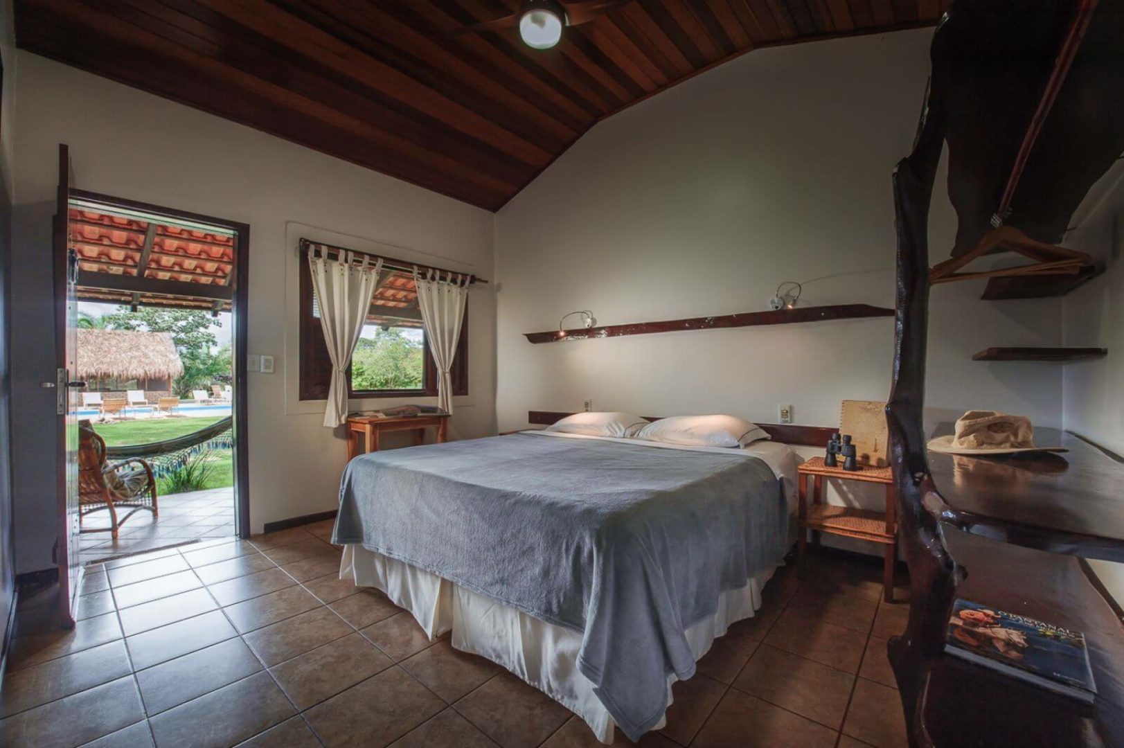 Araras bietet 22 Zimmer mit einer schönen Einrichtung, bequemen King-Betten, Privatbad und Fenstern mit Moskitonetz. Vor jedem Zimmer gibt es eine kleine private Veranda mit ein paar Stühlen und Hängematten, mit einem schönen Blick auf den Pool oder auf den Hof. Die Zimmer verteilen sich um ein Hauptgebäude, in dessen Mitte sich auch die Rezeption und das Restaurant befinden.
