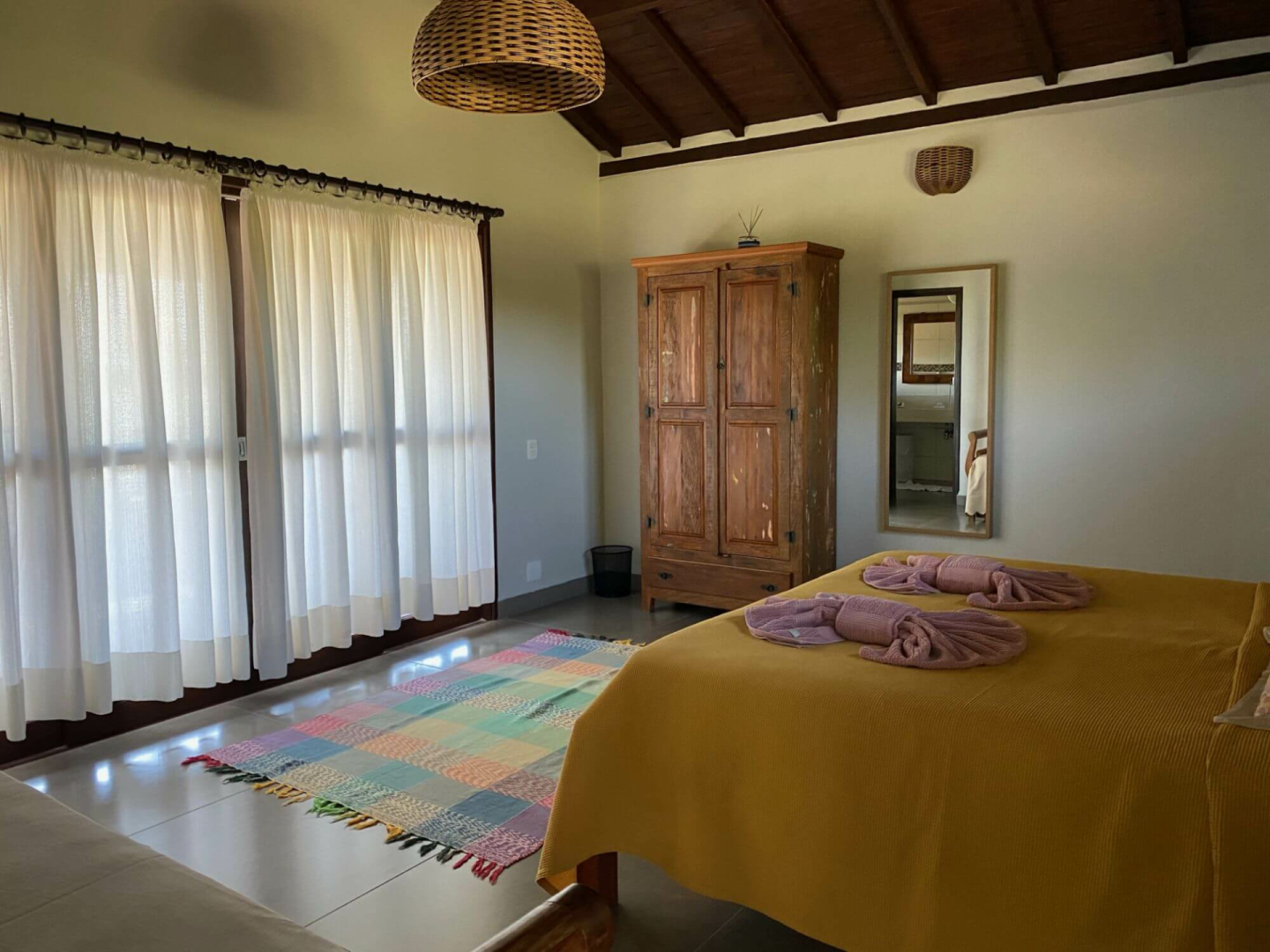 Die nur sechs Zimmer sind sehr groß, sauber, und sind mit einem modernen Badezimmer, einer Terrasse mit Hängematte und Blick auf einen See.