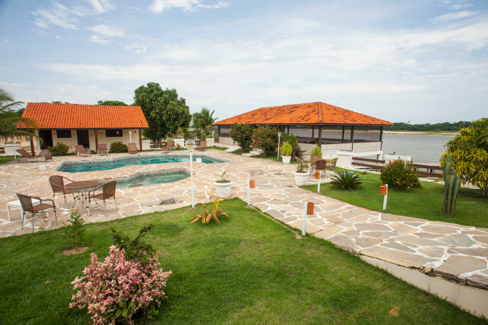 Baiazihna ist im traditionellen Ranch-Stil dekoriert und hat die Form eines Vogels, die Gästezimmer sind in den Flügeln untergebracht. Zu den gemeinsamen Bereichen zählt ein wunderschöner Pool mit Blick auf den Fluss und Spielplatz für Kinder. Hinzu kommt eine köstliche hausgemachte Küche, wo stets lokale Gerichte und Fisch serviert wird, die in zwei verschiedenen Restaurants (einem klimatisierten und einem Open Air Restaurant mit Blick auf den Fluss.