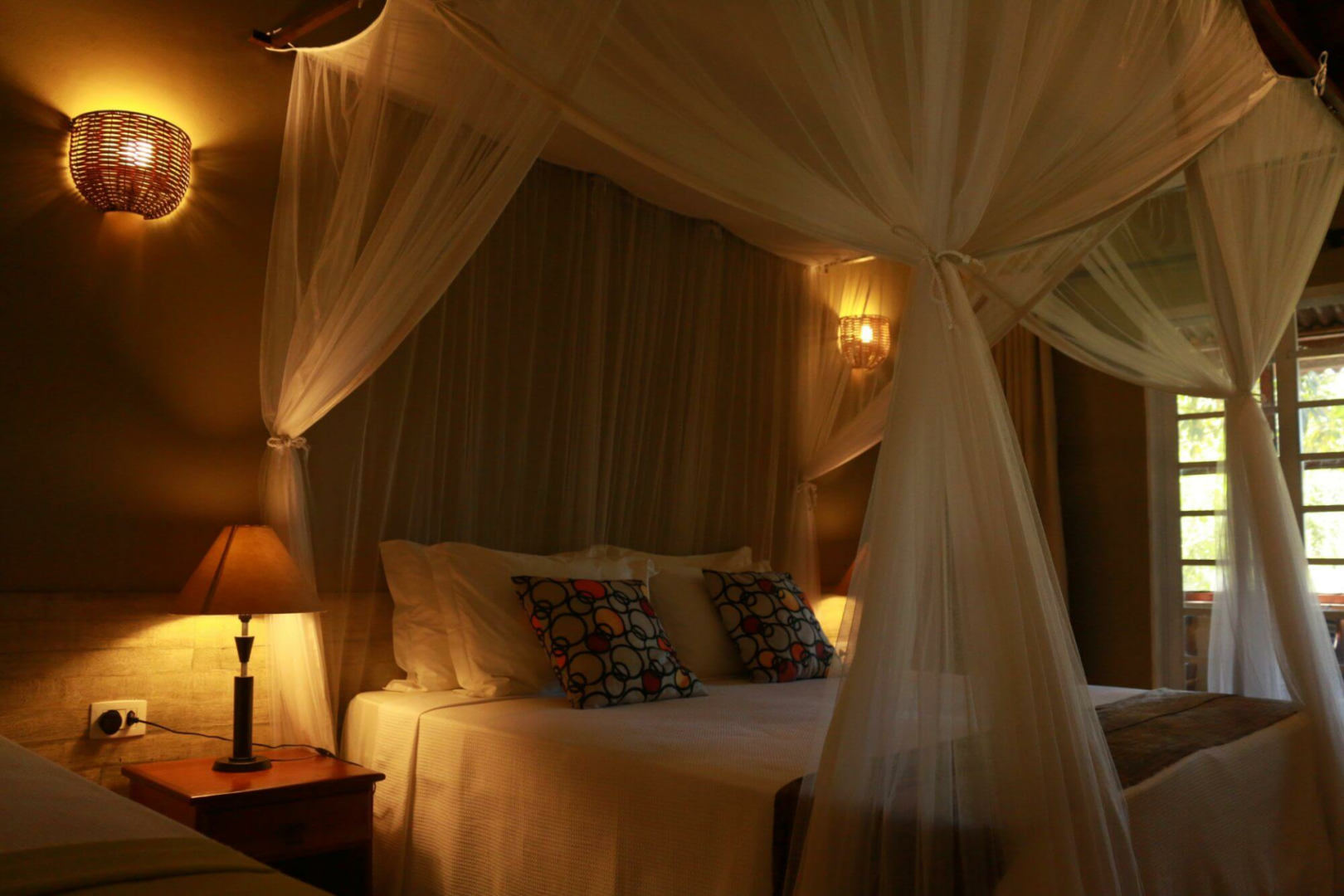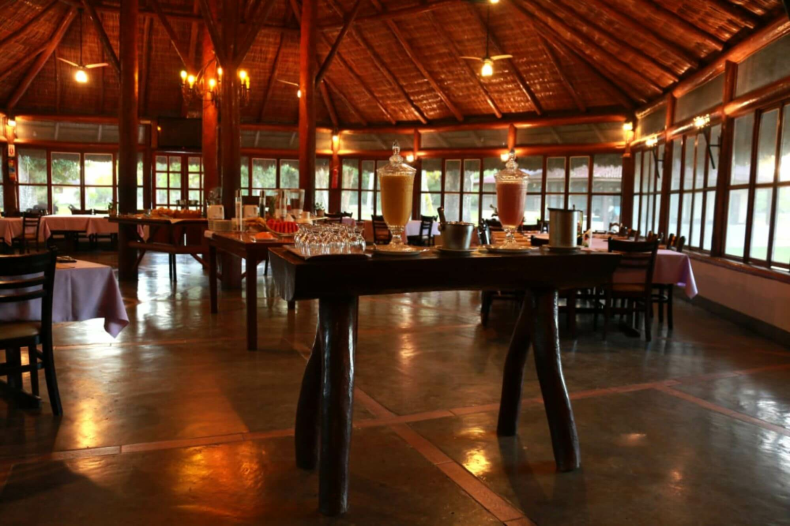 Die Lodge hat ein elegantes Restaurant in der Mitte gegenüber der Rezeption. Rundherum wurden die 22 Zimmer in insgesamt vier Blöcken in einem beträchtlichen Abstand zueinander angelegt. Alle Zimmer verfügen über Klimaanlage, Deckenventilator, Minibar, Kleiderschrank, bequemes Bett mit Moskitonetz, privates Bad mit Warmwasserdusche, Veranda und Hängematte. Es gibt weitere Hängematten unter den Bäumen. Es gibt auch einen Spielplatz für Kinder und einen