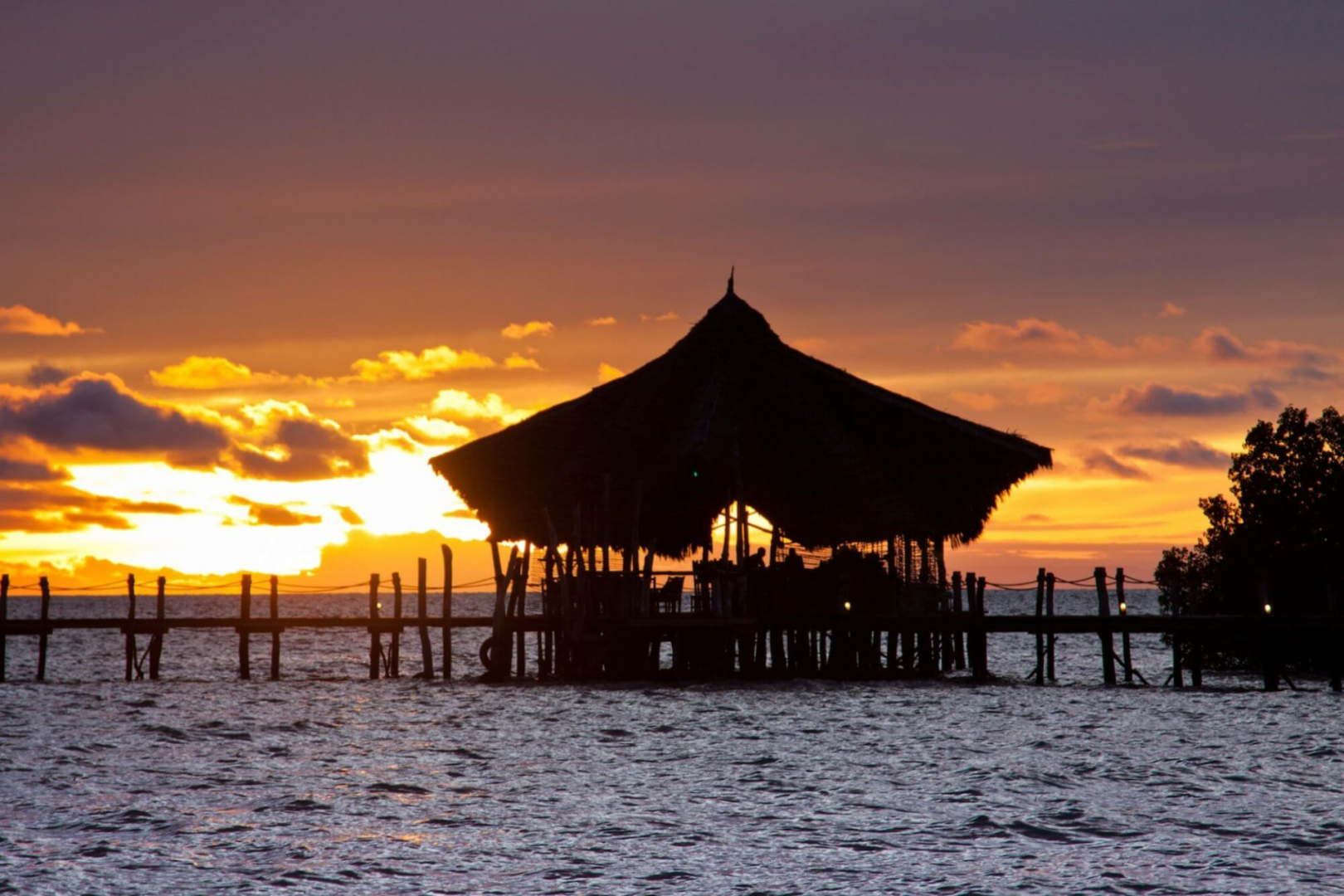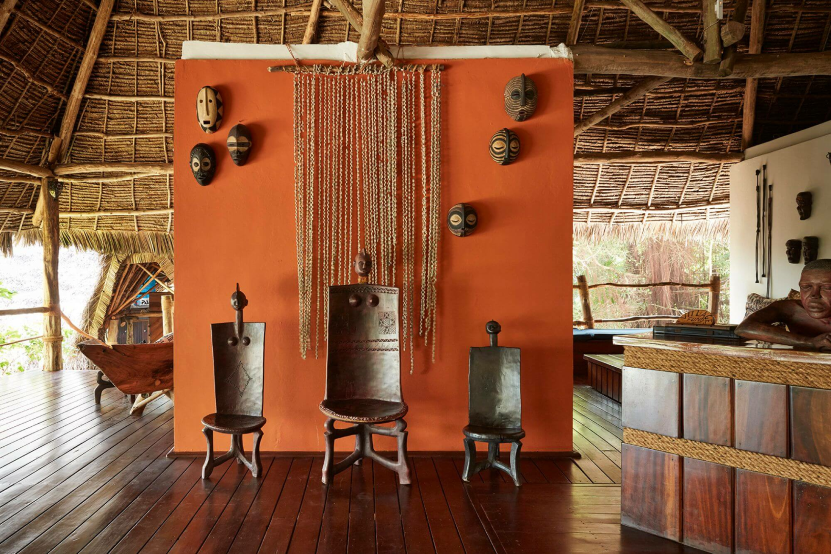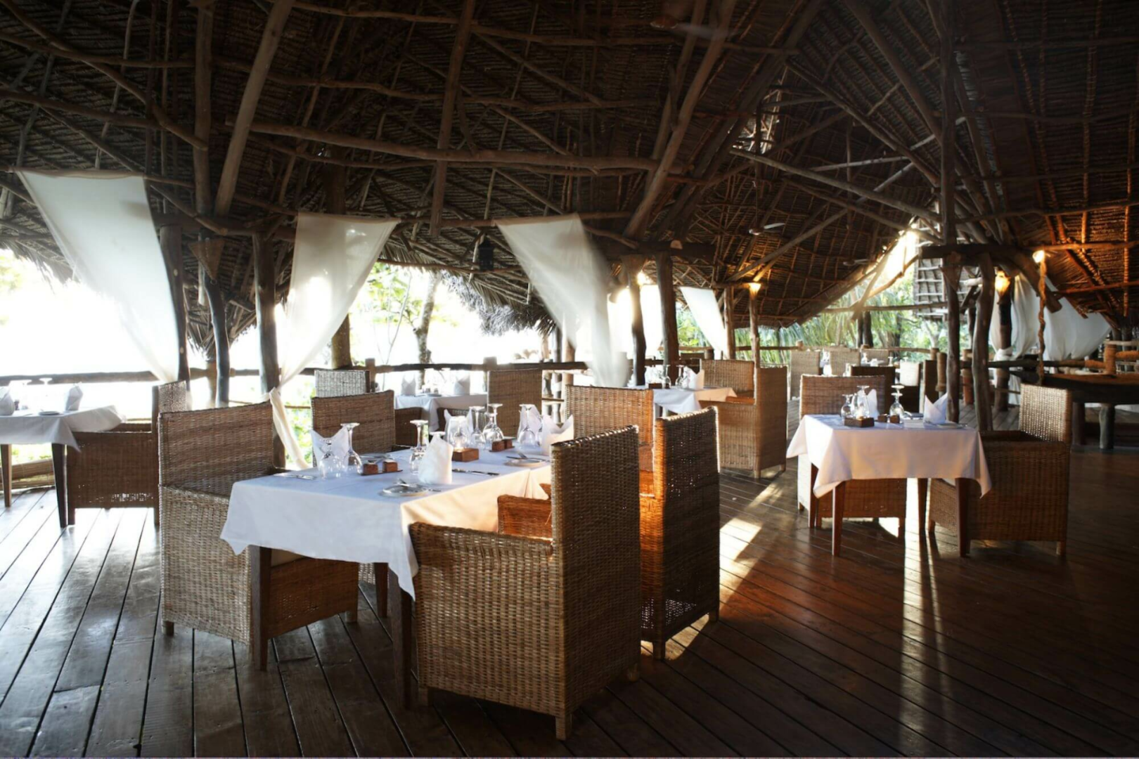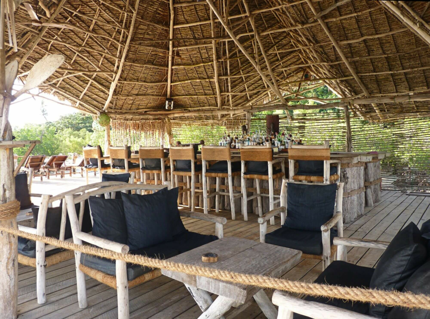 Die schicke schäbige Fundu Lagoon an der abgelegenen Pembas Südwestküste hat schon immer ein Honeymoon-Flair an sich gehabt, vielleicht aufgrund der idyllischen isolierten Robinson Crusoe-Lage und die offene barfuß Bauweise die nicht romantischer sein könnte. Die Lodge ist inmitten eines tropischen Walds eingebettet. Bereits bei der Ankunft aus der halbstündigen Bootsfahrt öffnet sich vom Bootsteg aus ein gewaltiges Panorama auf die Lodge, die diskret in grünen Dickicht der Lodge eingebettet ist. Auf dem Steg liegt auch die offene Steg-Bar: Ein großartiger Ort, um den Sonnenuntergang über dem Meer zu beobachten - während man einen der Cocktails des Hauses genießt. Haupt-Bar, Restaurant und Lounge befinden sich etwas oberhalb des Strandes auf einem Holzdeck unter einem hohen Strohdachgebäude. Die Inneneinrichtung ist lässig aber komfortabel, mit vielen farbenfrohen natürlichen Stoffen und handgefertigte Holzmöbeln, die sehr zum rustikalen Stil der Lodge passen und eine heimliche, Wohlfühlatmosphäre schaffen.