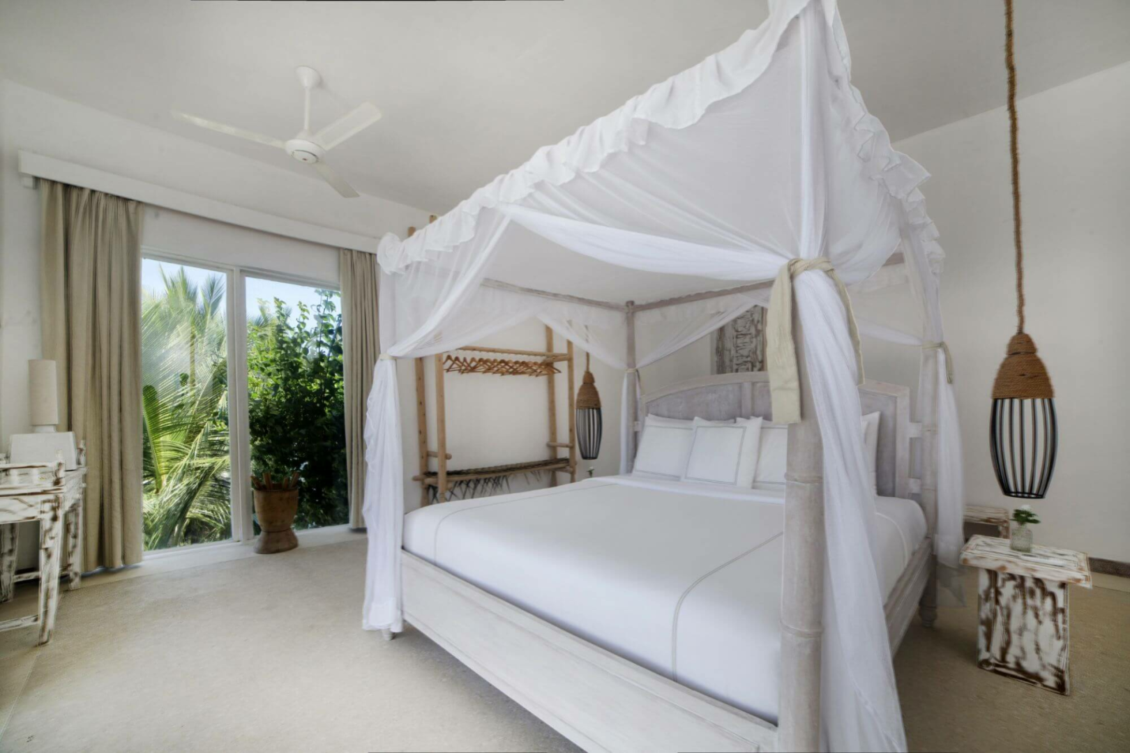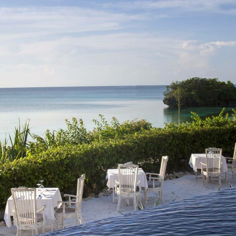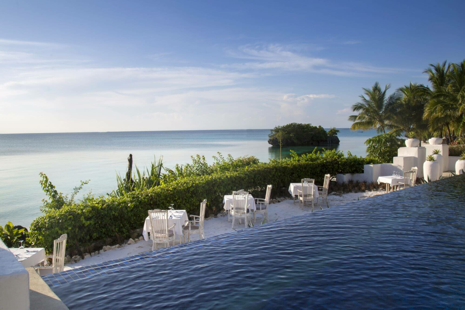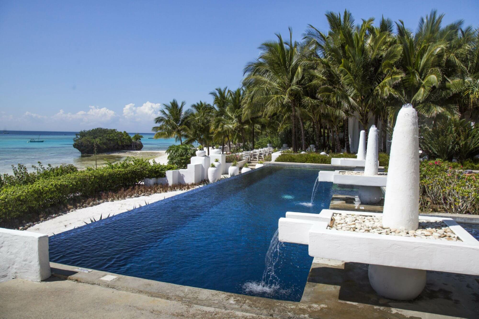 Die Lodge besteht aus sehr schönen, stilvollen gemeinsamen Bereichen mit zahlreichen Terrassen und einem wunderschönen Pool. Gäste werden in 30 traumhaft schön eingerichteten Villas untergebracht, die mit all erdenklichen Komfort ausgestattet sind. Alle Zimmer haben Meeresblick und sind mit Aussen- und Innenduschen ausgestattet. Von jedem Villa hat man direkten Zugang zum wunderschönen Traumstrand. Wie überall an der Ostküste Sansibars zieht sich das Meer bei Ebbe recht zurück. Wer dann dennoch baden will, dem steht der wunderschöne Infinity Pool zur Verfügung.