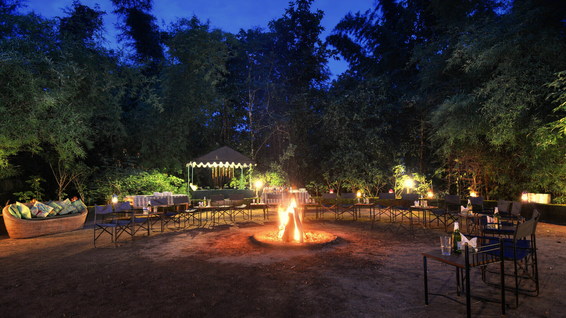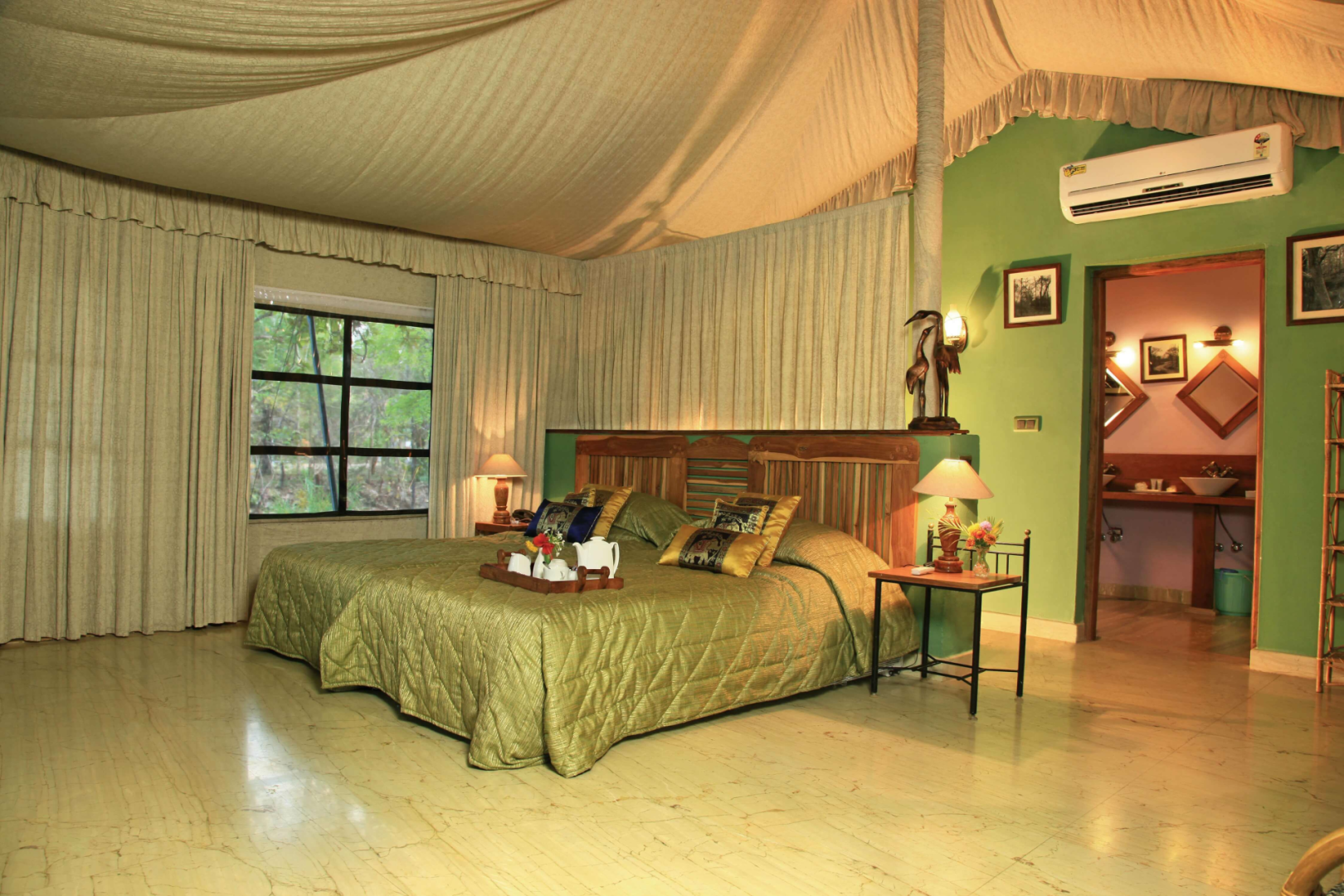 Baghvan im Pench Nationalpark gehört der Taj-Luxushotelkette. Am meisten hat uns die sehr intime Lage inmitten des naturbelassenen Waldes in der Pufferzone des Parks nah dem Turia Gate überzeugt. Die kleine Lodge besteht aus einem Haupthaus mit vorgelagertem offenem Loungebereich inklusive Souv...
